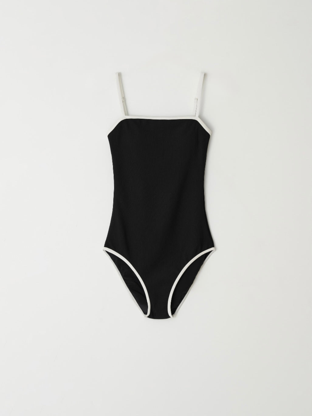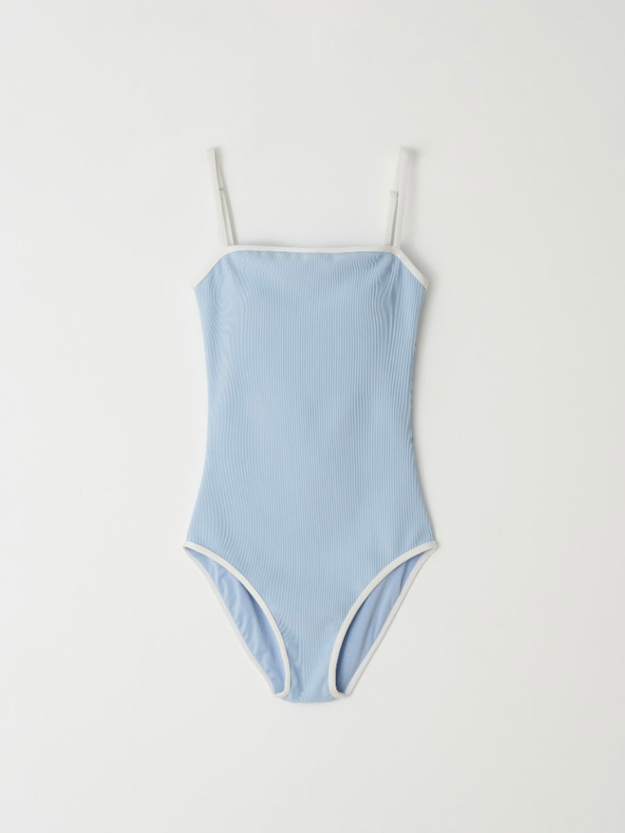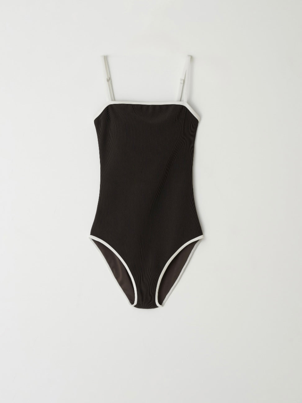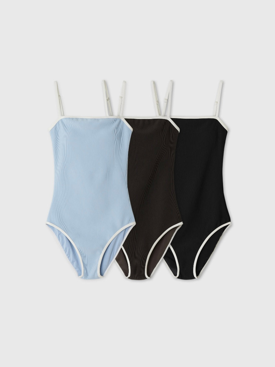 - Sleek one-piece swimsuit with a minimalist straight neckline