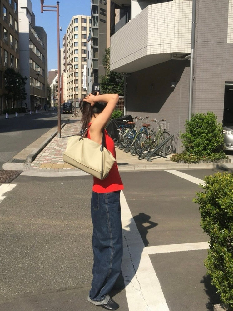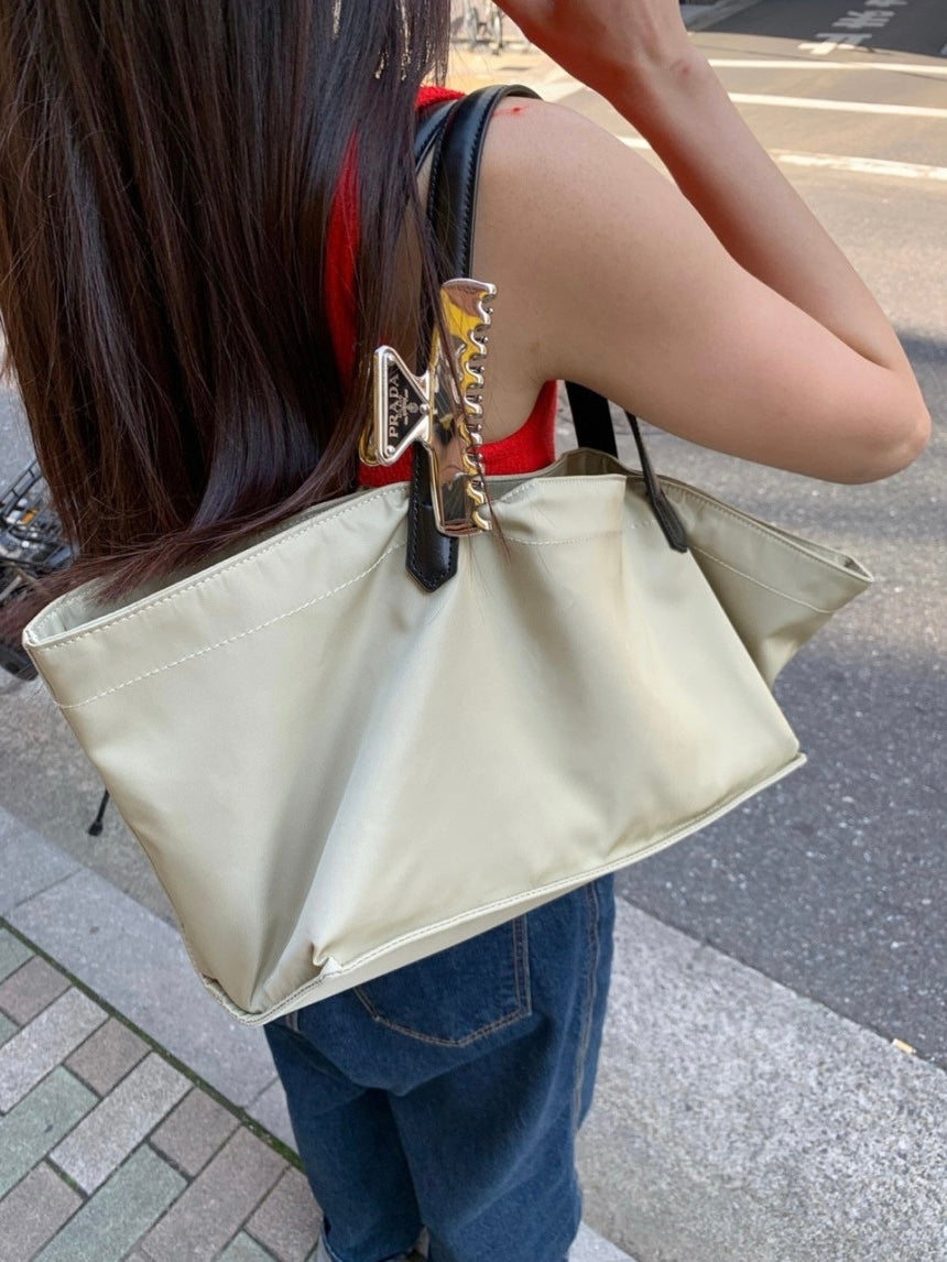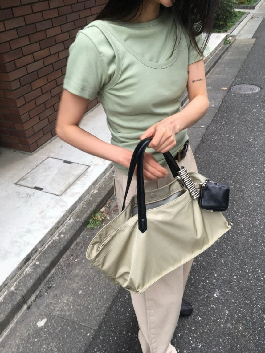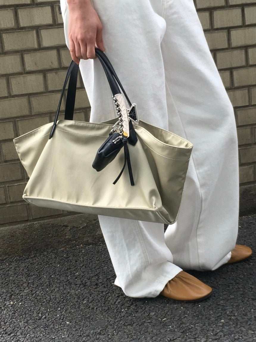 - A soft, lightweight shoulder bag made of textured polyester fabric