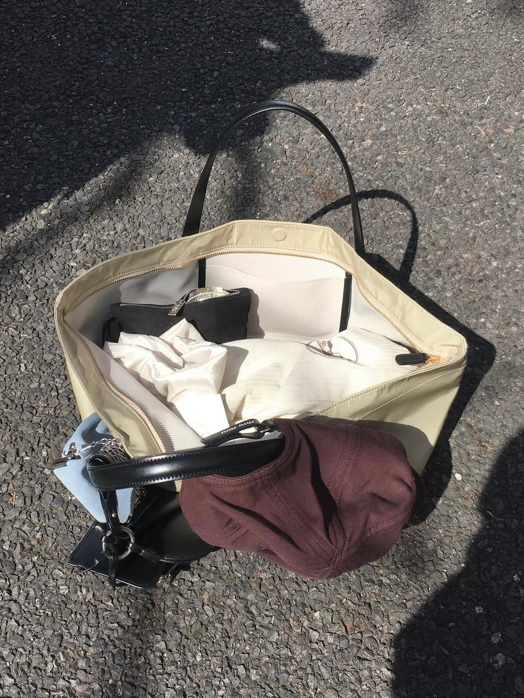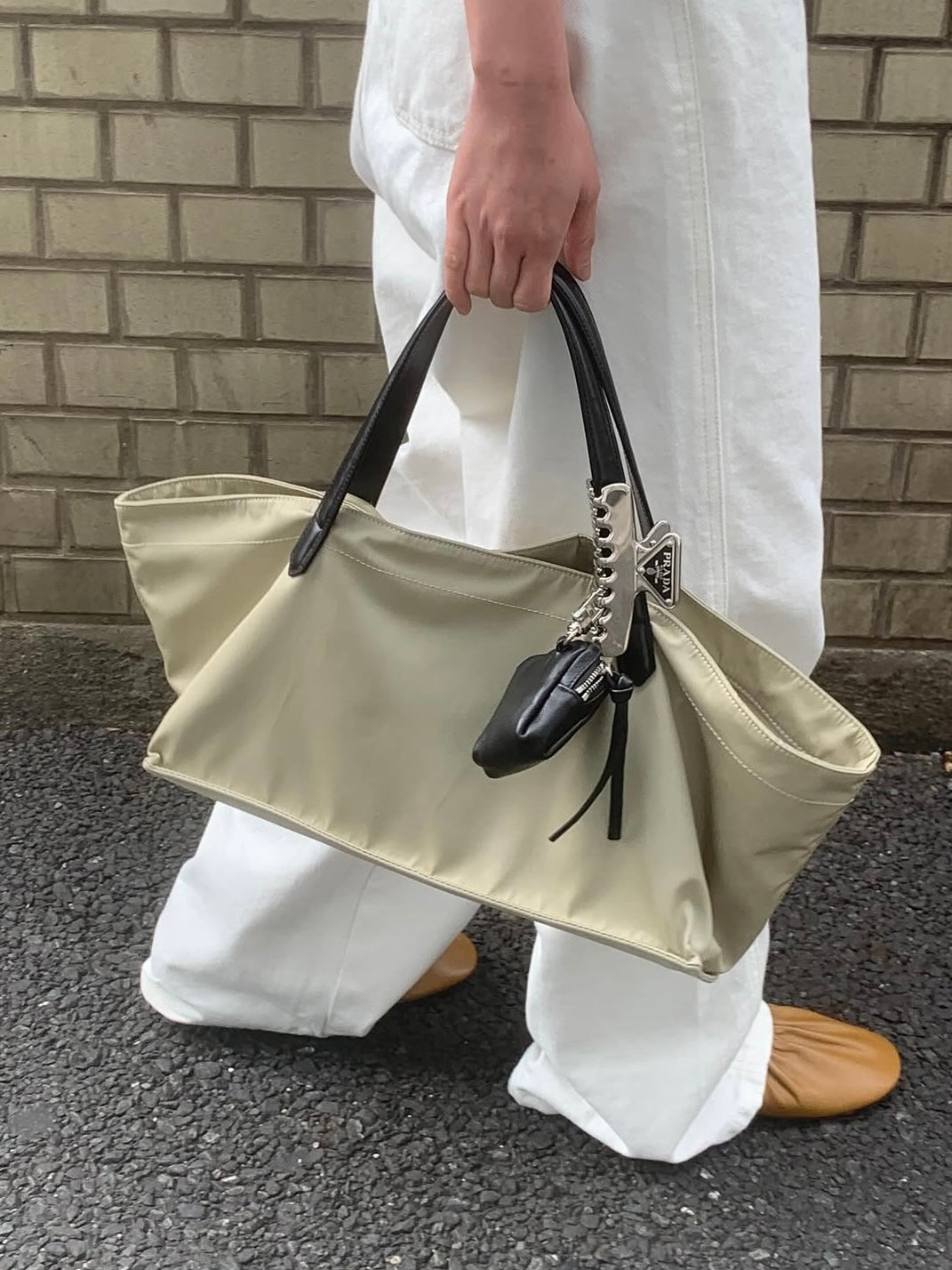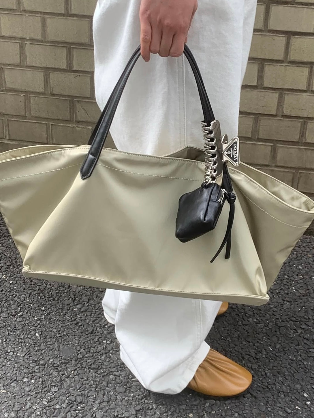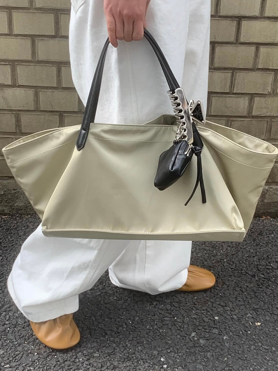 - A soft, lightweight shoulder bag made of textured polyester fabric