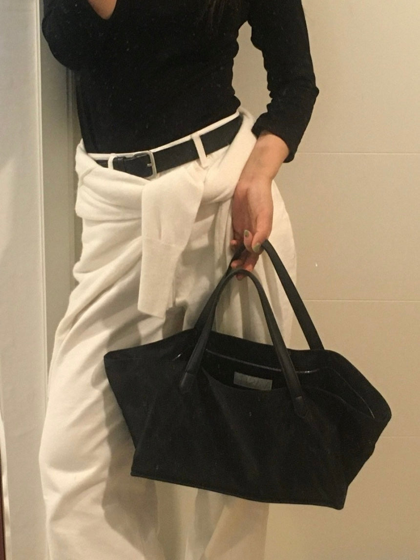 - Clean zipper closure and minimal design for a refined, modern look