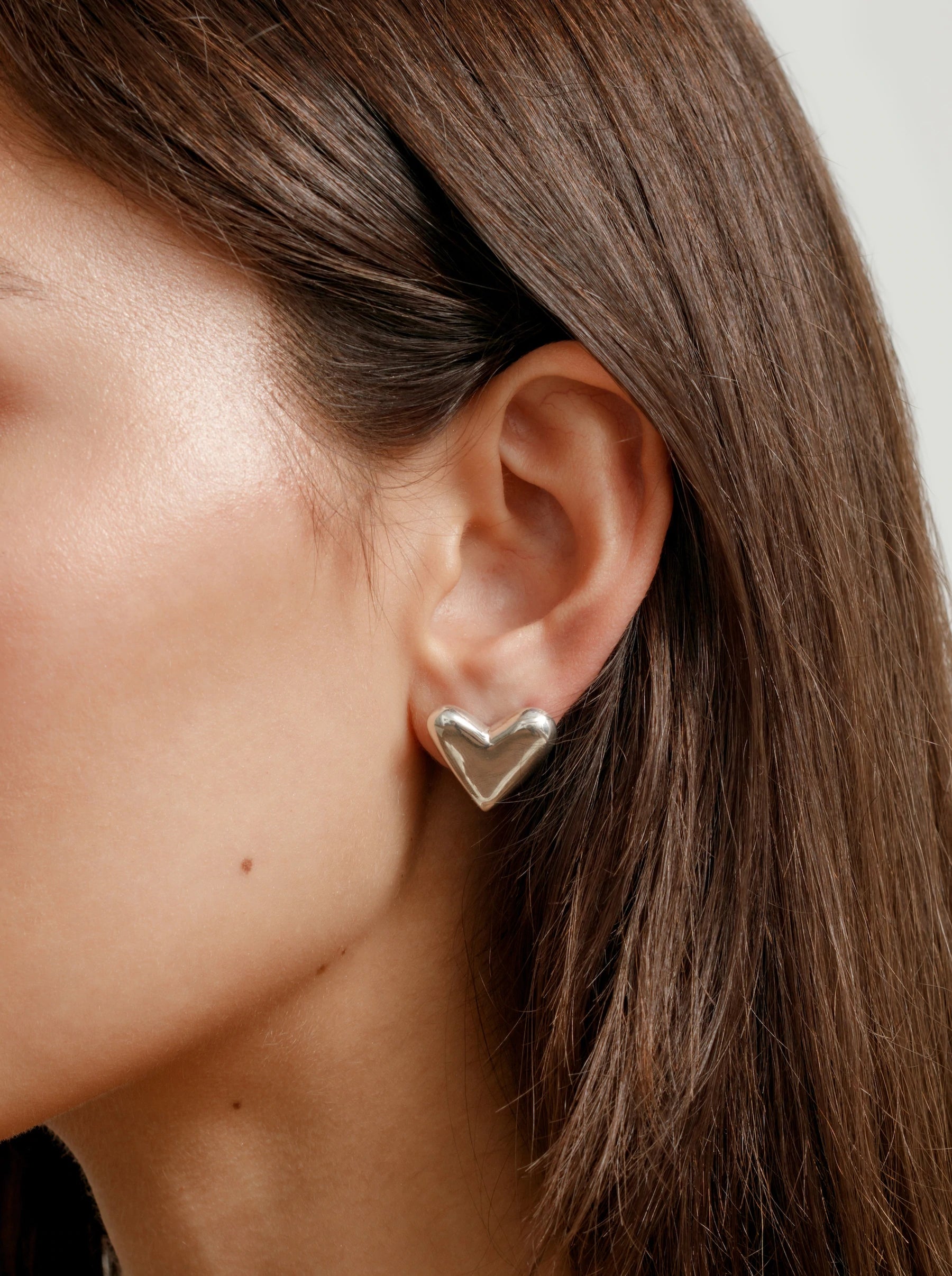 Cute, smooth heart stud earrings made by Wolf Circus. For summer, these are made in sterling silver that's very eye-catching when it hits the light. There will be a pair to match anything you'll want to wear for all your upcoming vacations or staycations.