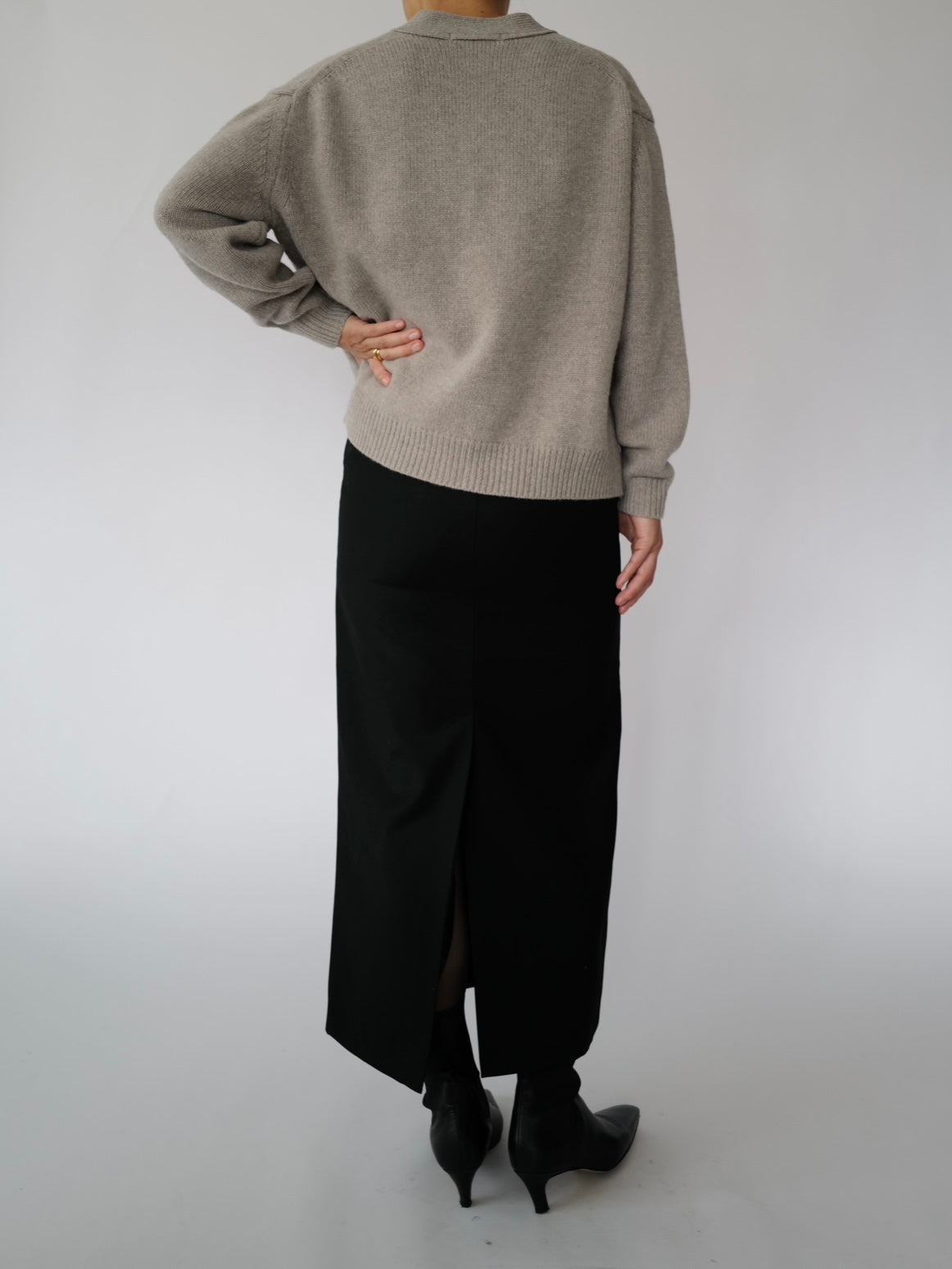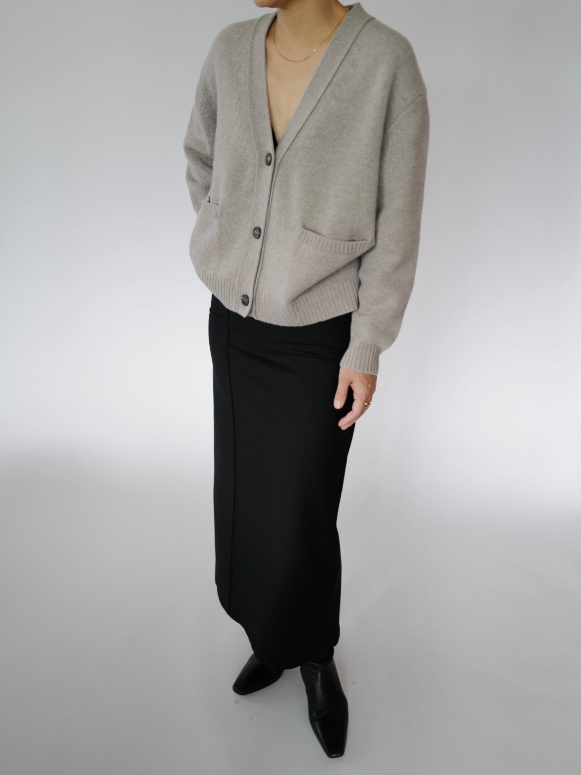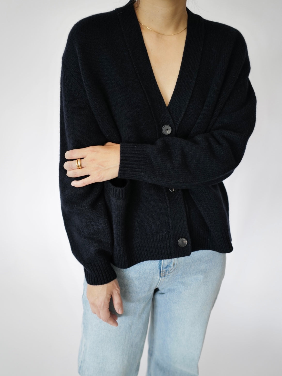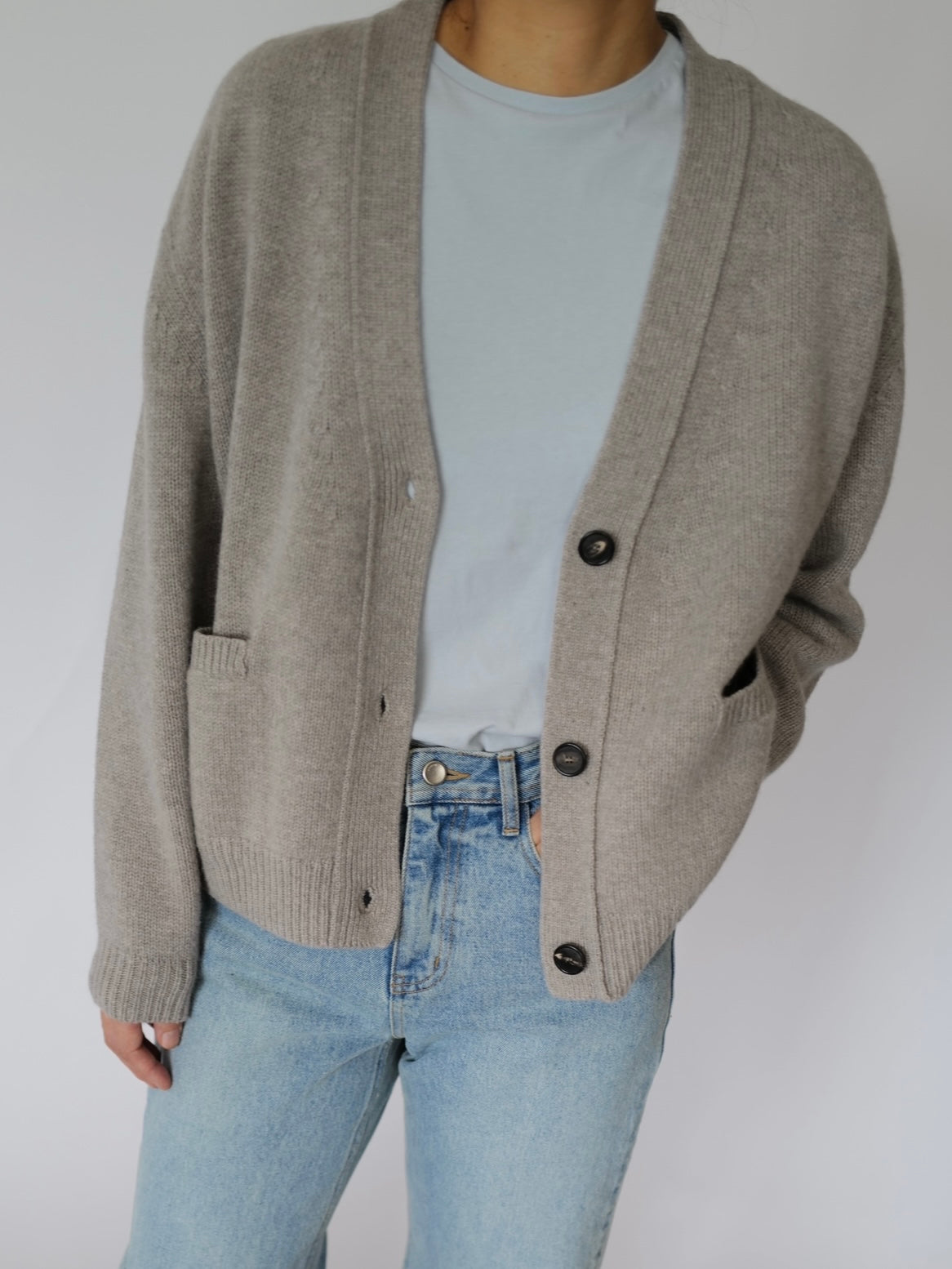 - A knitted loose-fit cardigan