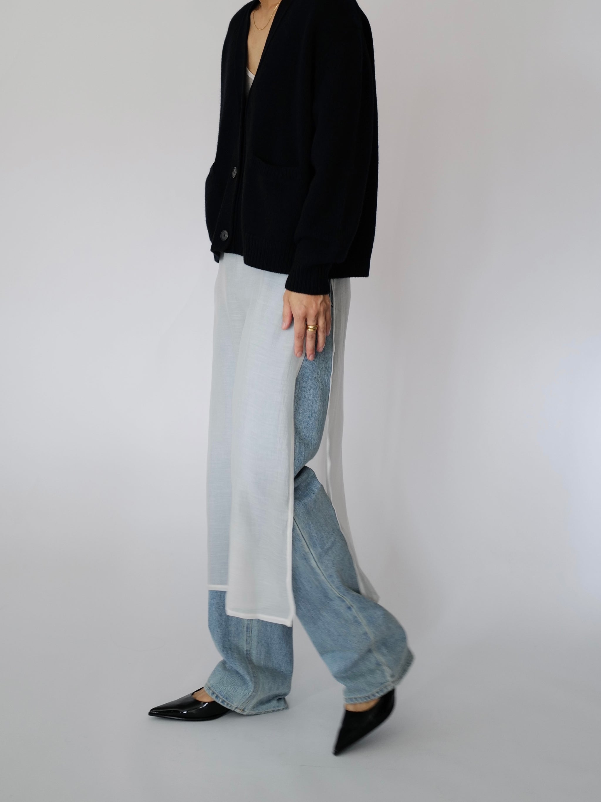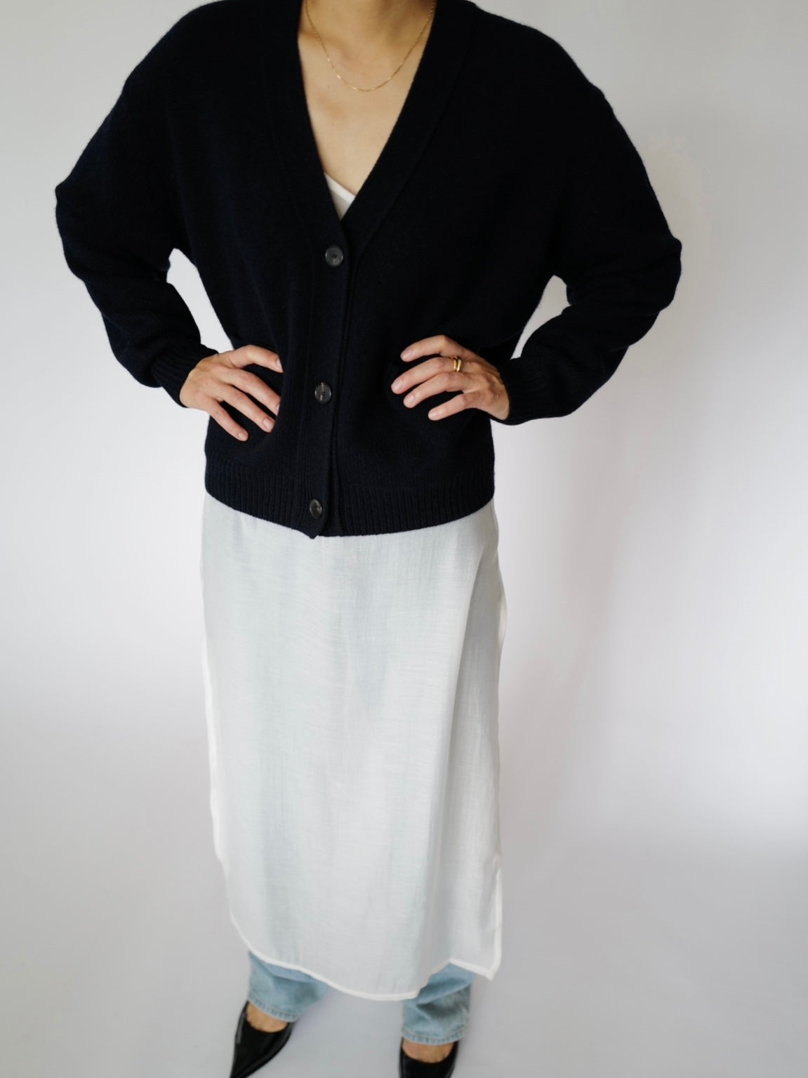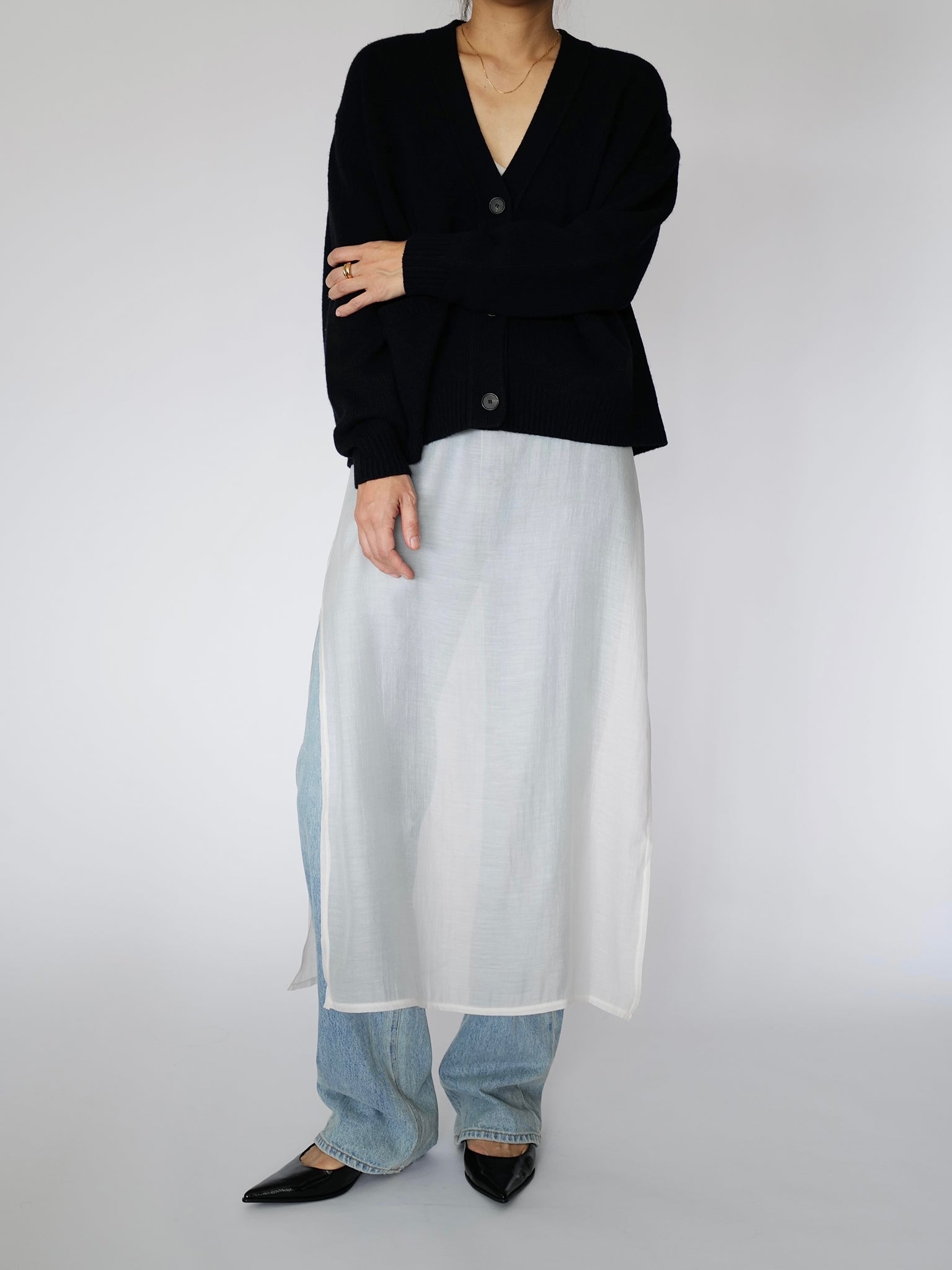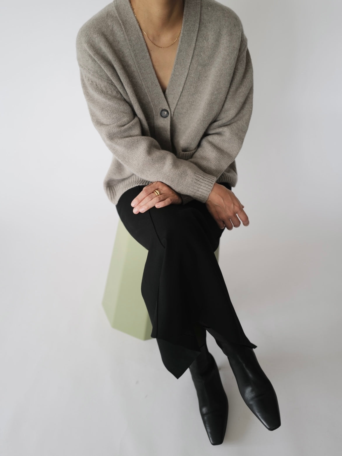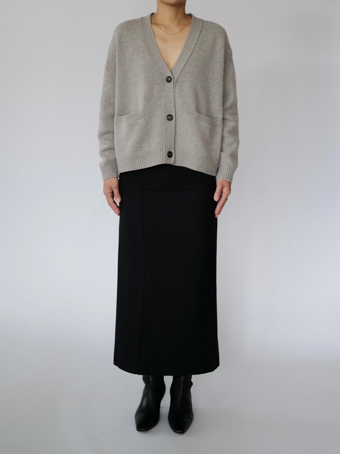 - A knitted loose-fit cardigan