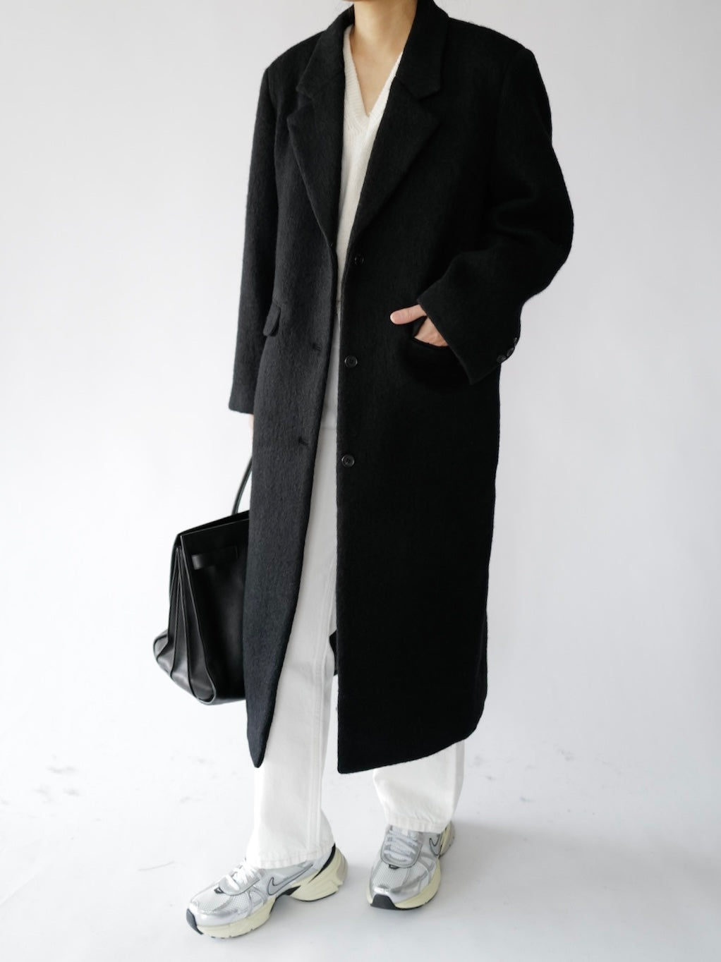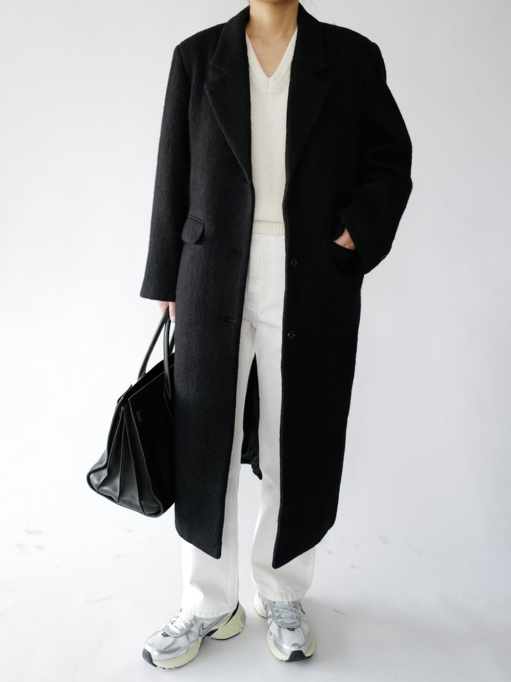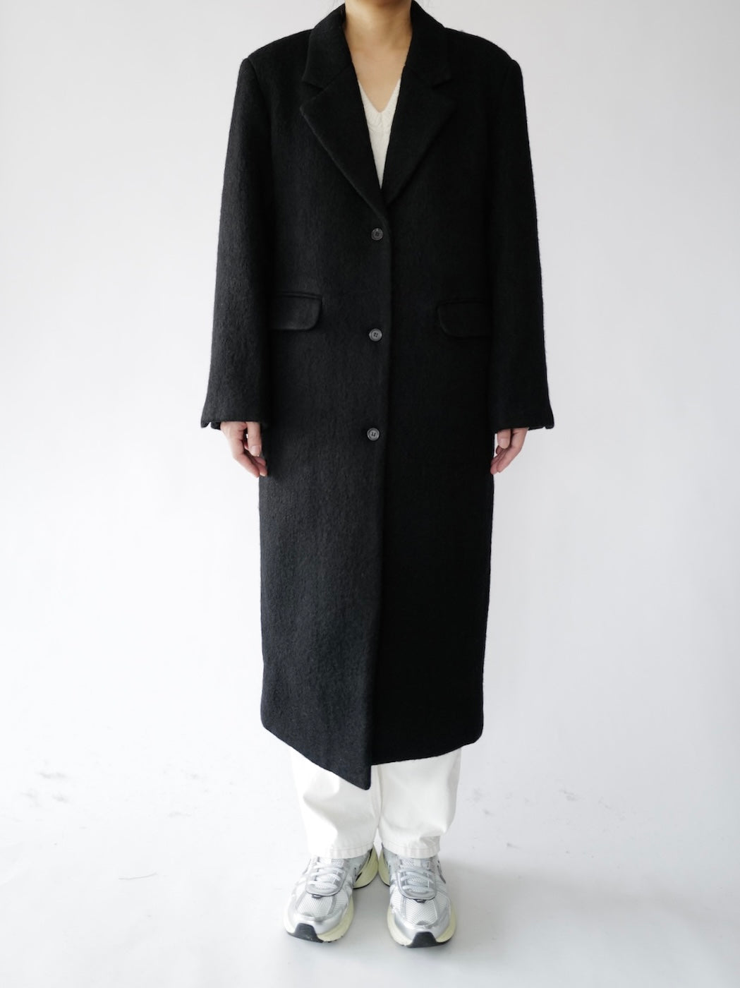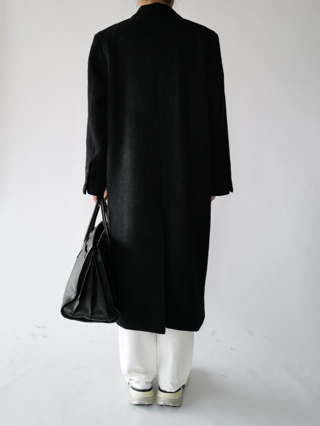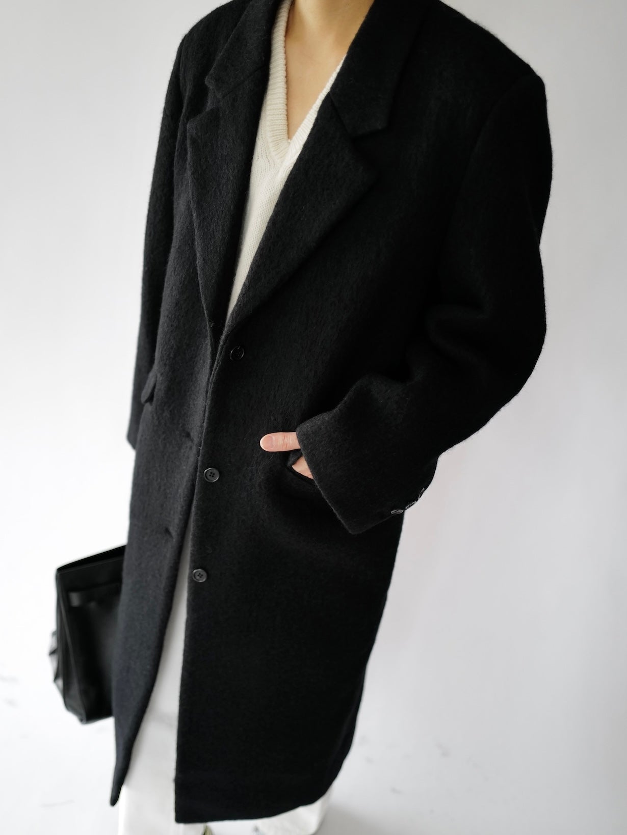 • Menswear-inspired oversized long straight coat