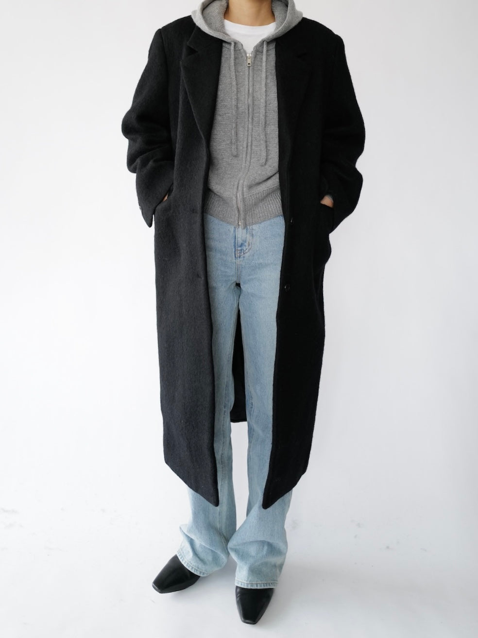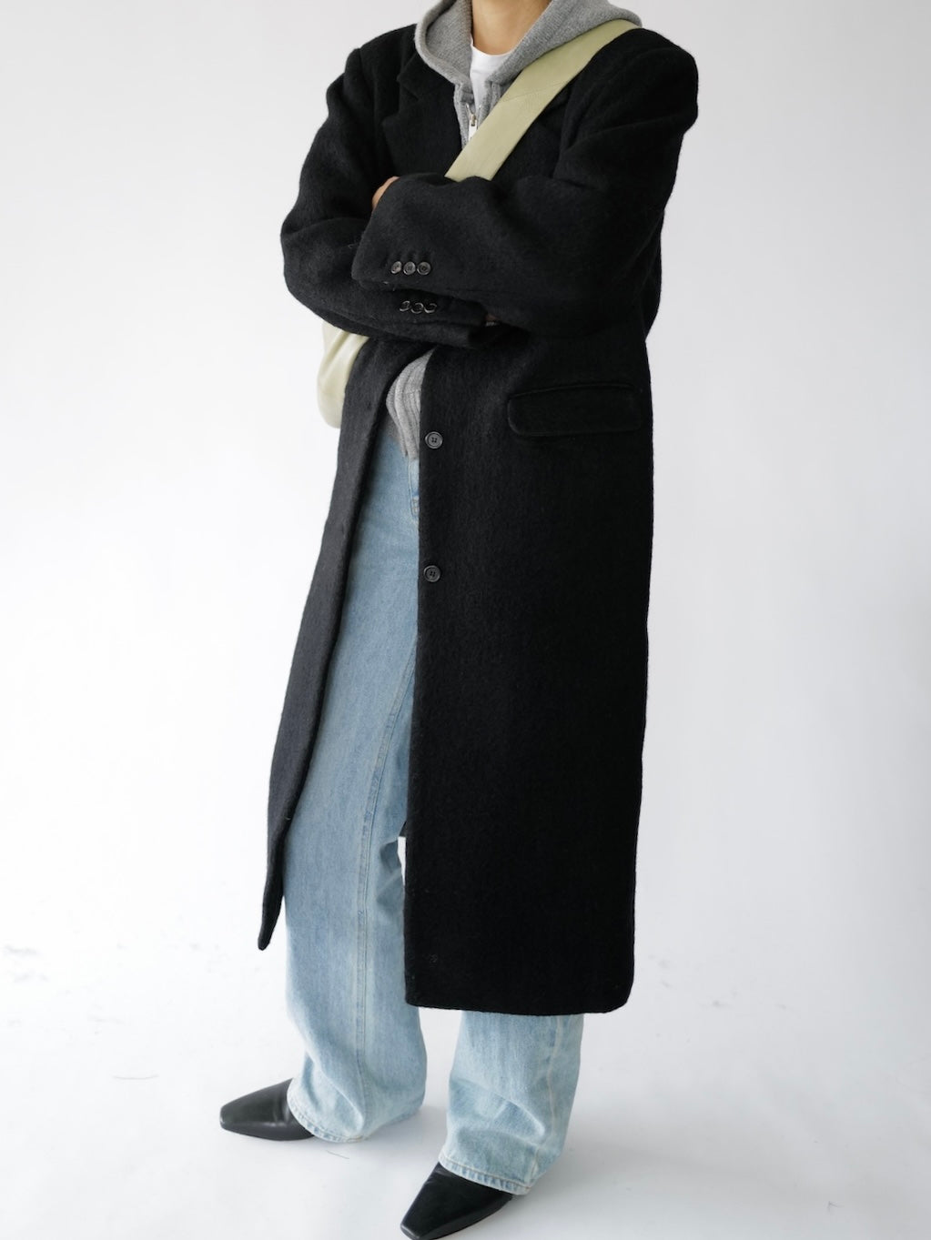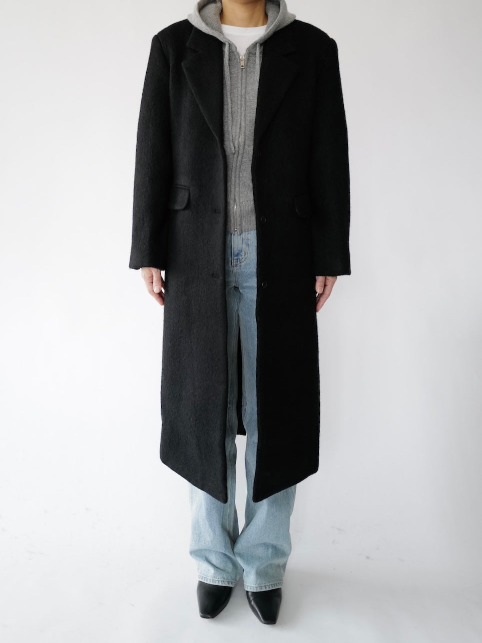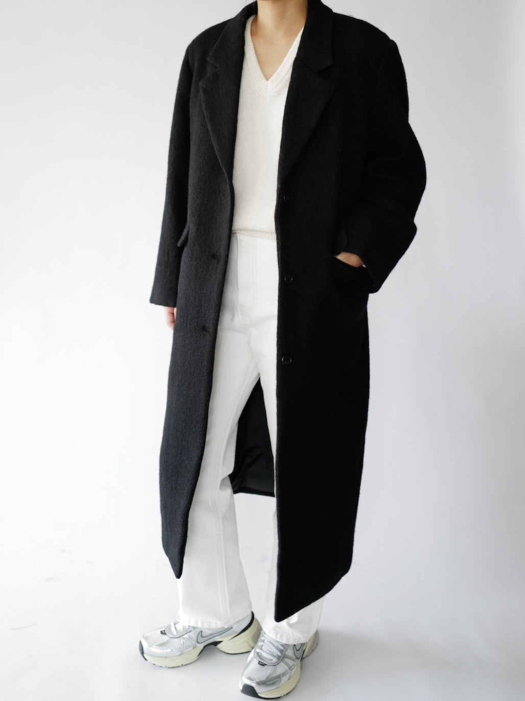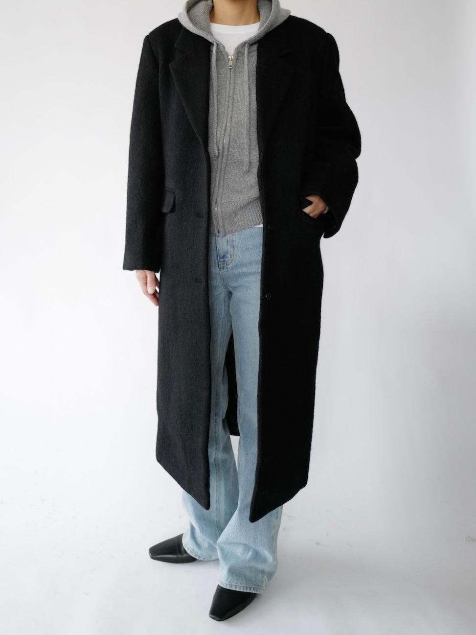 • Menswear-inspired oversized long straight coat