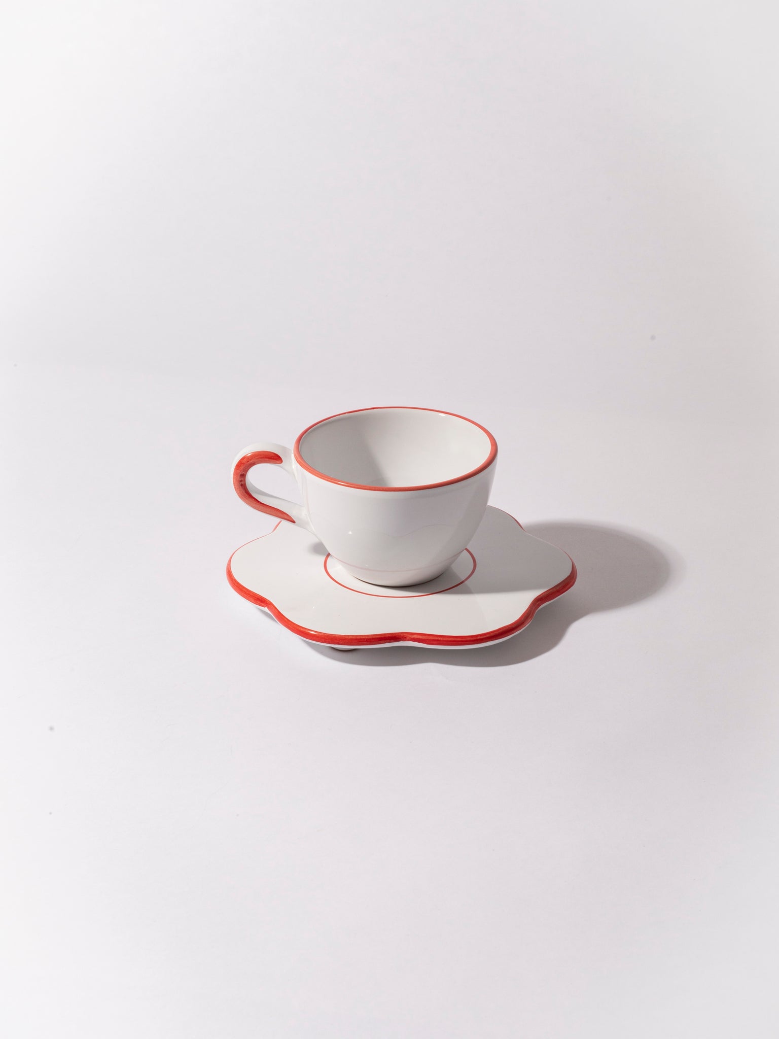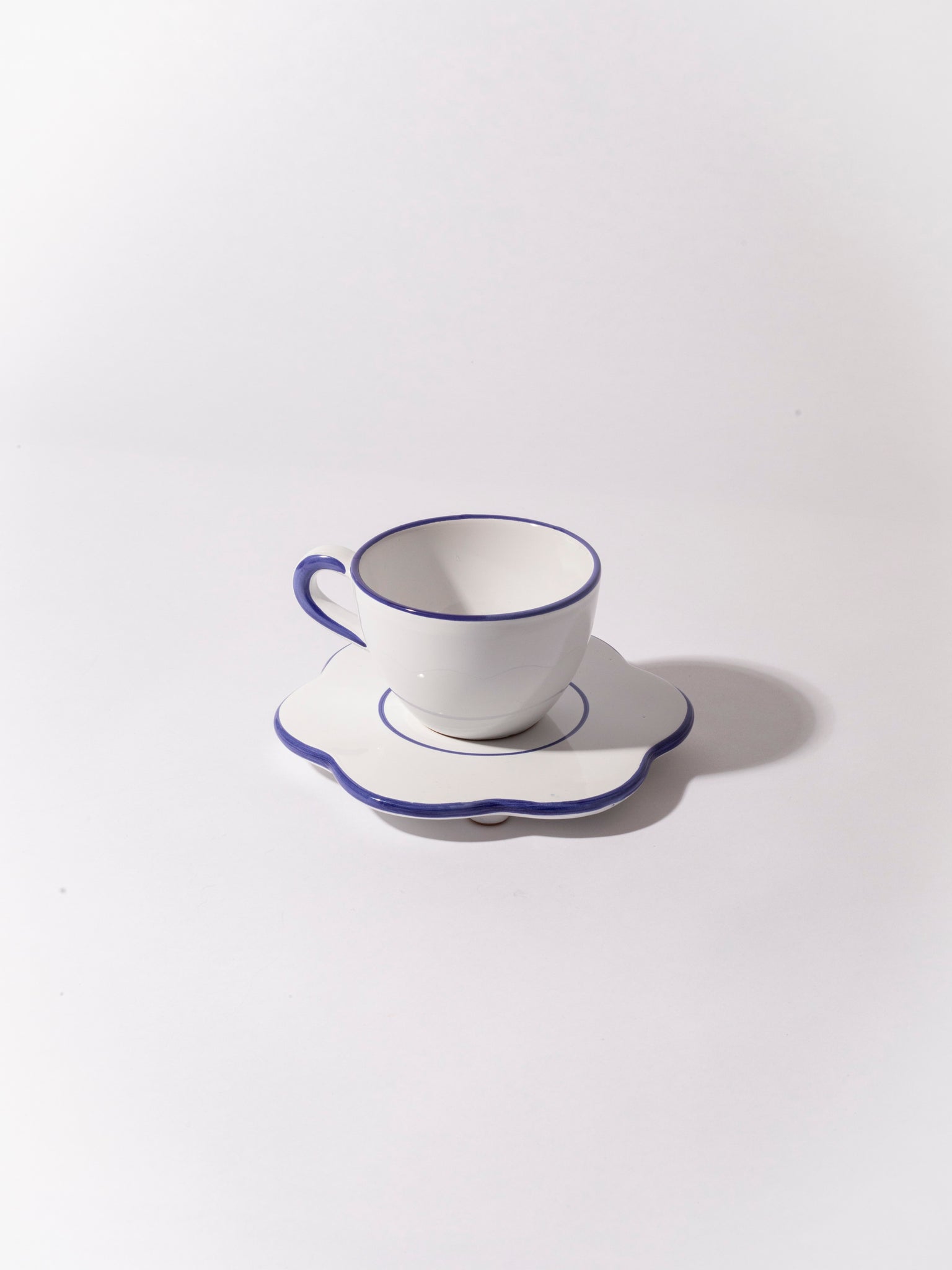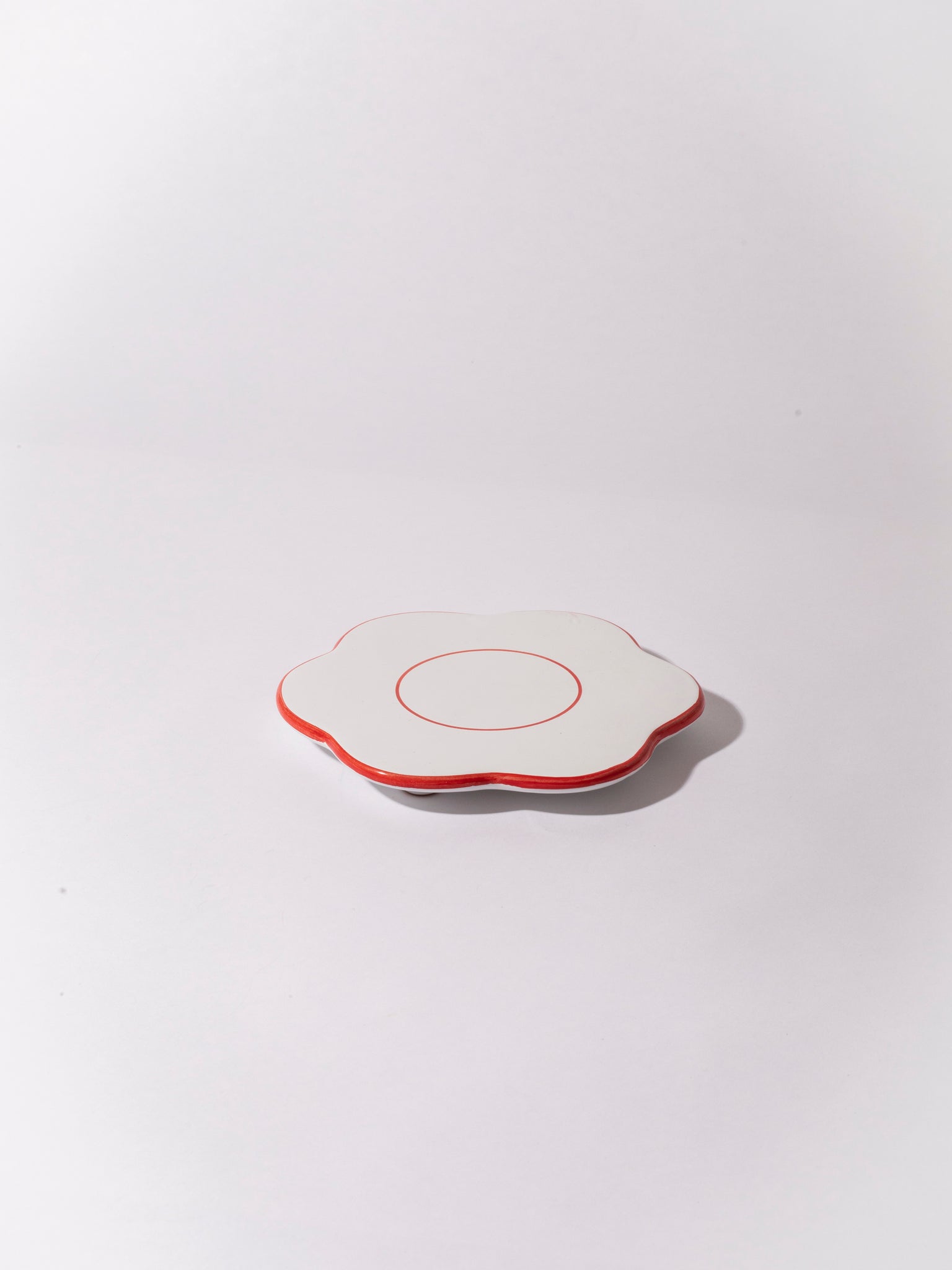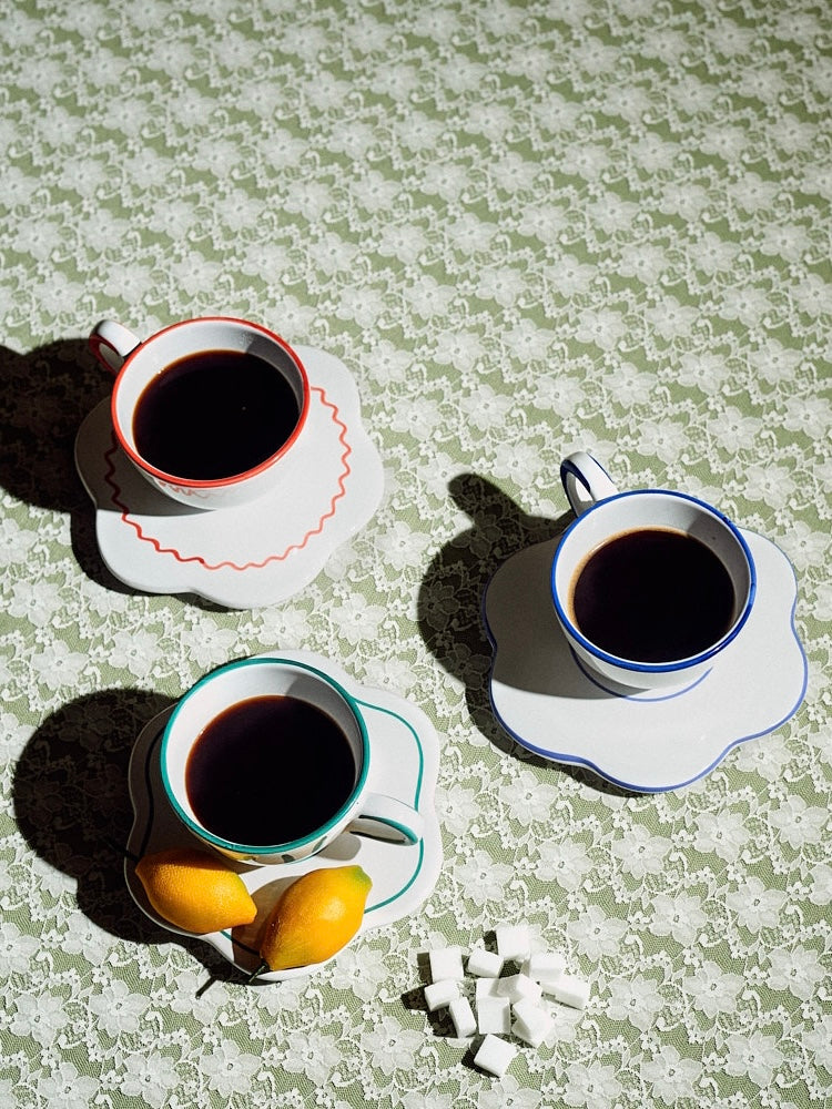 The bistro flower saucer is the little everyday item you didn't knew you needed. We use it as a saucer for coffee cups, under our cereal bowl when feeling fancy or to protect the dinner table from heat when serving a pot or just an espresso pot. The saucer is in white glazed ceramic with colorful edge. It is produced and hand painted in the south of Italy so every item is therefore a tiny bit different.