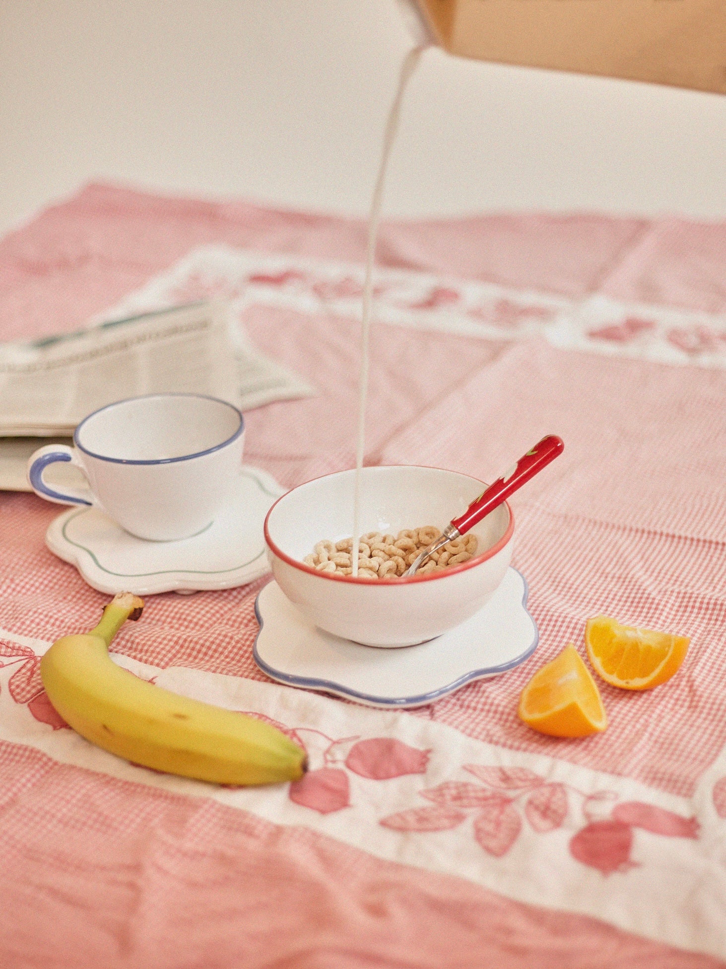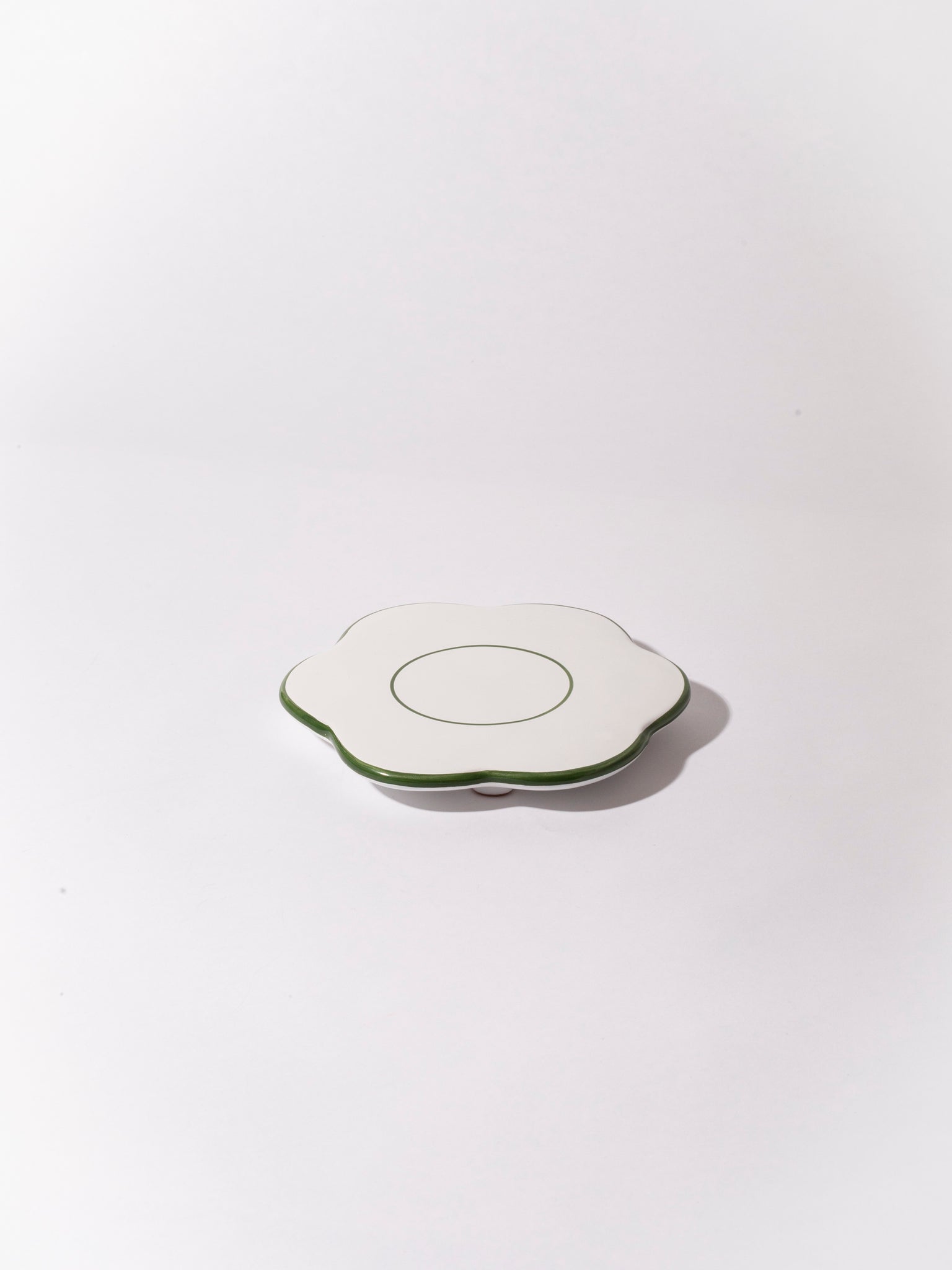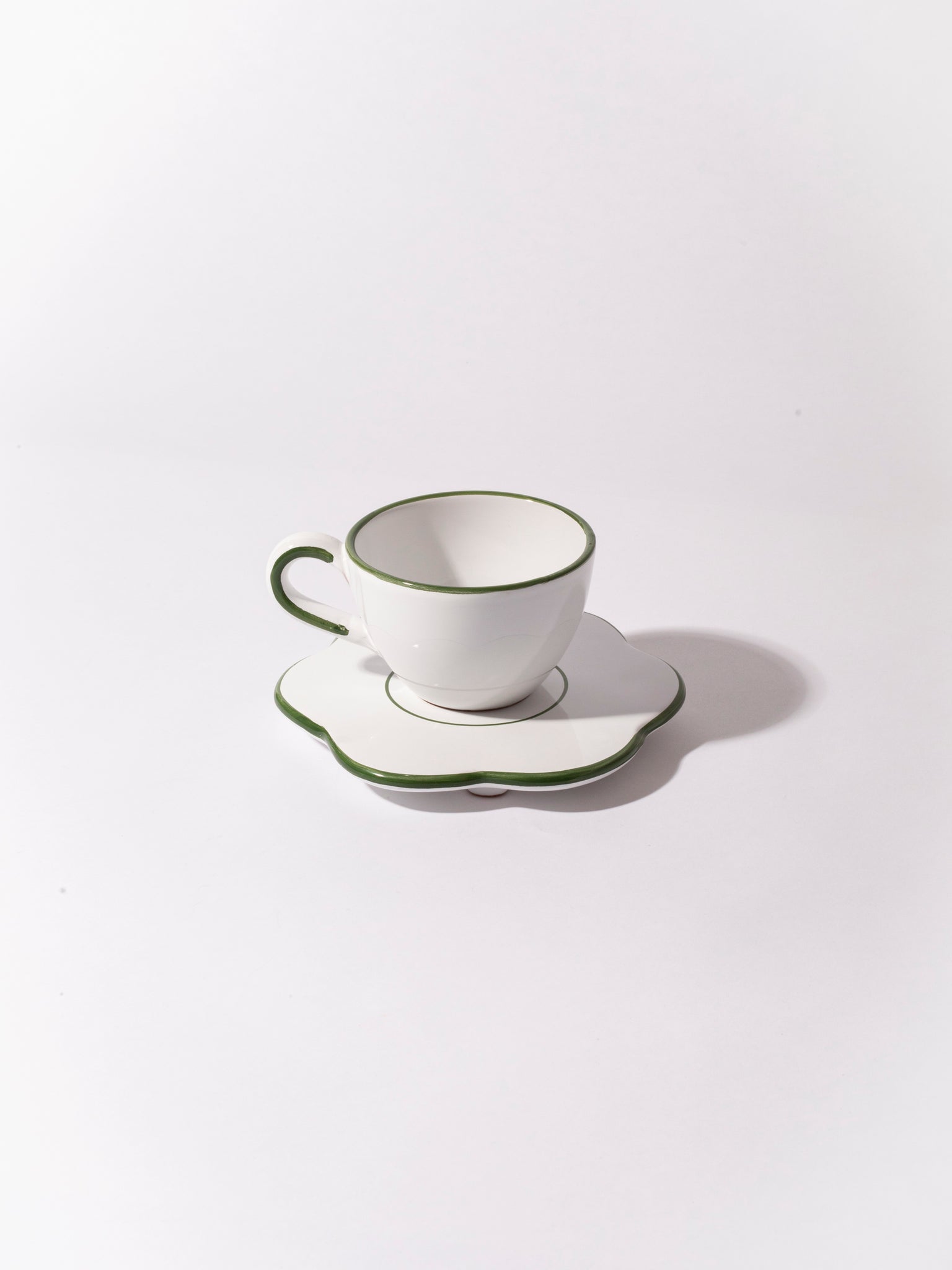 The bistro flower saucer is the little everyday item you didn't knew you needed. We use it as a saucer for coffee cups, under our cereal bowl when feeling fancy or to protect the dinner table from heat when serving a pot or just an espresso pot. The saucer is in white glazed ceramic with colorful edge. It is produced and hand painted in the south of Italy so every item is therefore a tiny bit different.