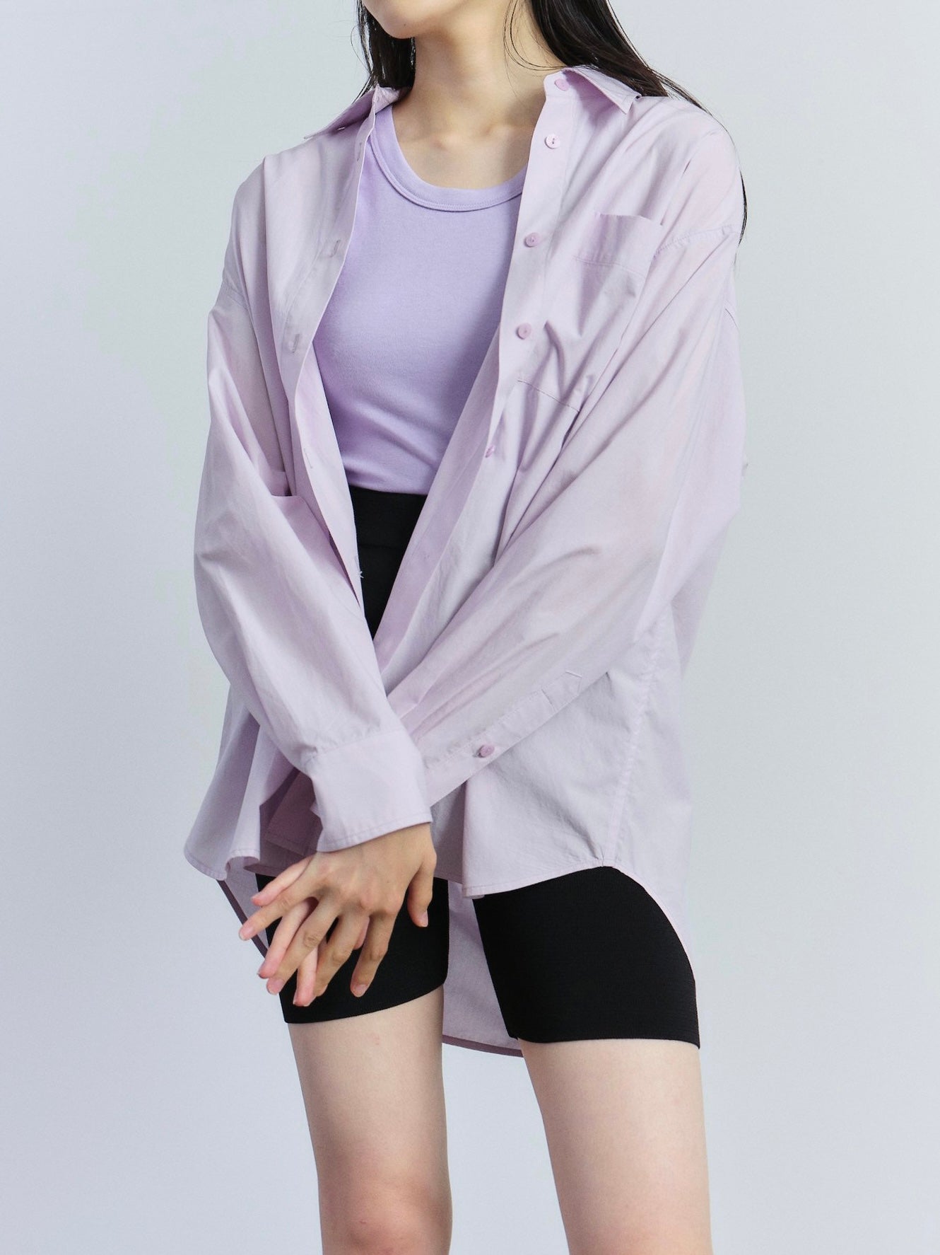 Oversized Shirt by Mijeong Park is a classic button-down shirt with a patch pocket at the chest. An essential to any wardrobe that you can dress up or dress down easily.