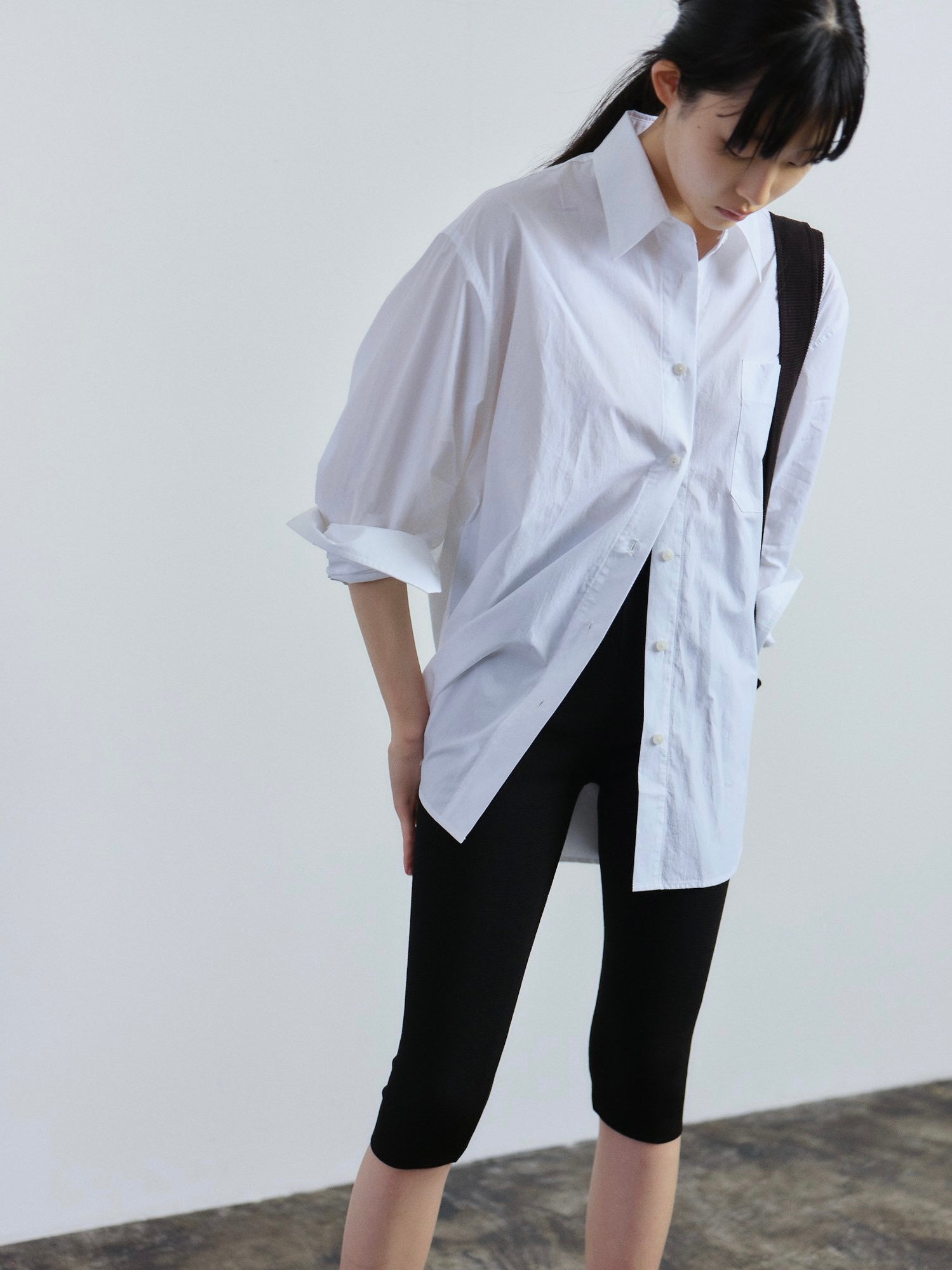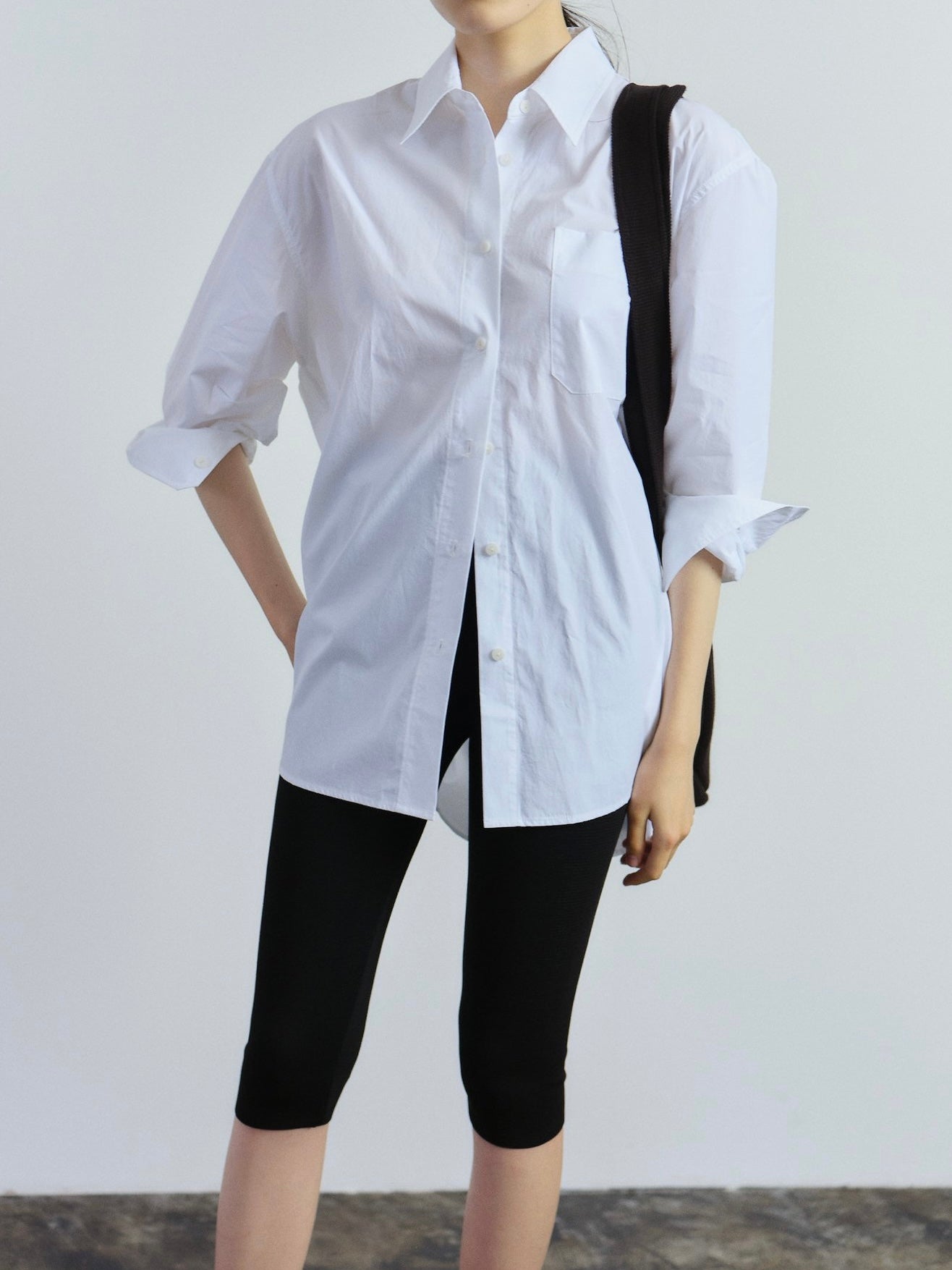 Oversized Shirt by Mijeong Park is a classic button-down shirt with a patch pocket at the chest. An essential to any wardrobe that you can dress up or dress down easily.