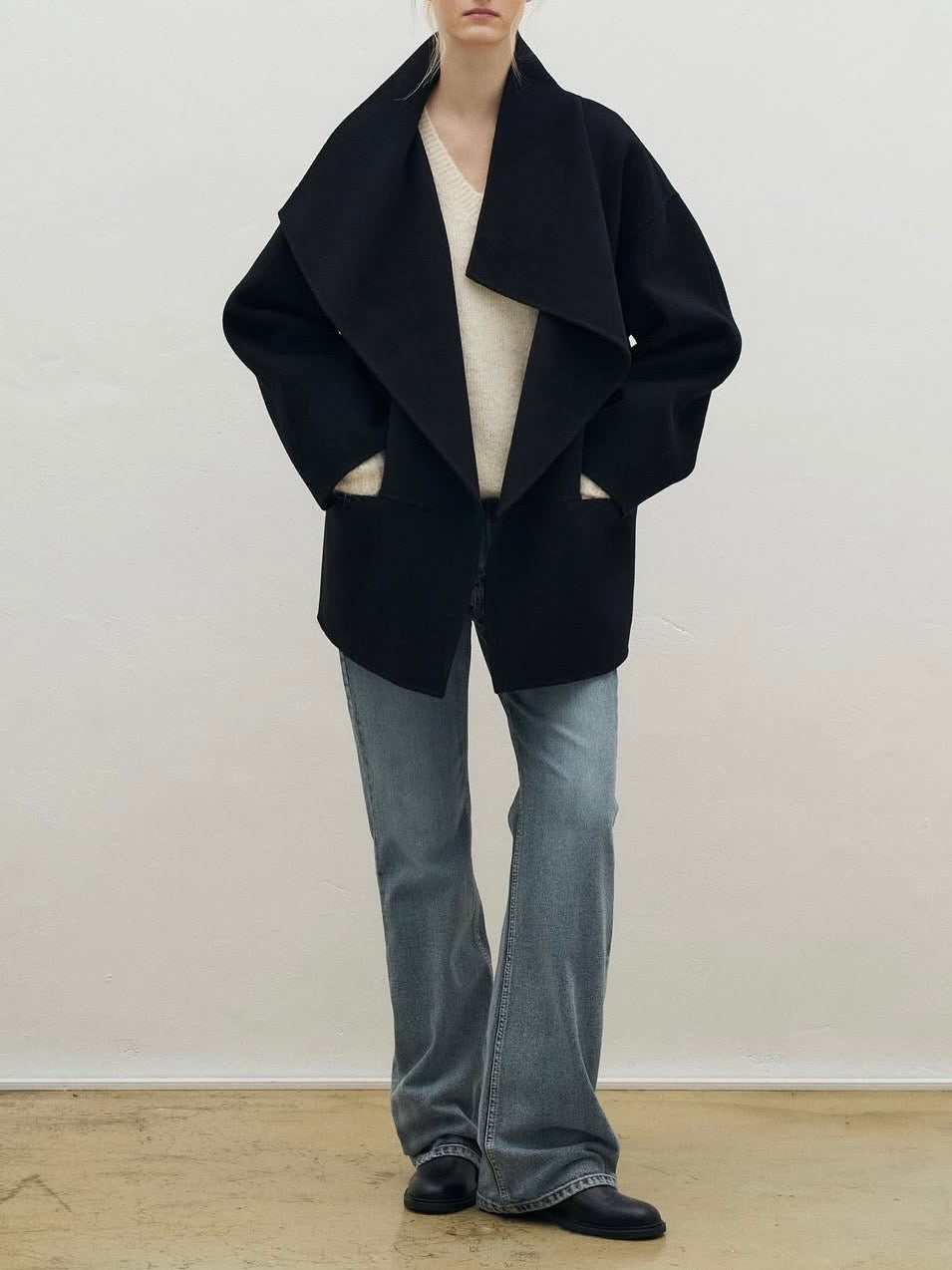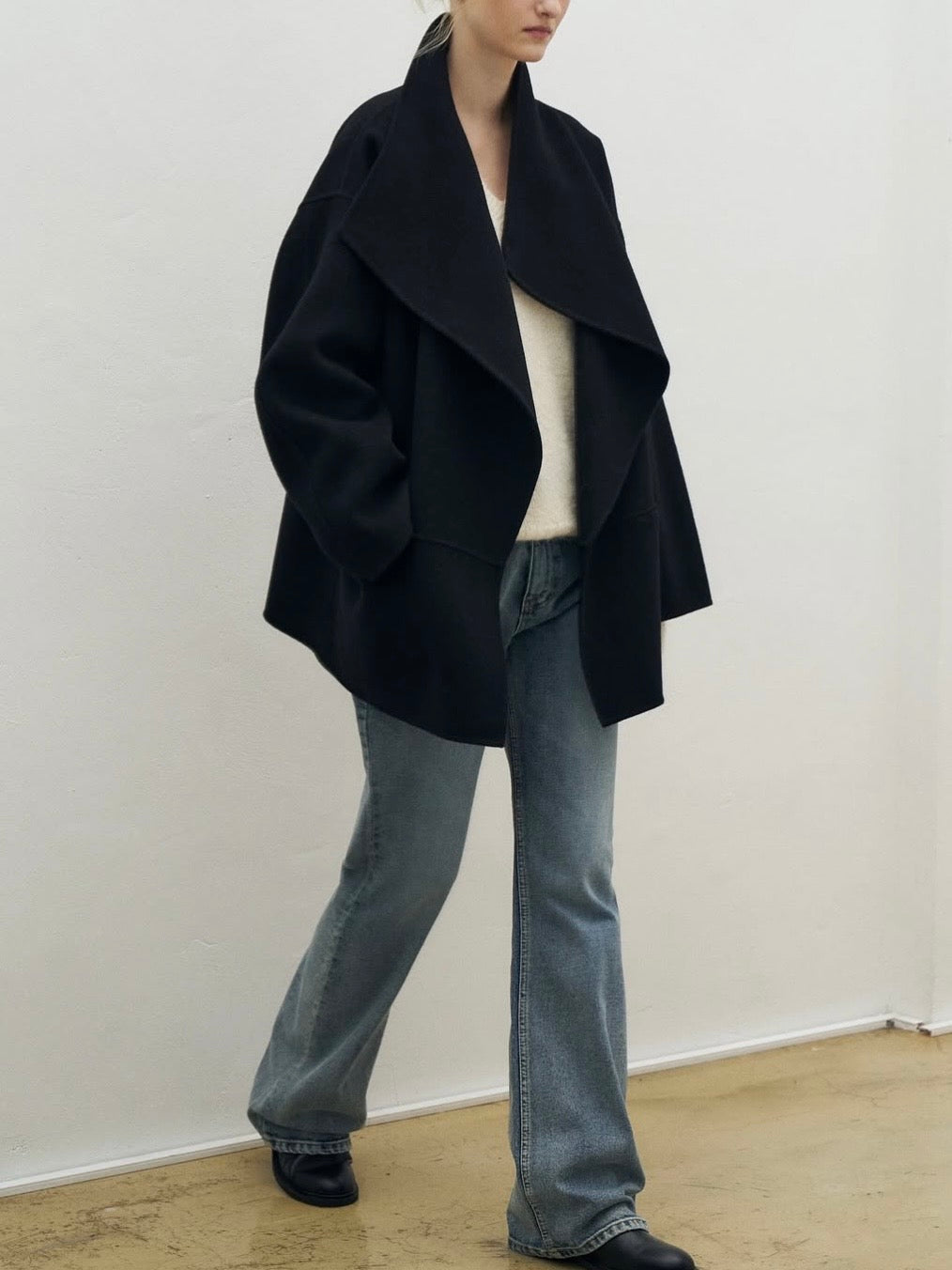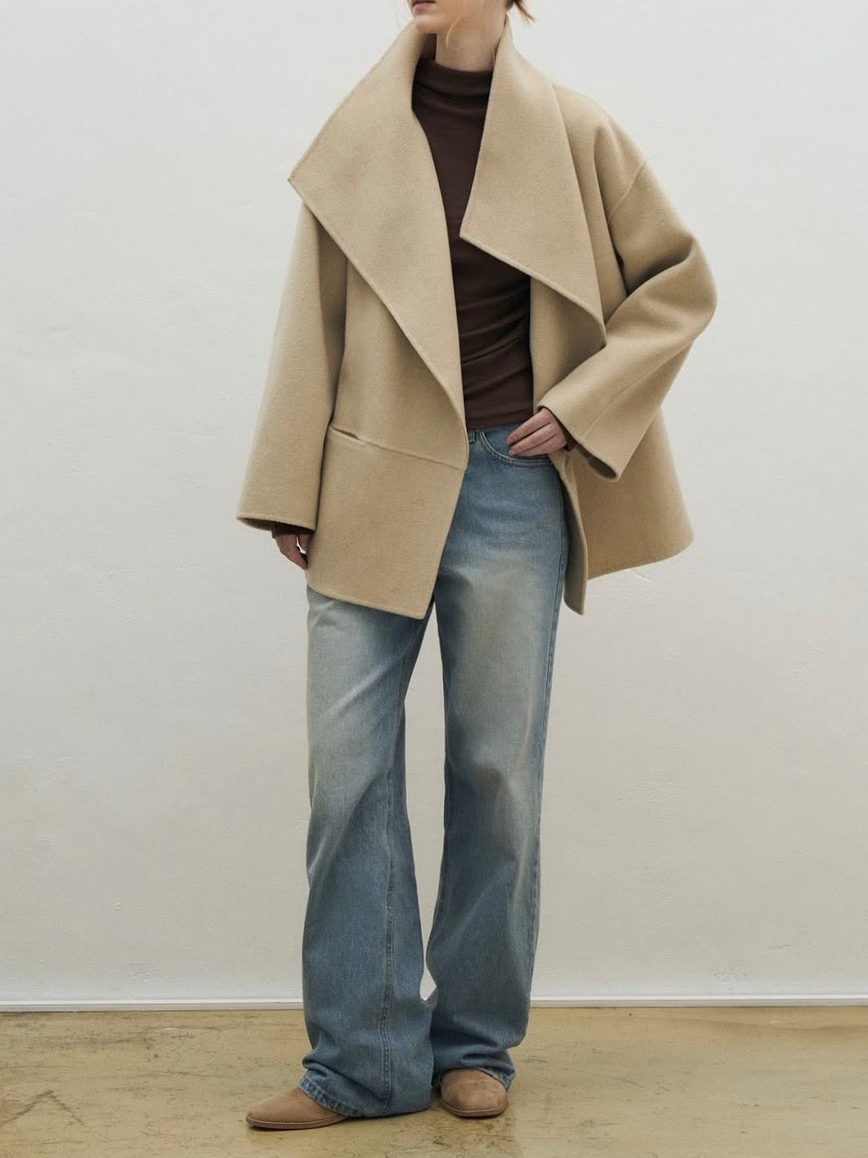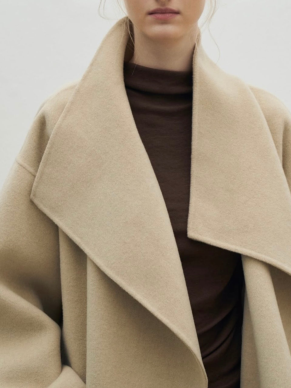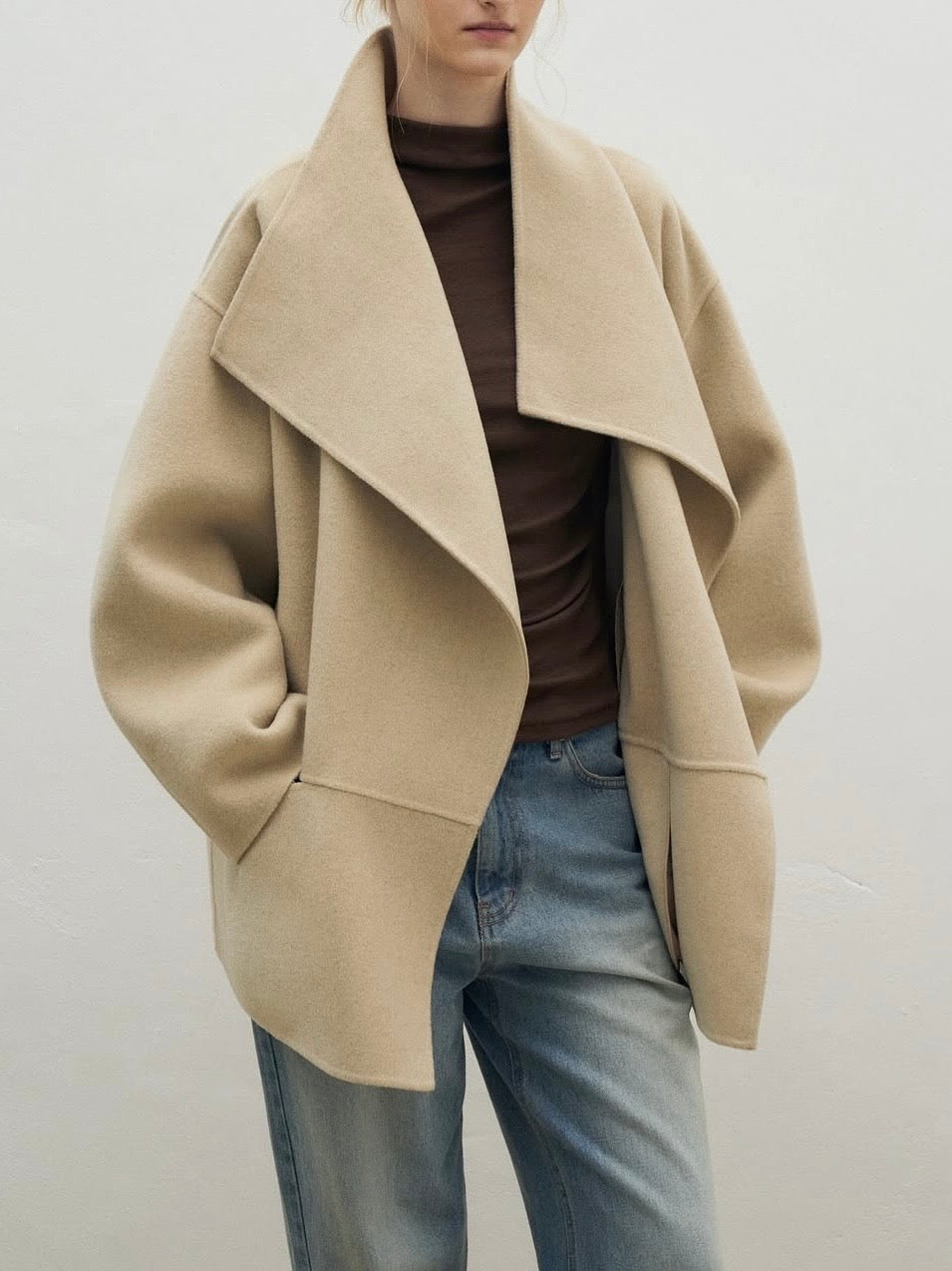 • Coat featuring fluid shawl lapels and an open-front design for effortless layering