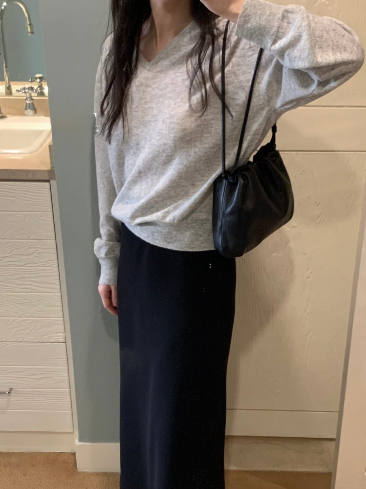 • Leather shoulder bag in black
