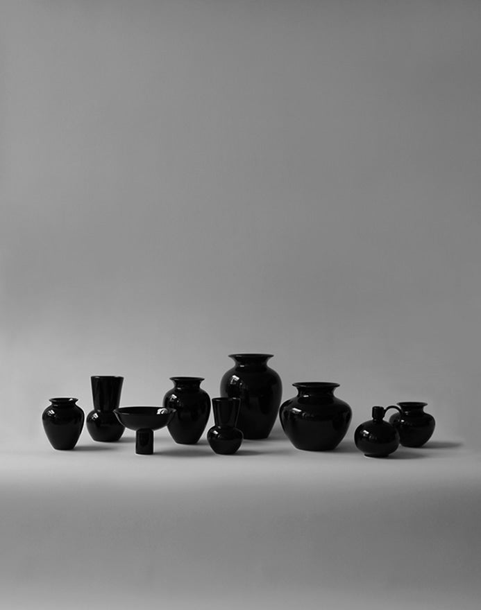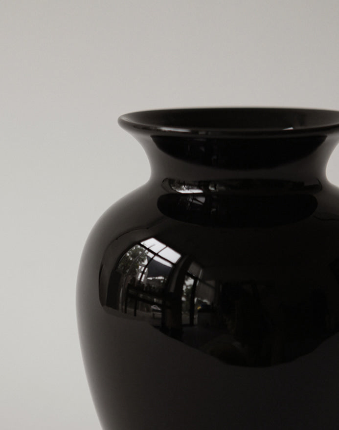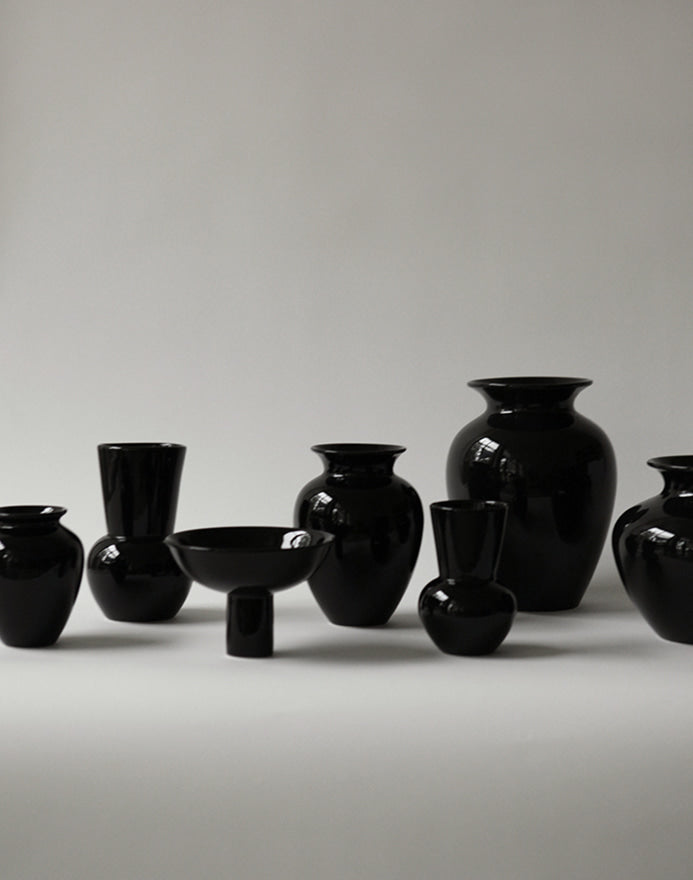 A vase inspired by an amphora, one of the ancient Greek jars. It is said that these Greek jars, which had various shapes and uses, found their proportions in the “golden ratio.” The soft and stable lines form the shape of a long jar with a bulging body that quietly fills a space.