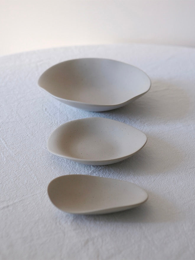 The Hin collection expresses nature's endlessly flowing lines as tableware. Designed differently for each product, the soft, atypical curves overlap to create a beautiful shape. The pieces in the collection go well with a variety of foods, as they were made with practicality in mind in consideration of the food cultures of the East and the West.