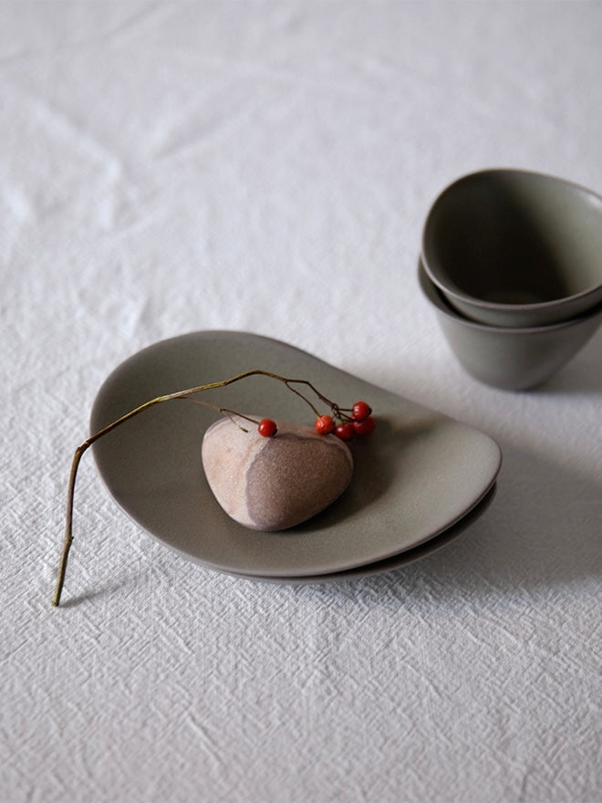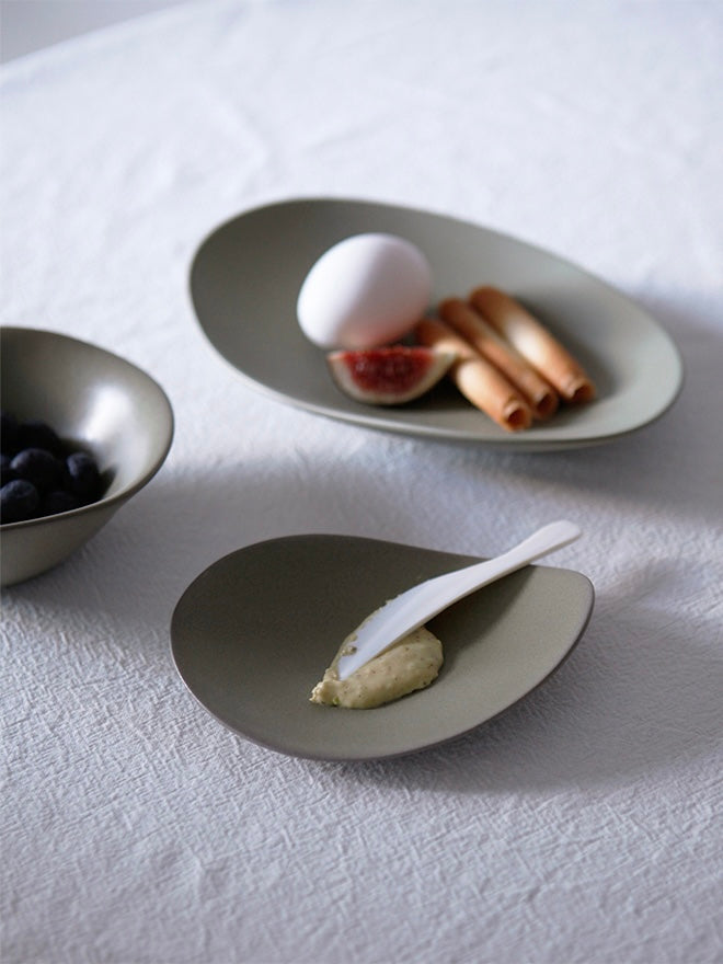 The Hin collection expresses nature's endlessly flowing lines as tableware. Designed differently for each product, the soft, atypical curves overlap to create a beautiful shape. The pieces in the collection go well with a variety of foods, as they were made with practicality in mind in consideration of the food cultures of the East and the West.