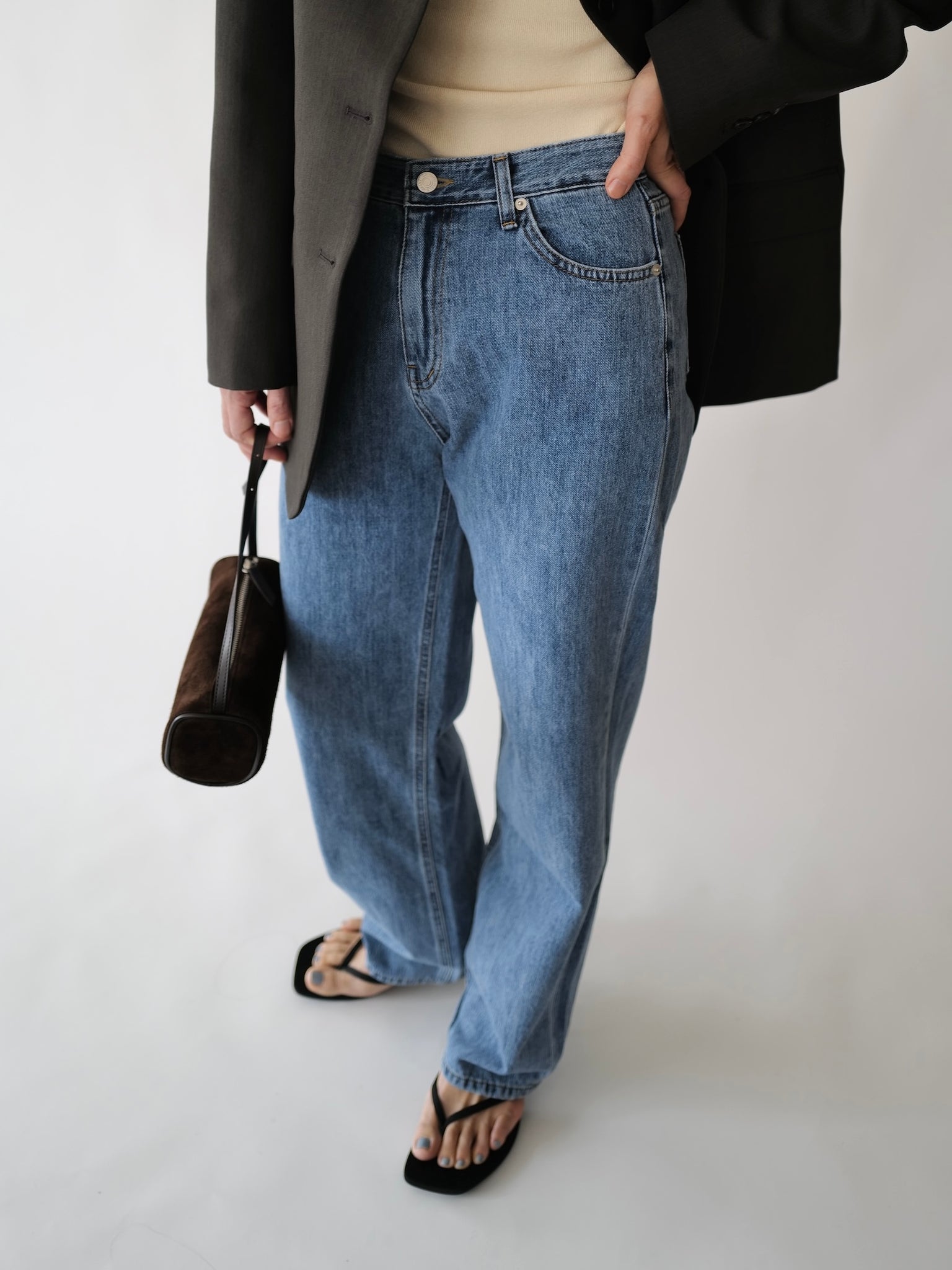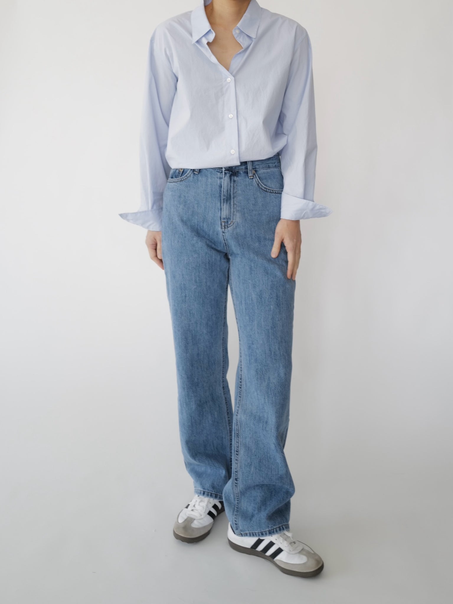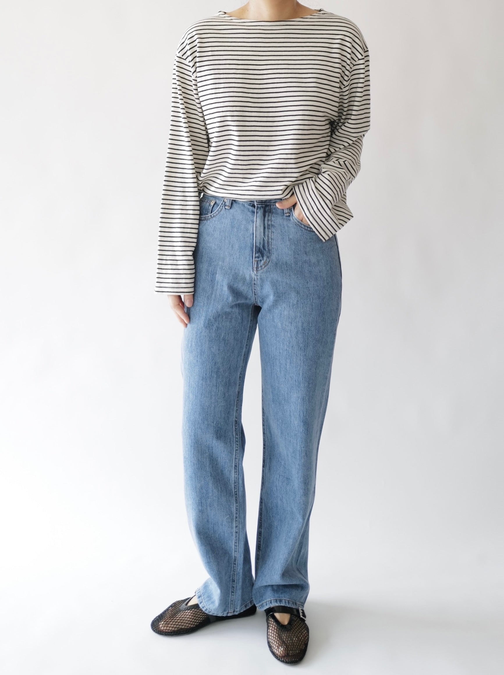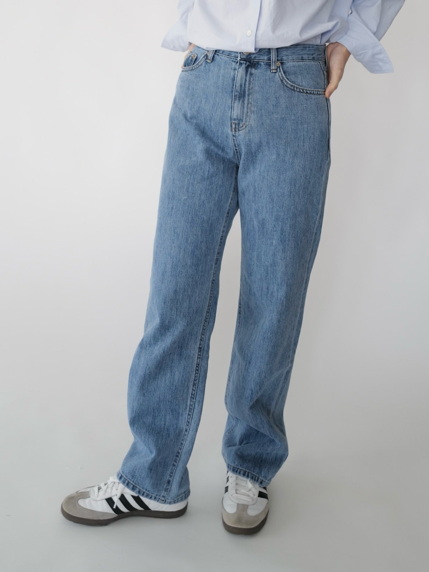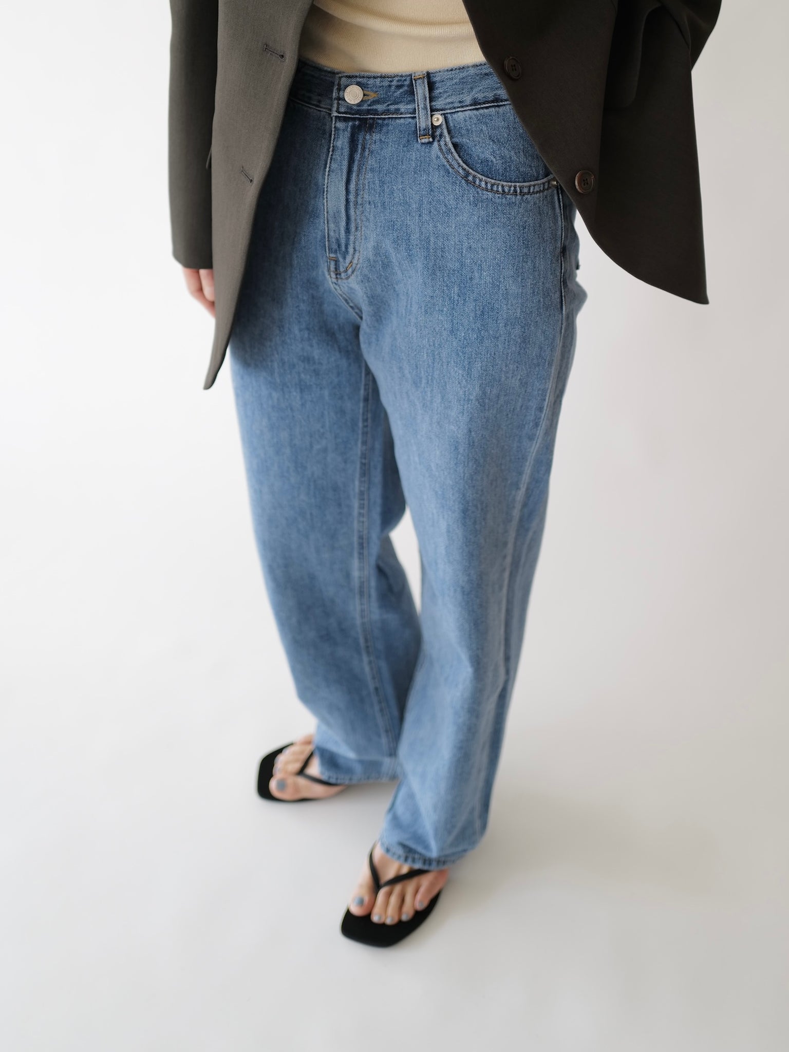 - Medium washed straight denim