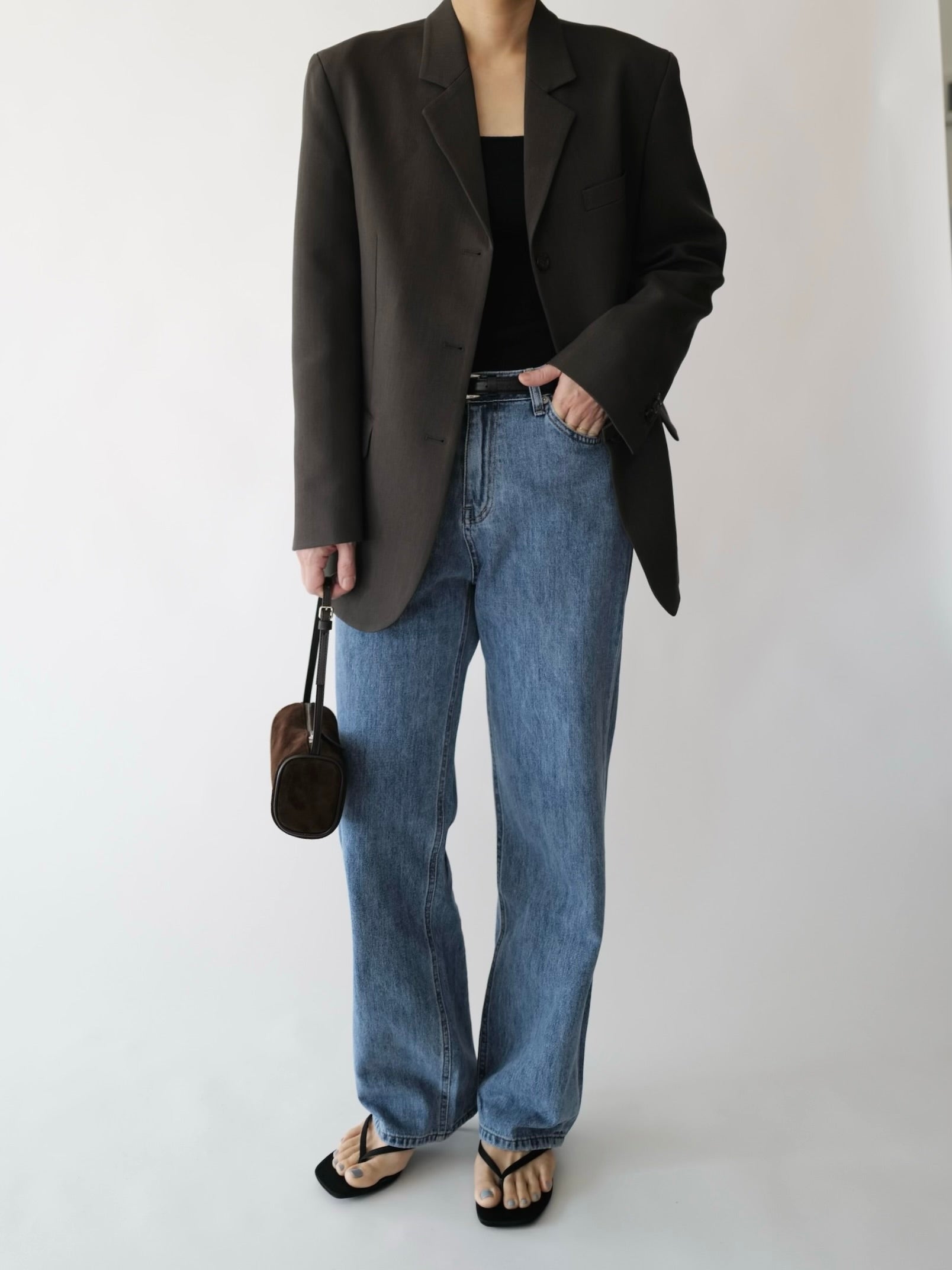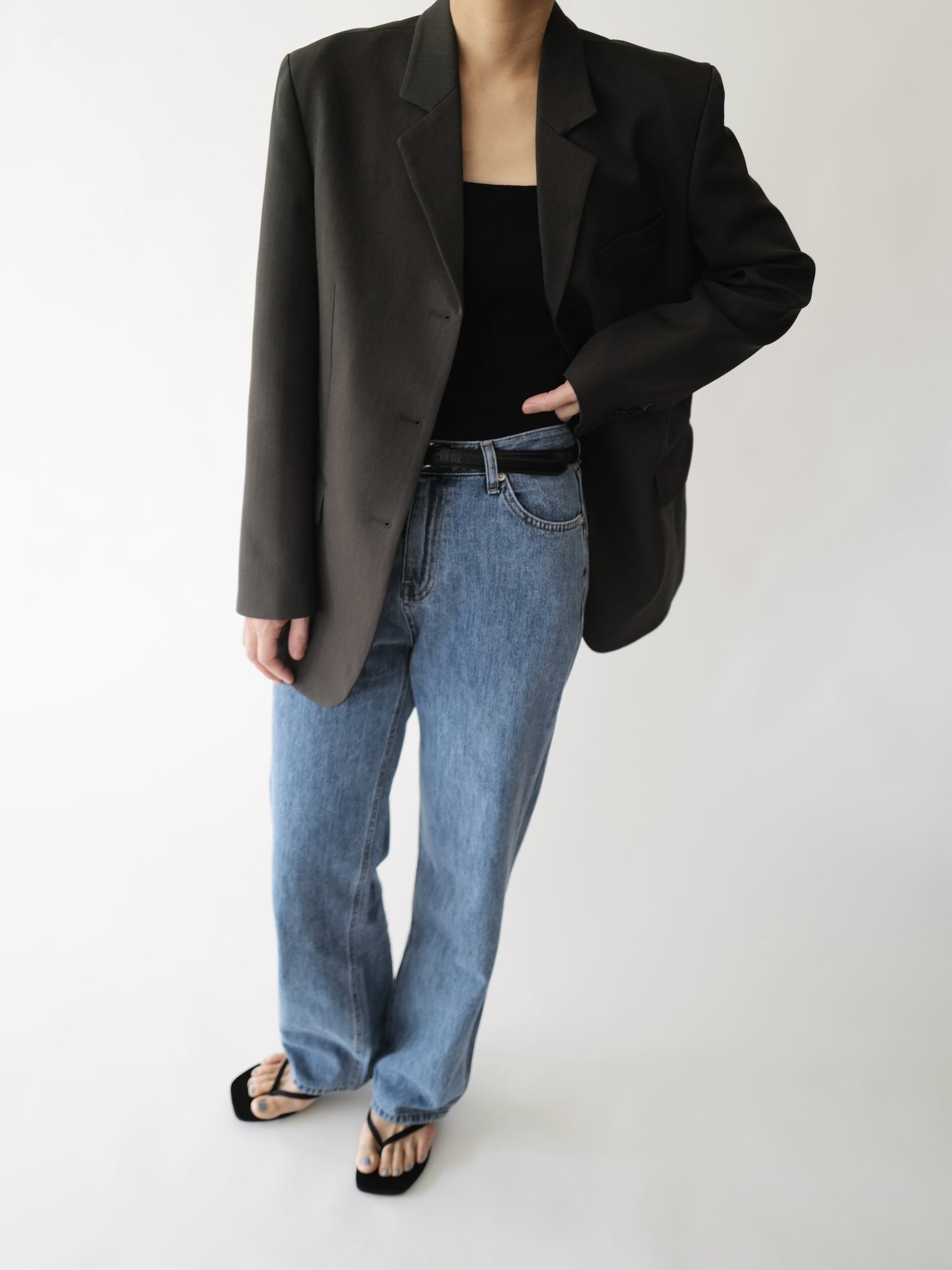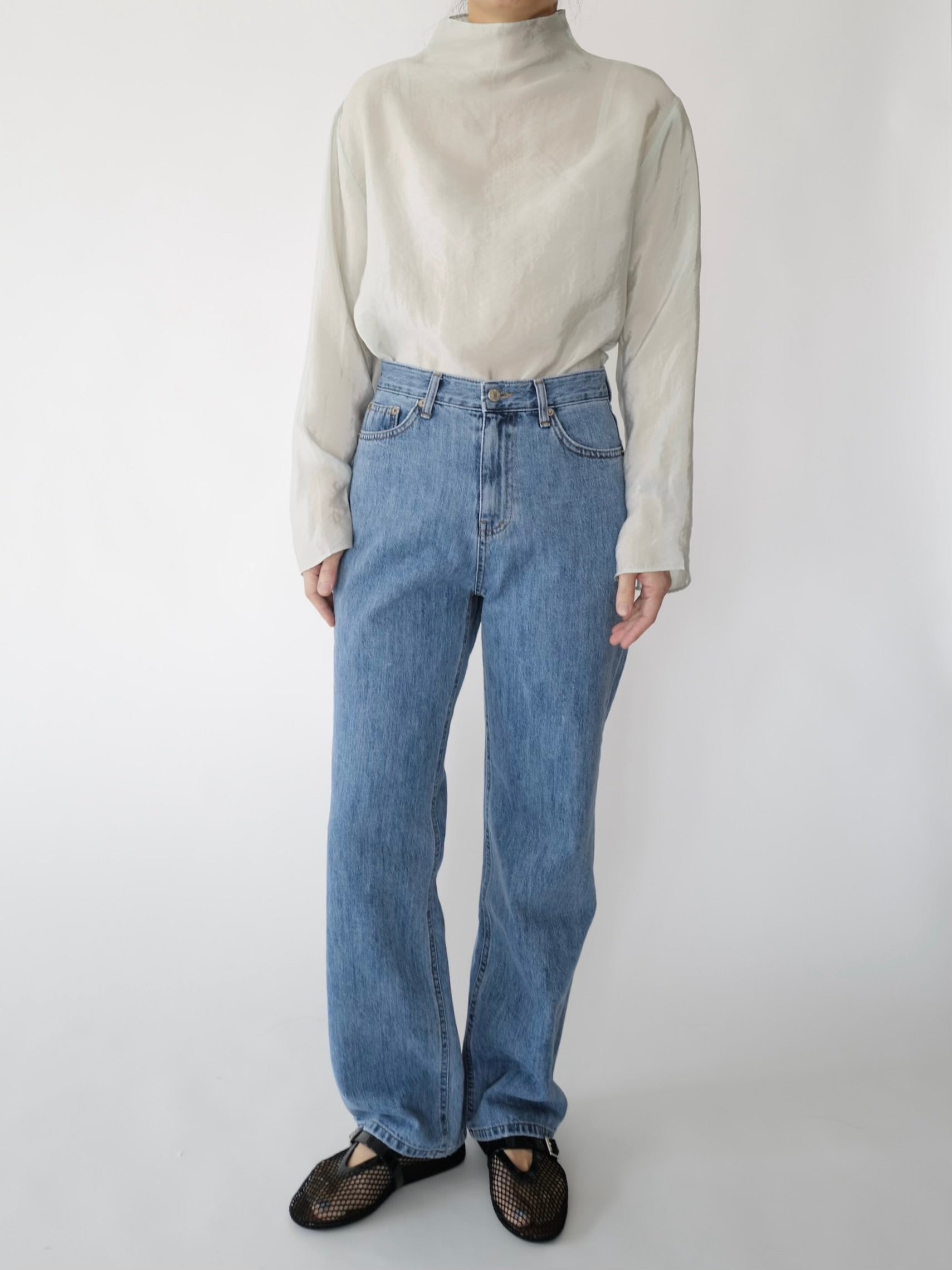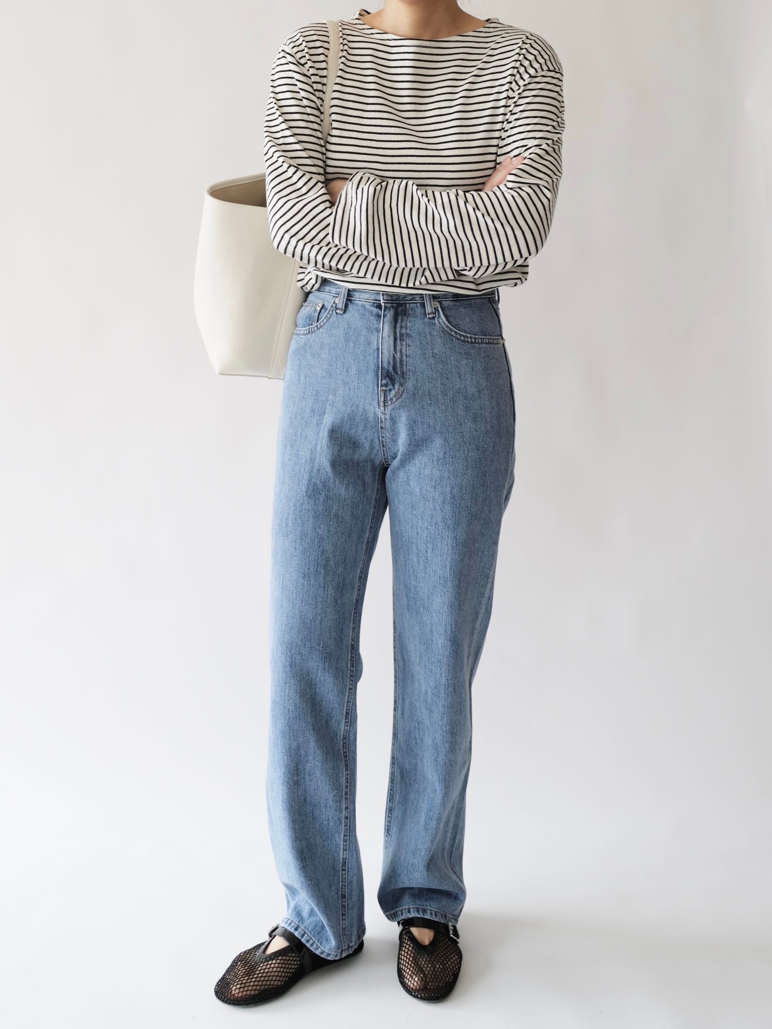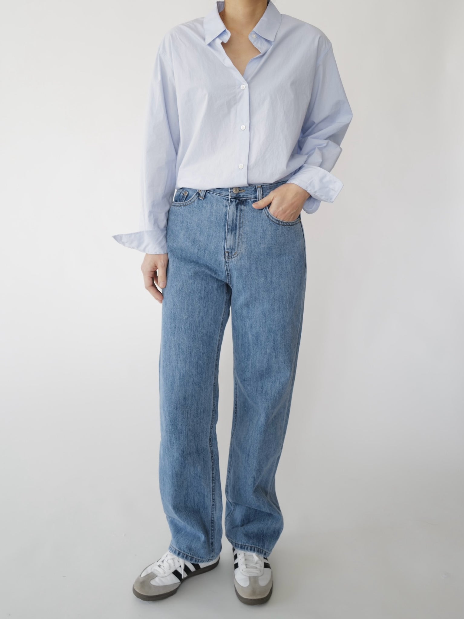 - Medium washed straight denim