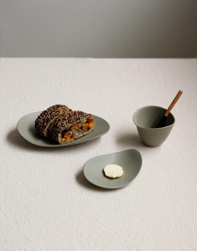 The Hin collection expresses nature's endlessly flowing lines as tableware. Designed differently for each product, the soft, atypical curves overlap to create a beautiful shape. The pieces in the collection go well with a variety of foods, as they were made with practicality in mind in consideration of the food cultures of the East and the West.