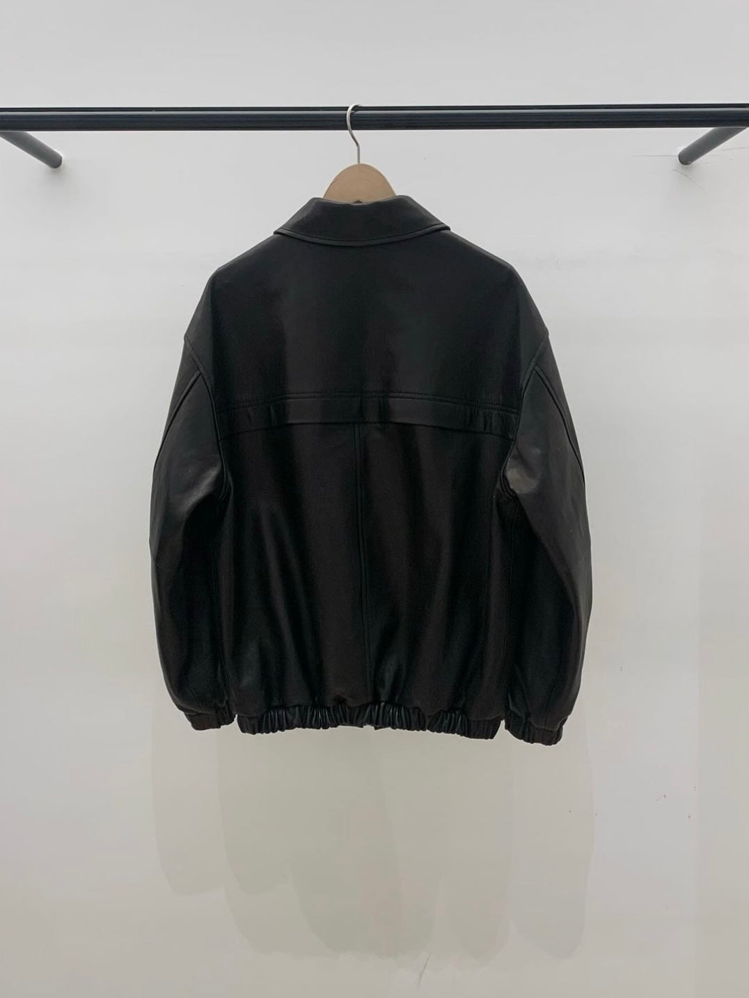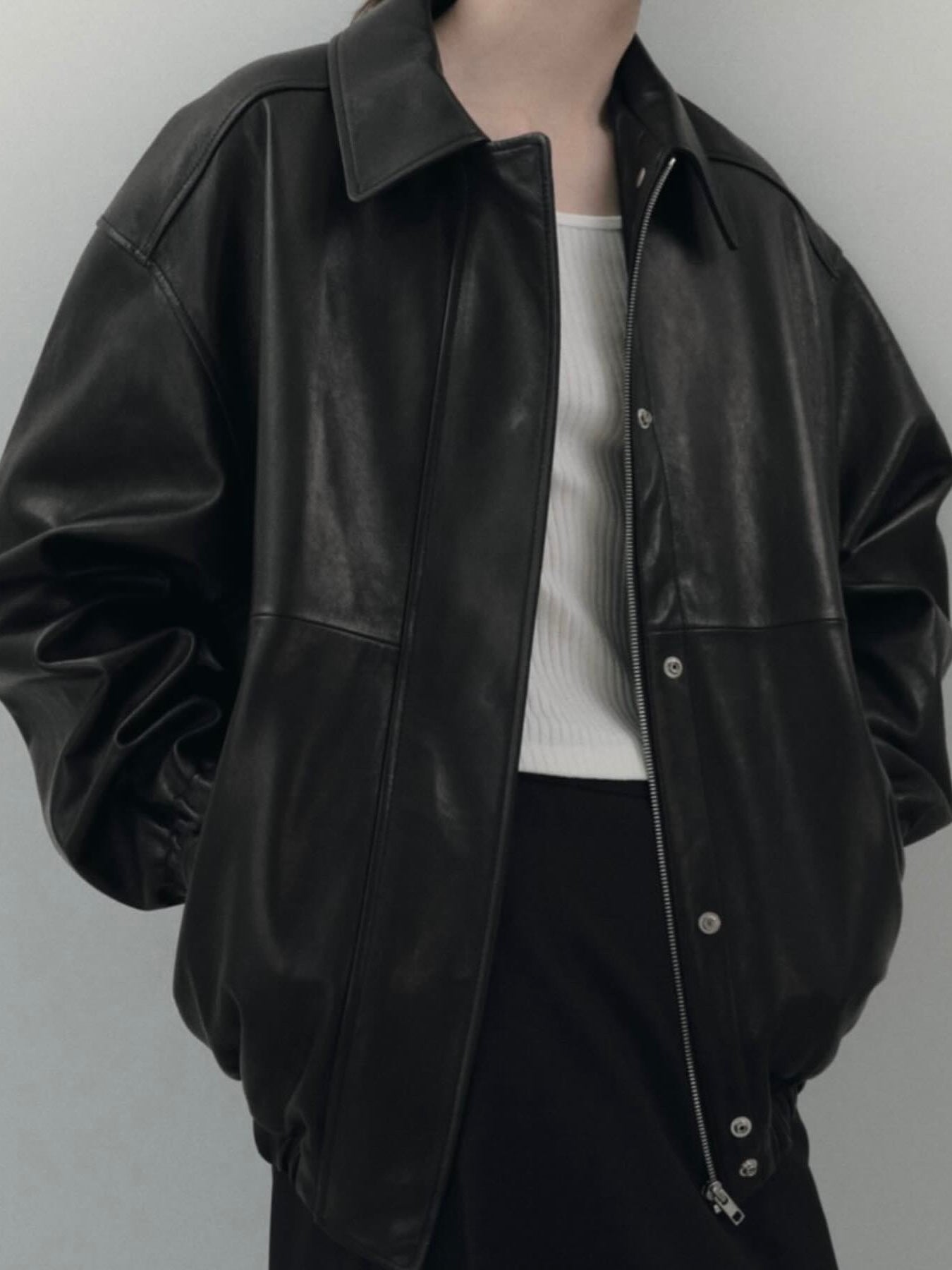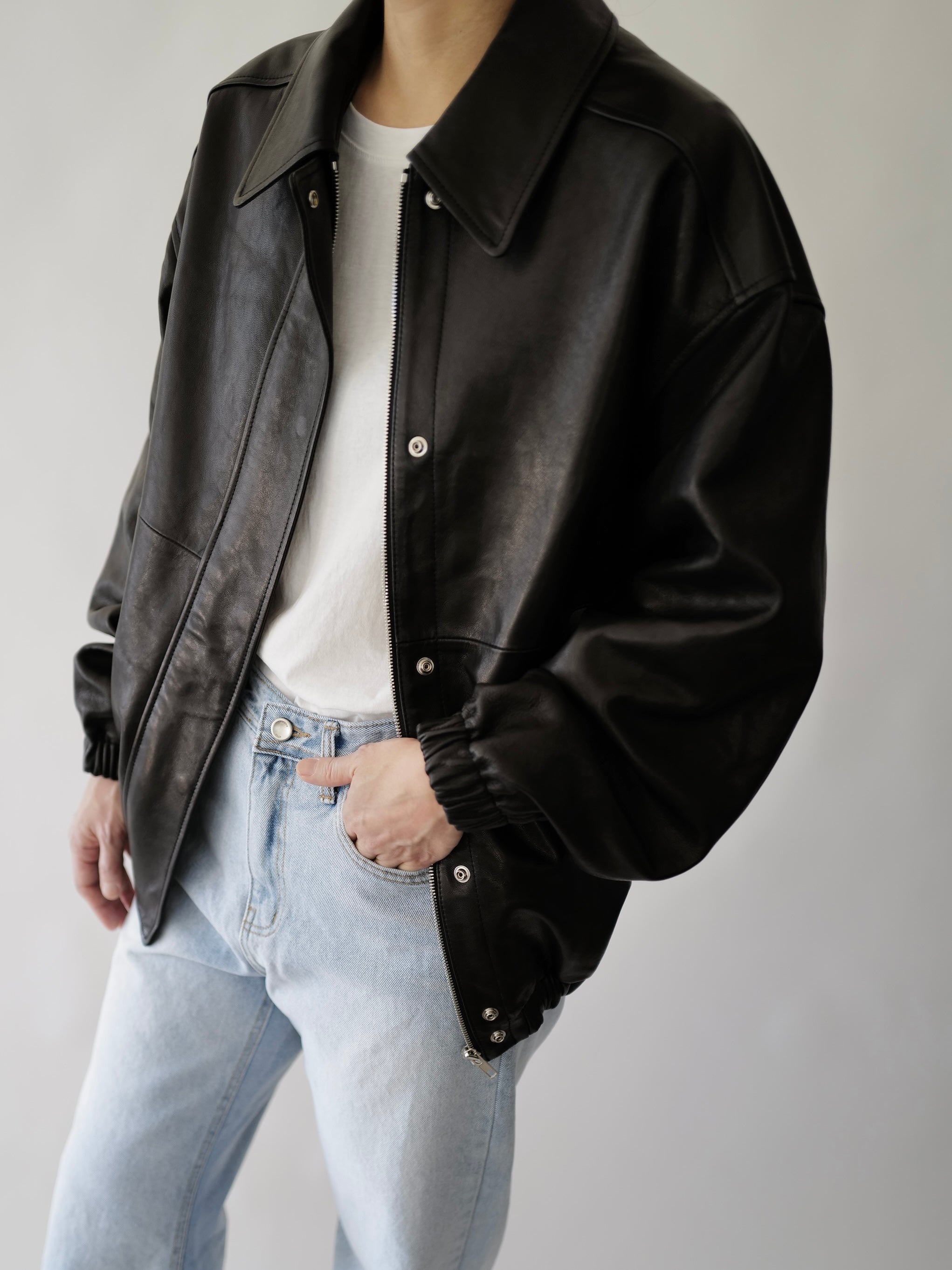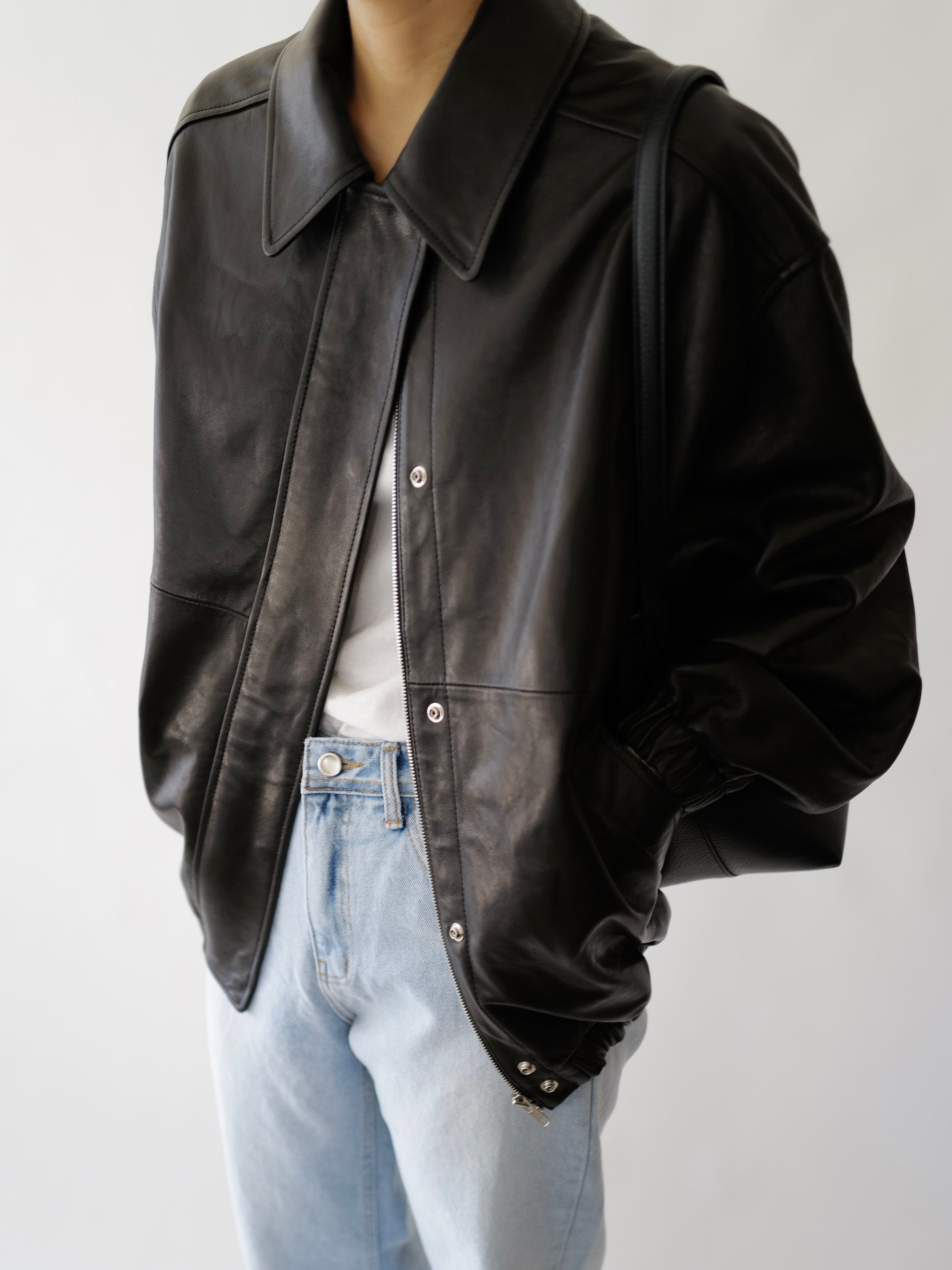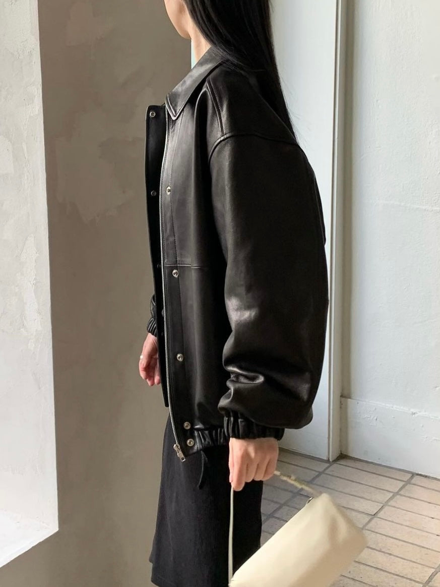 • Black leather bomber jacket in premium Italian lambskin