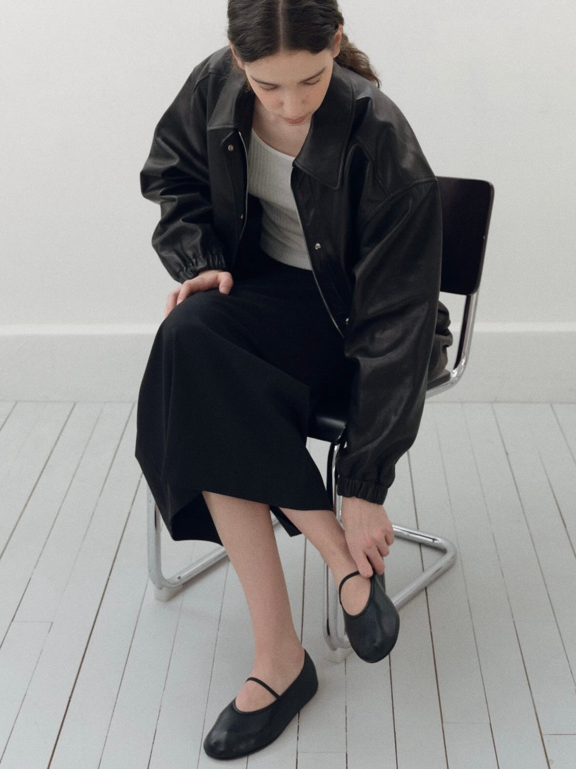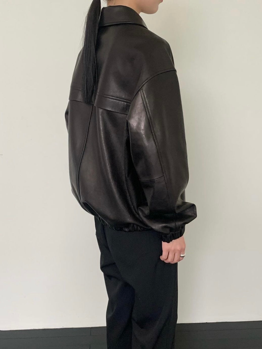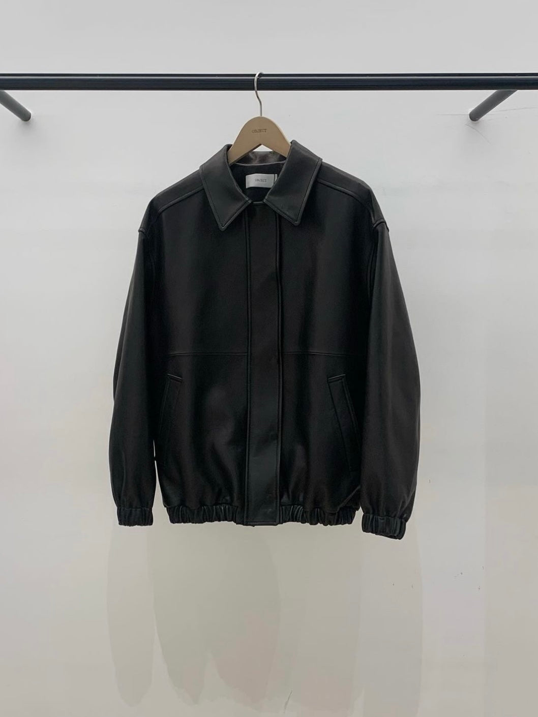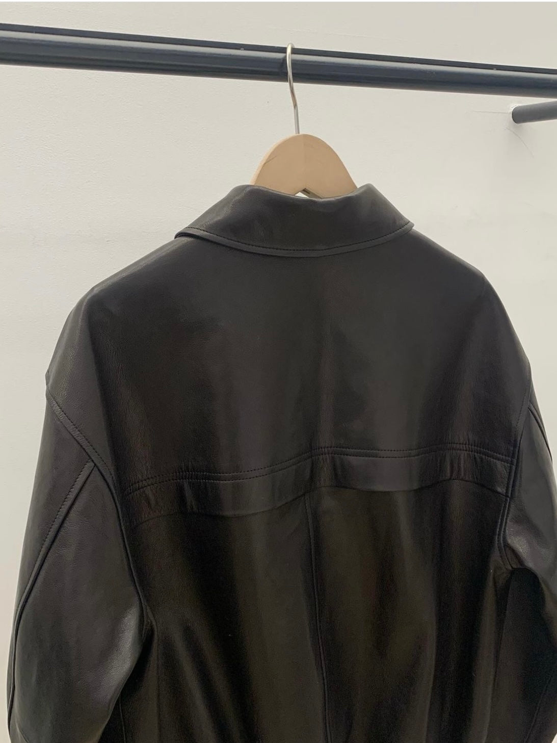 • Black leather bomber jacket in premium Italian lambskin