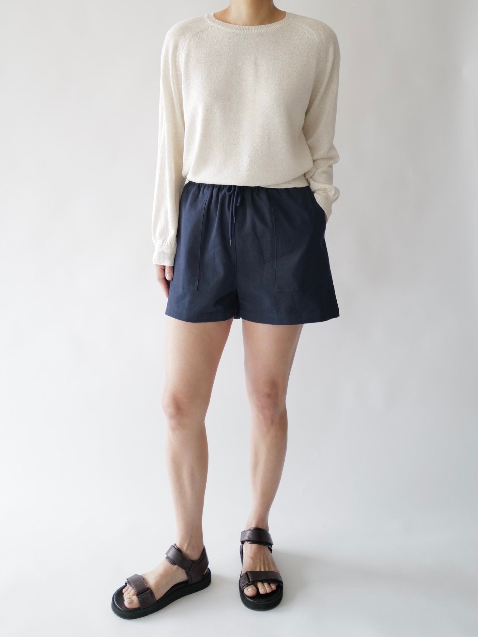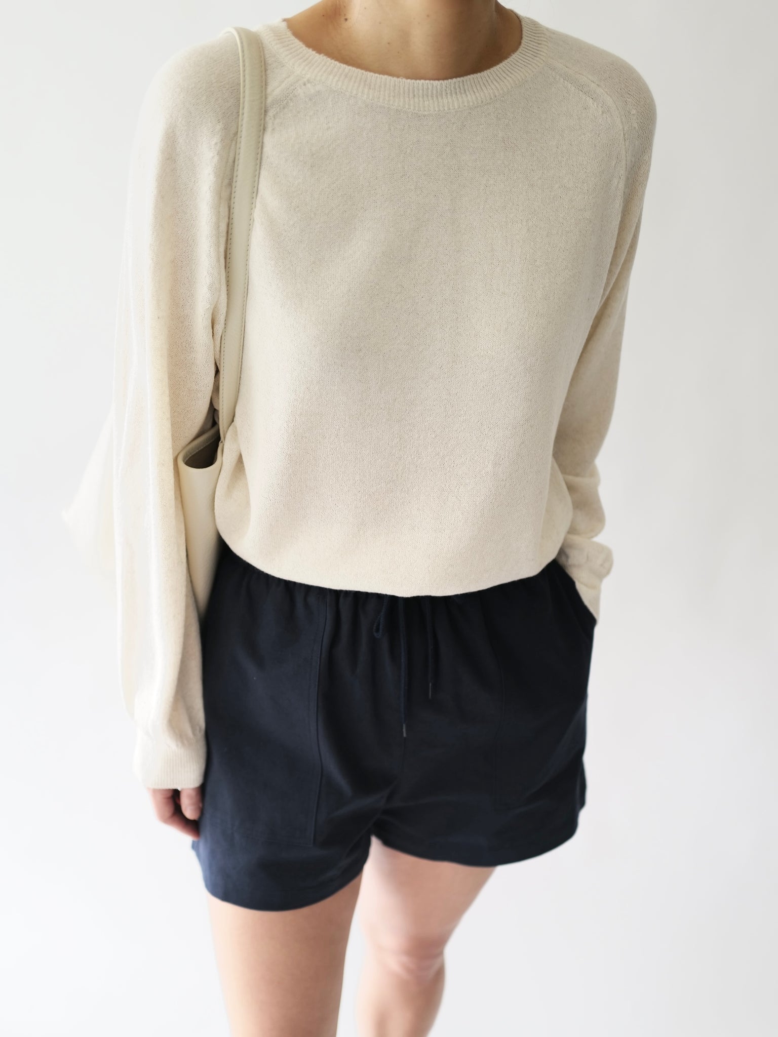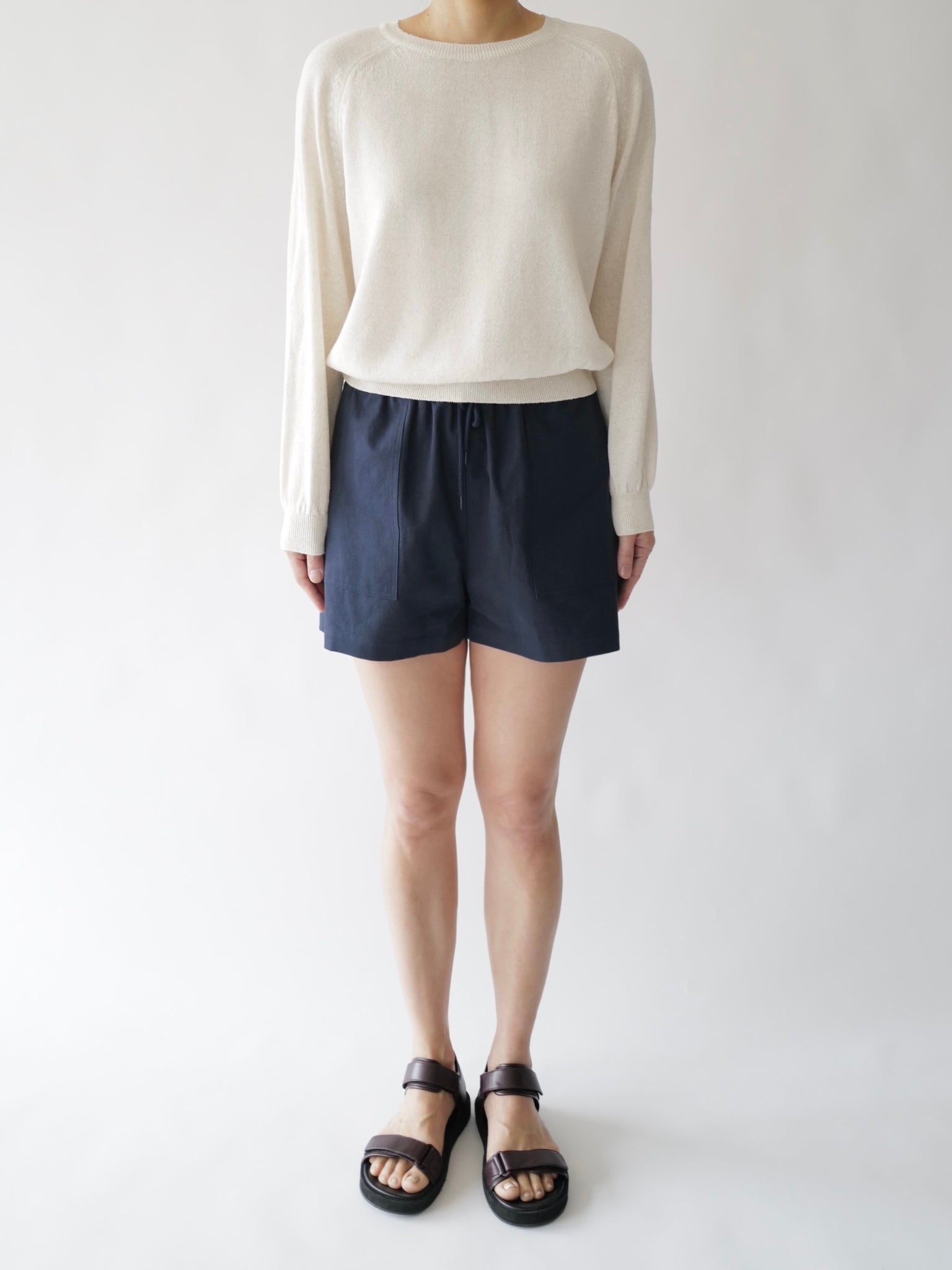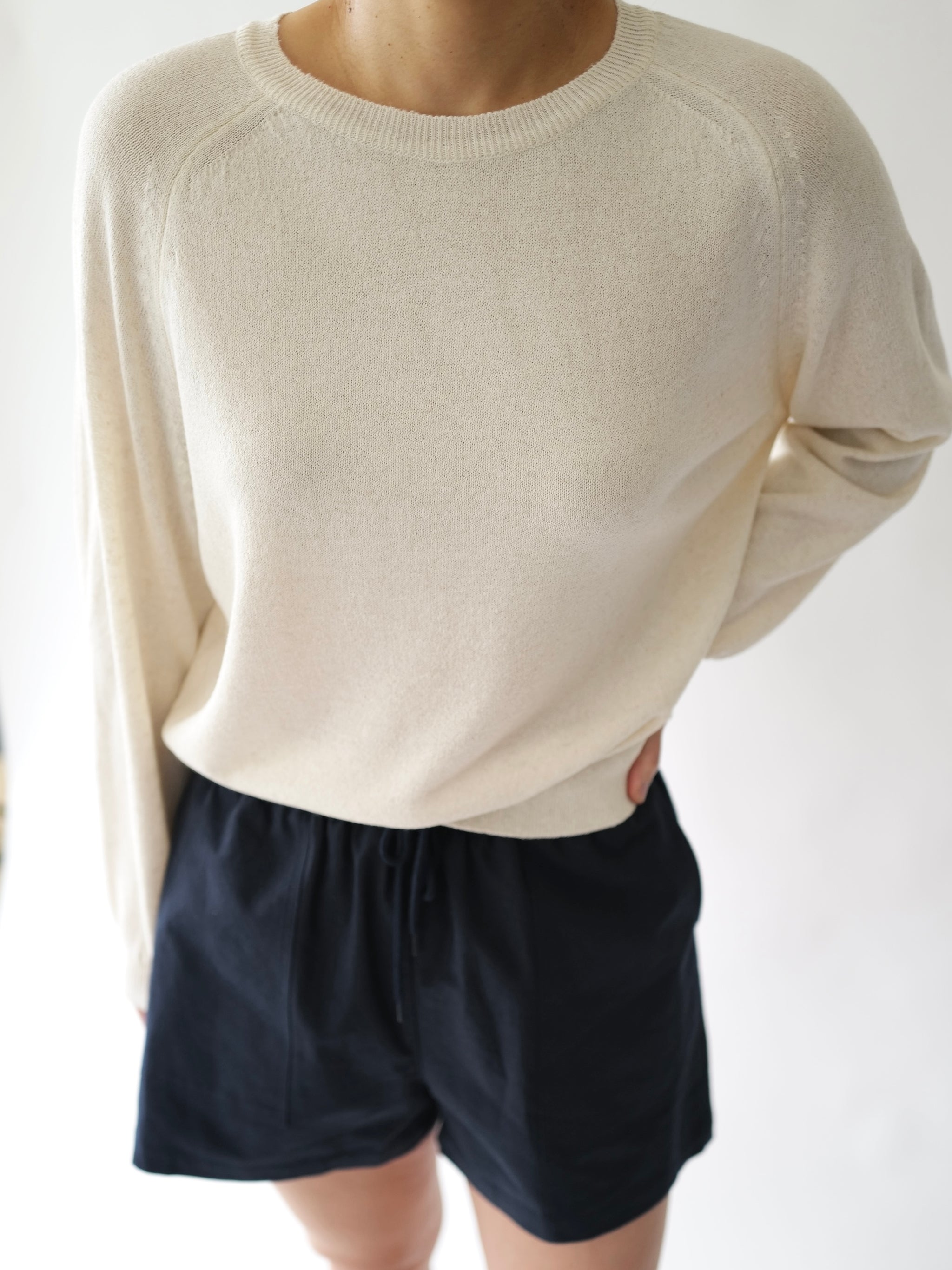 - Linen-blend sweater with raglan sleeves