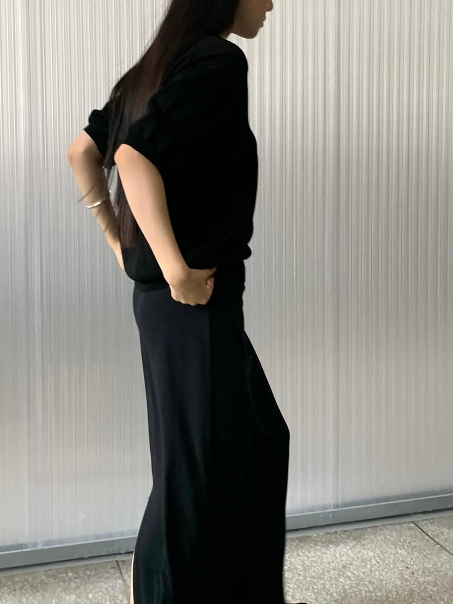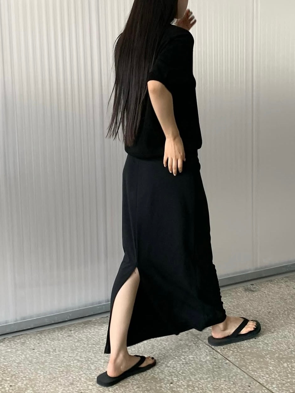 - Soft drape with dropped shoulders and ribbed hem detailing