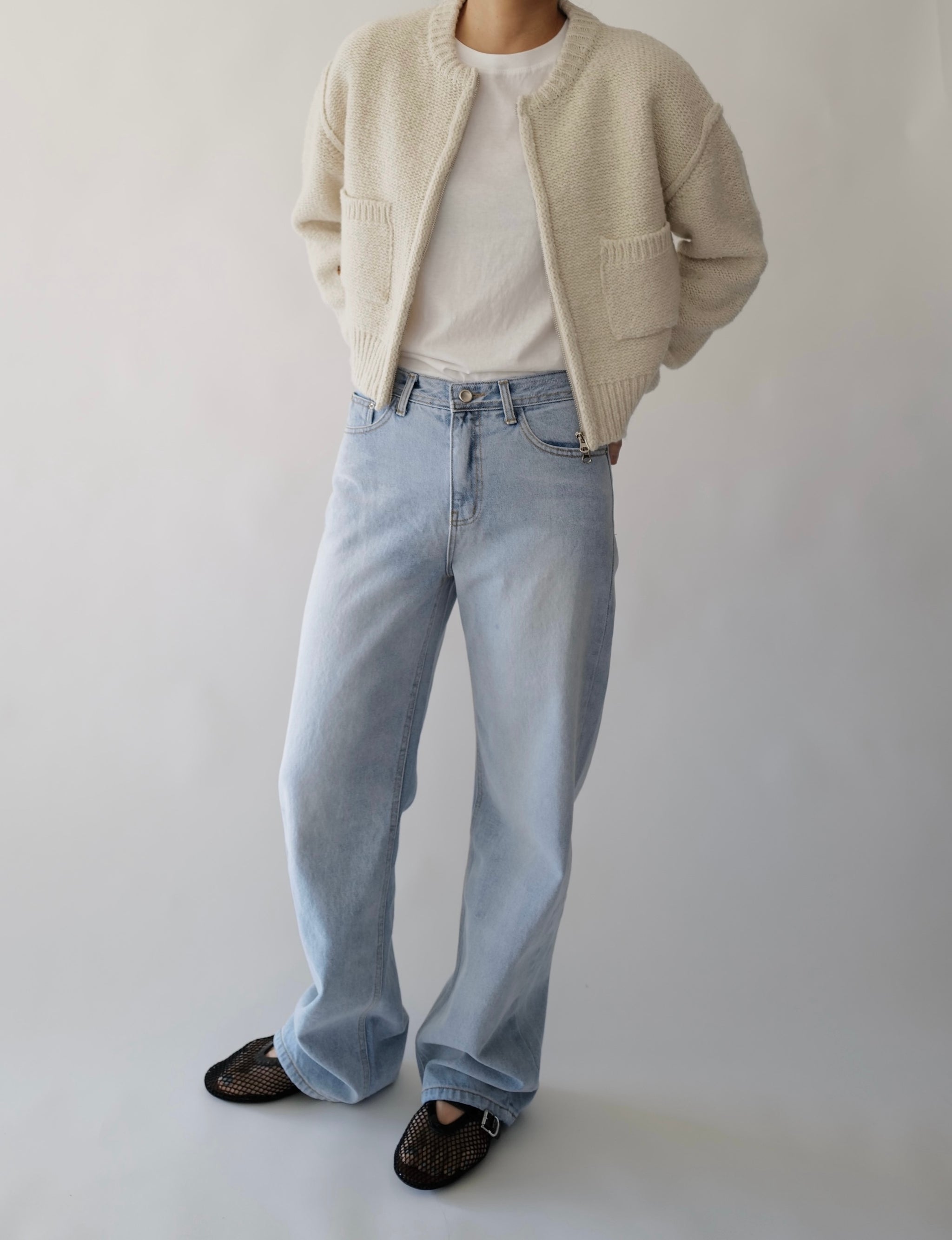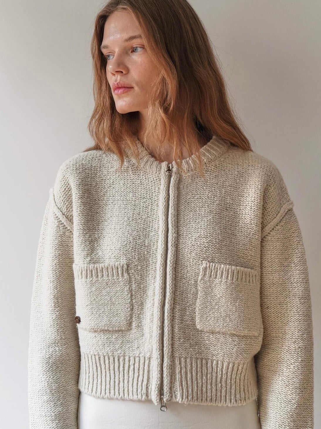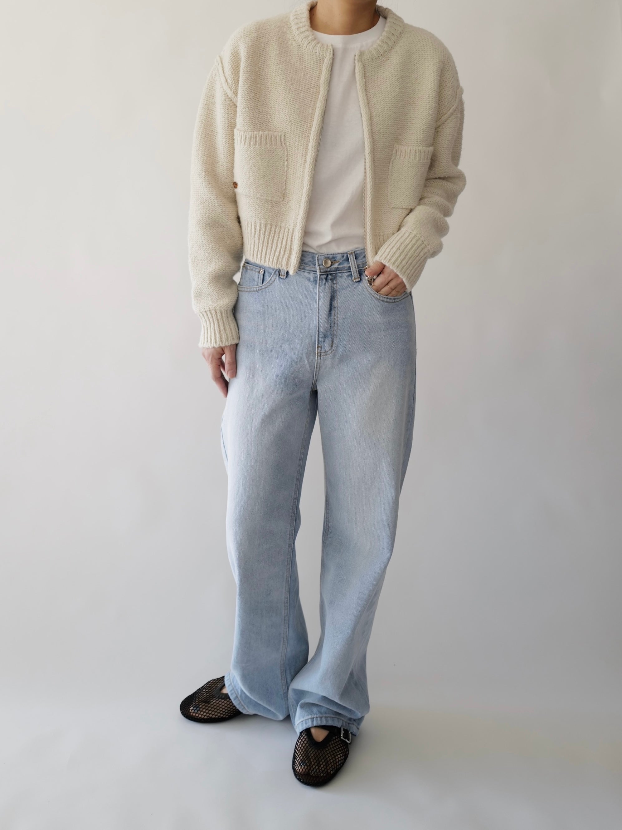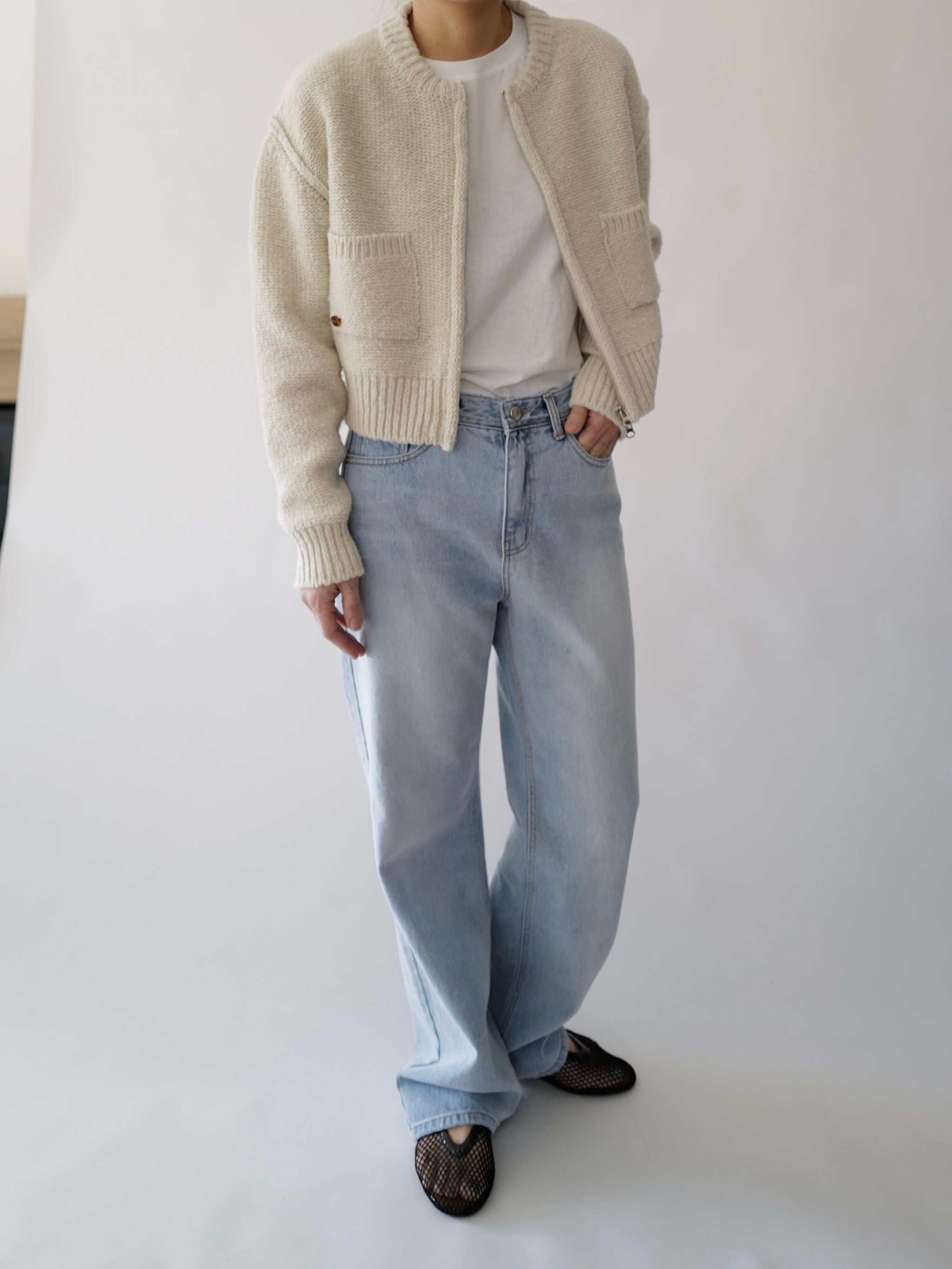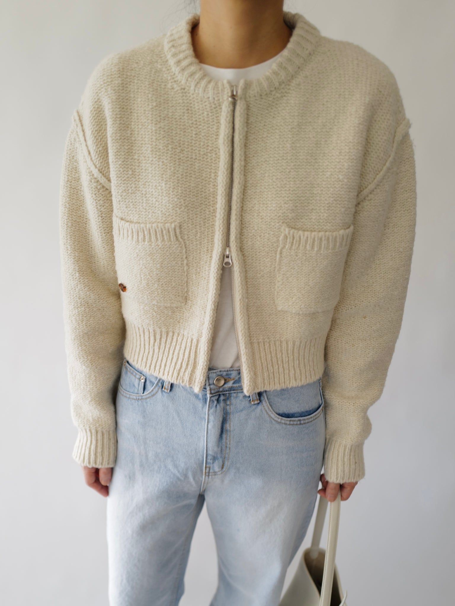 - Two-way zipper dual pocket cardigan