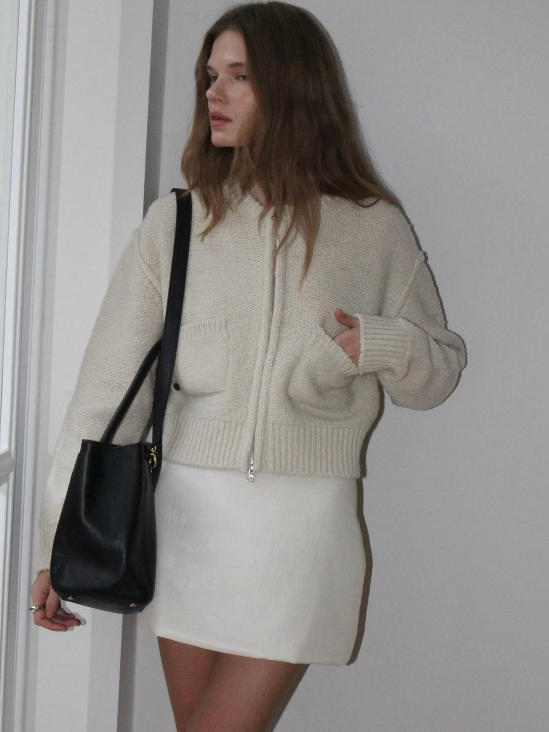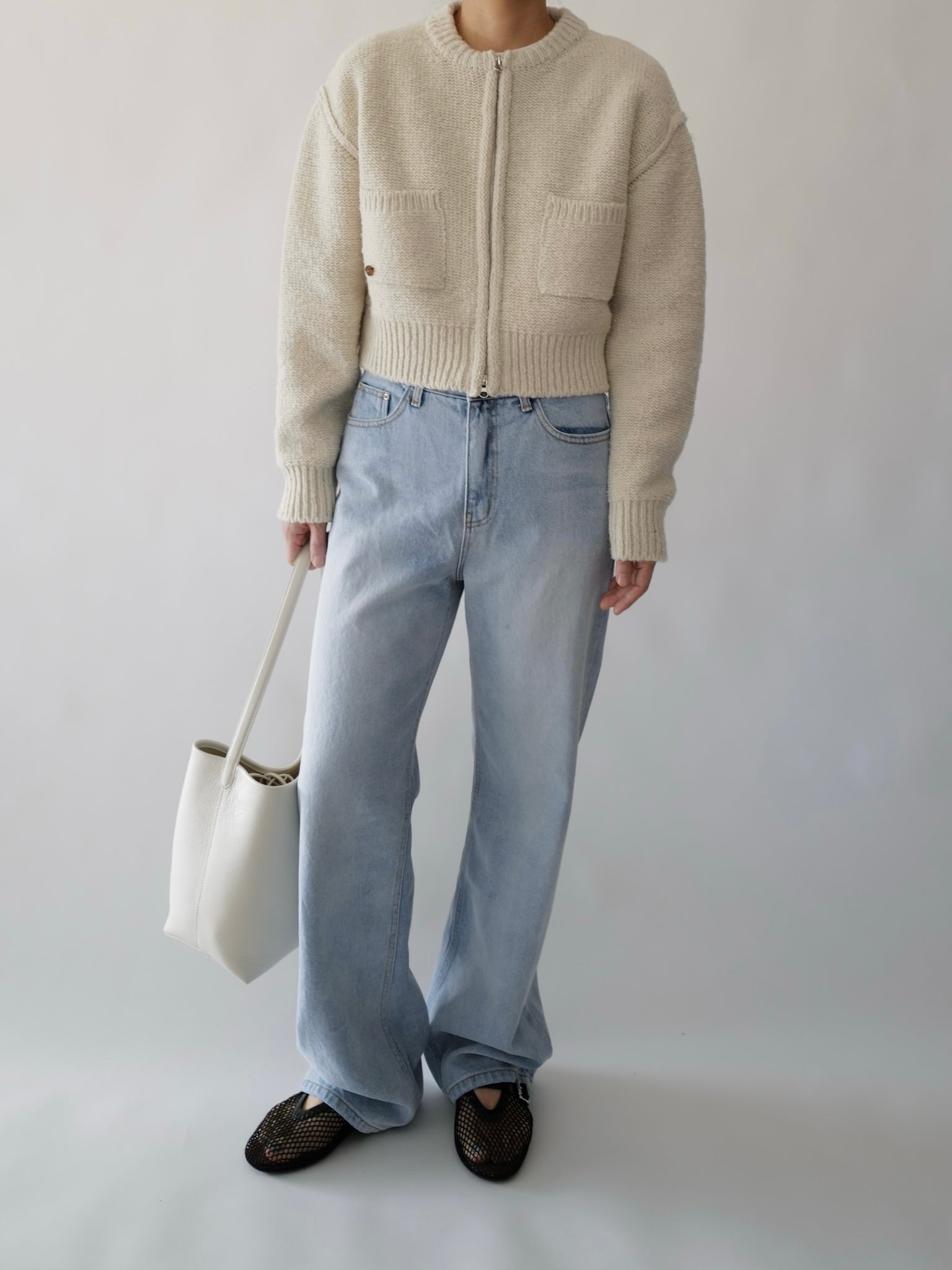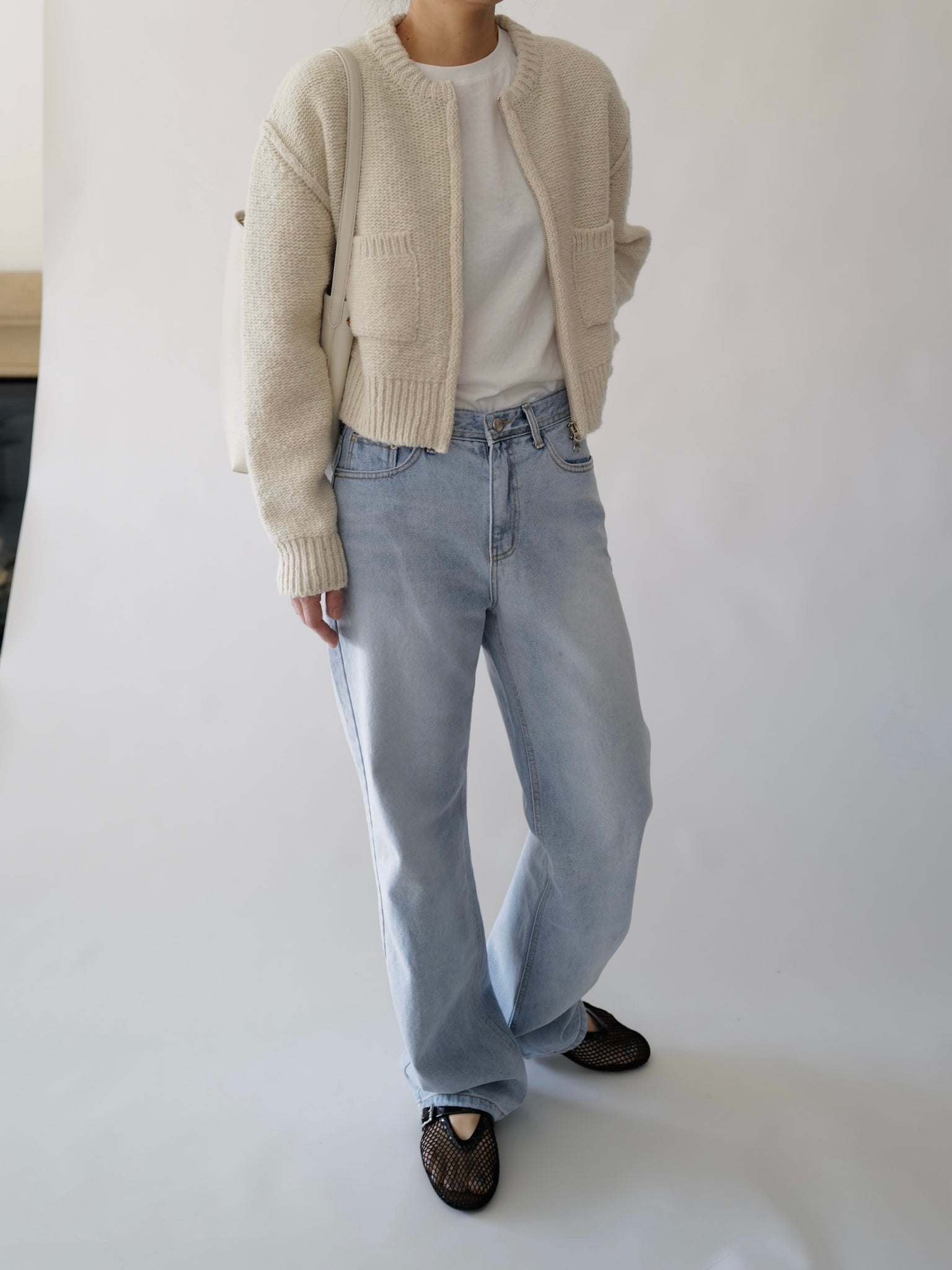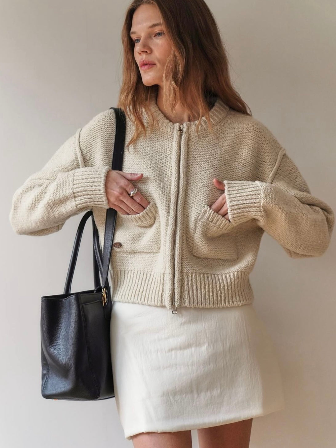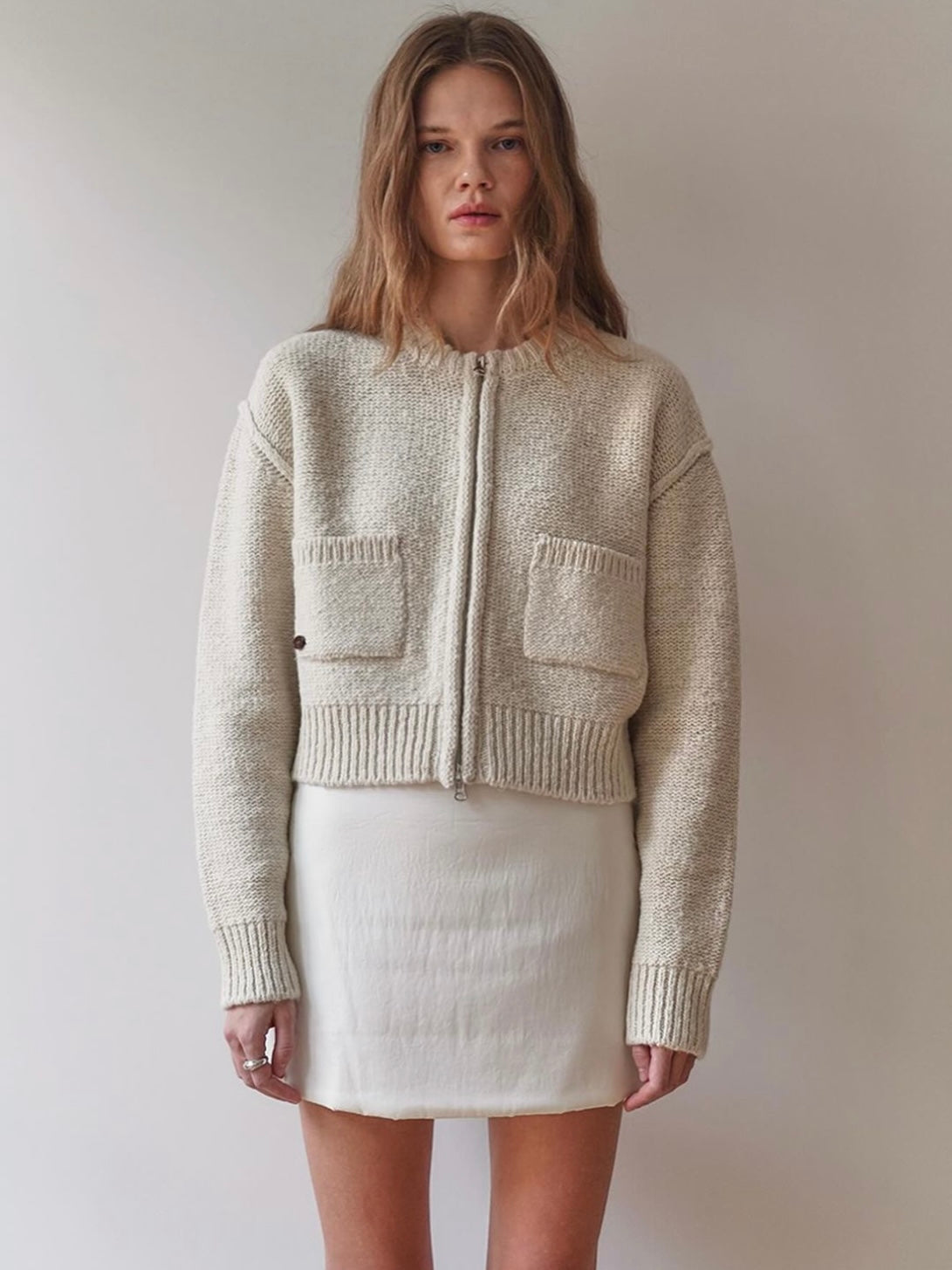 - Two-way zipper dual pocket cardigan