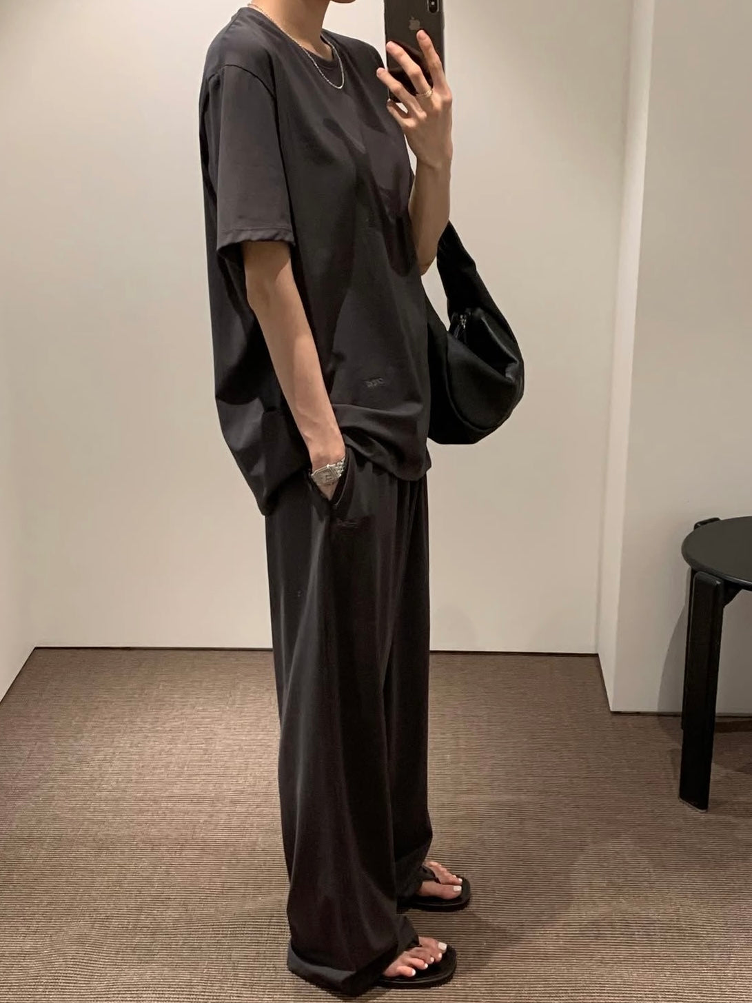 - Side pockets add practical functionality without compromising the clean look