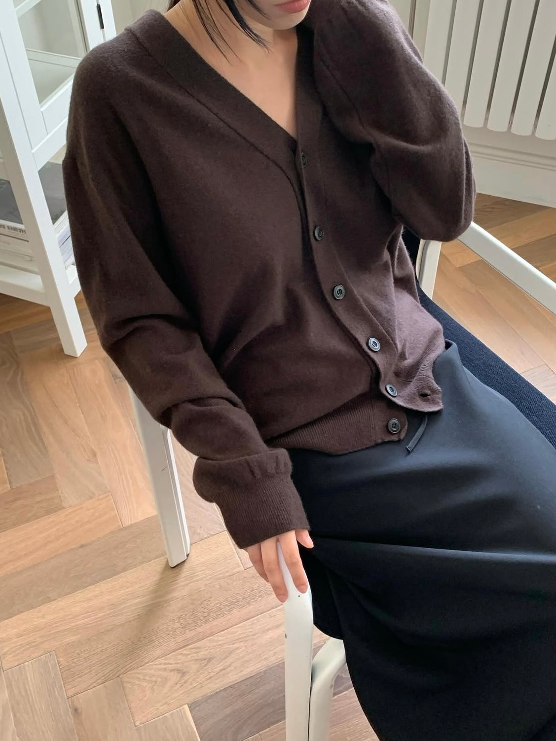 - A timeless V-neck cardigan with a versatile silhouette