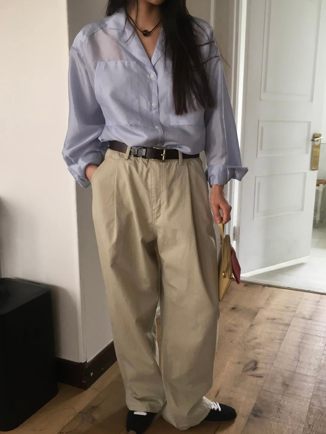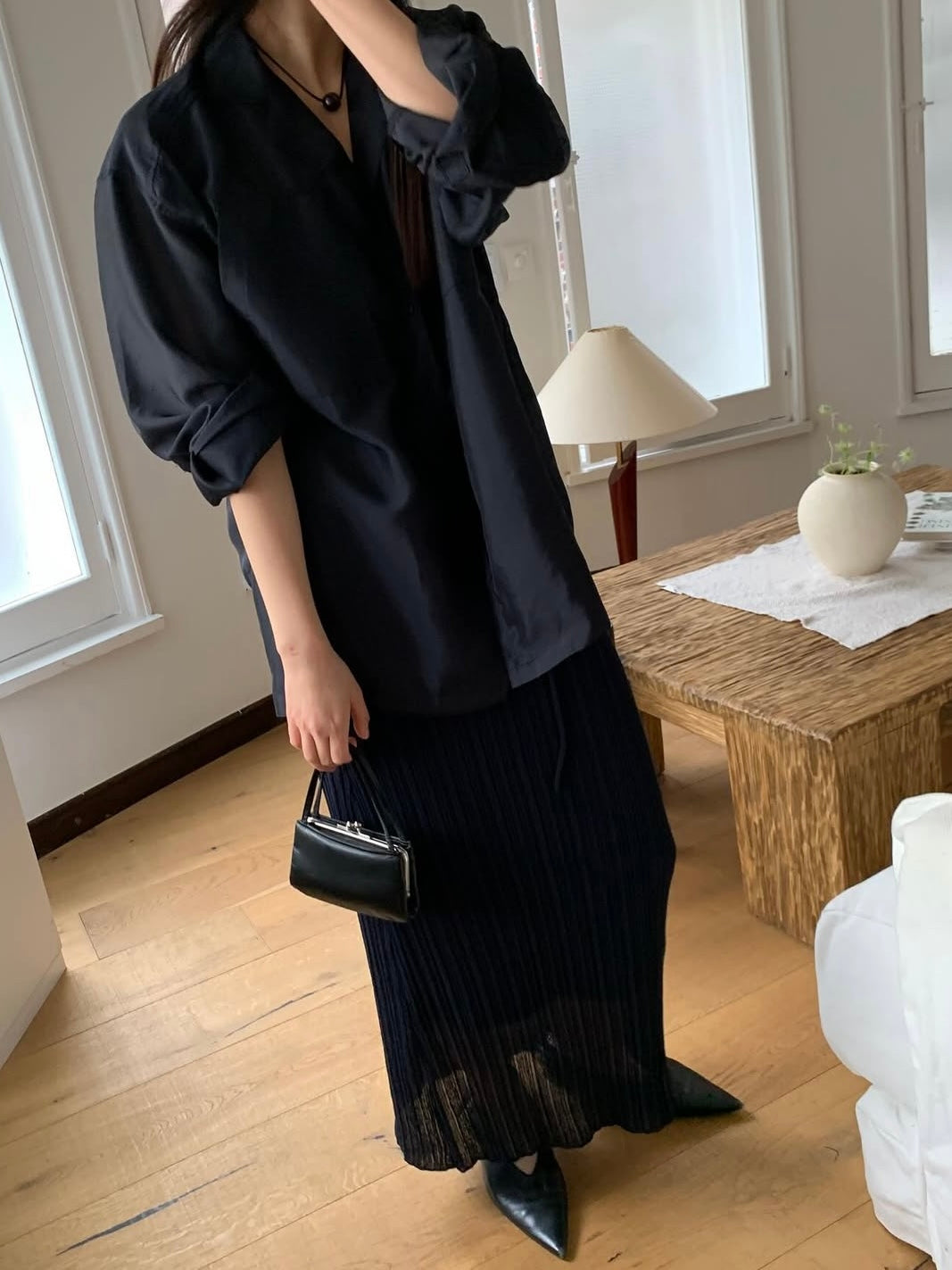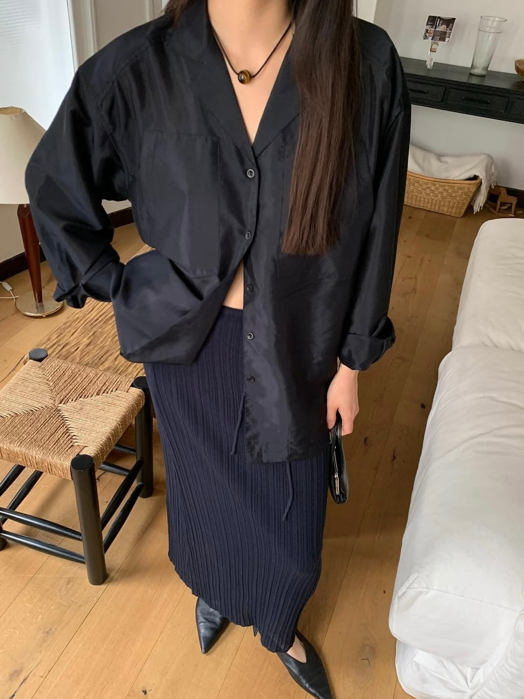 - Silky pocket shirt with soft sheen