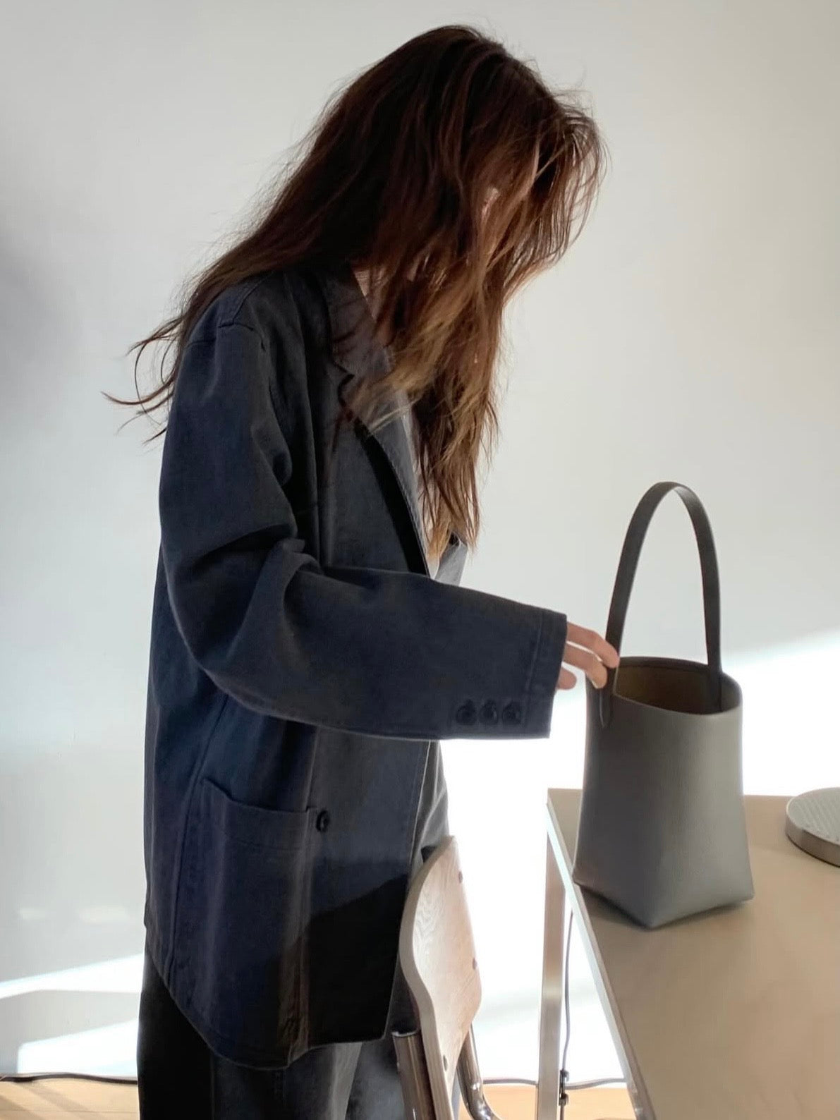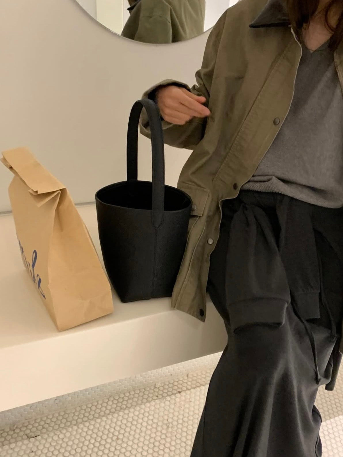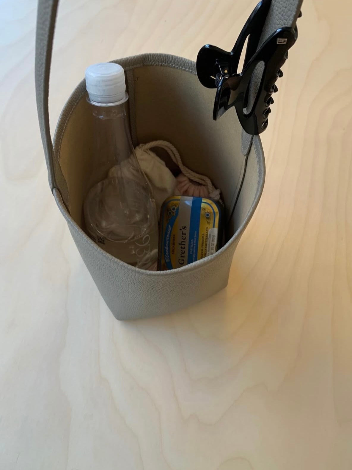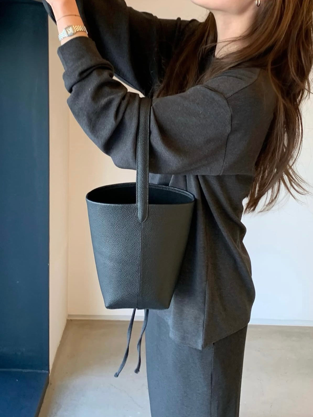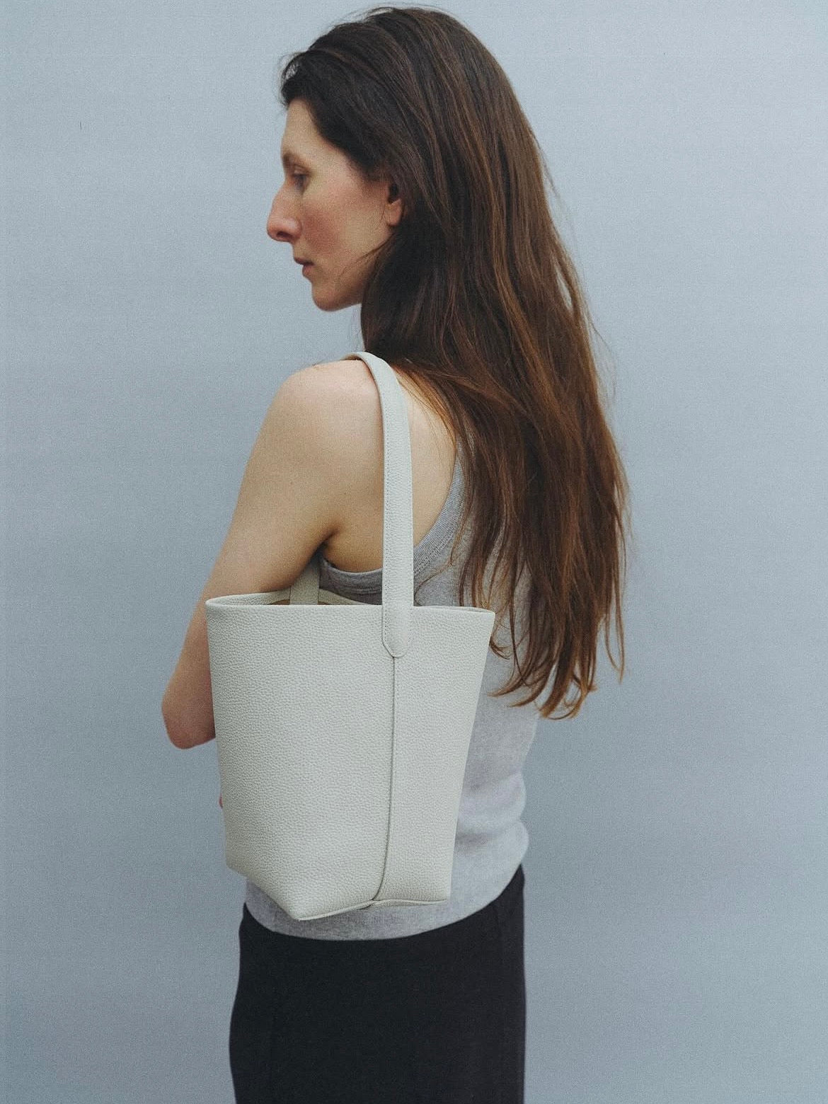 - Bucket bag crafted from cow leather
