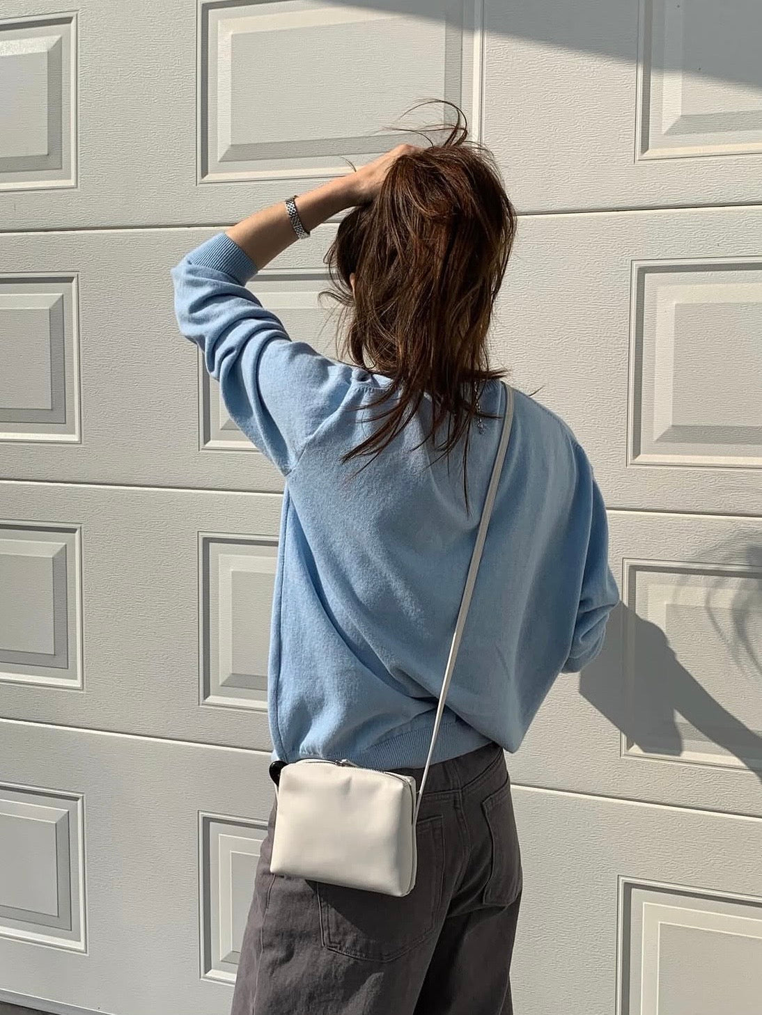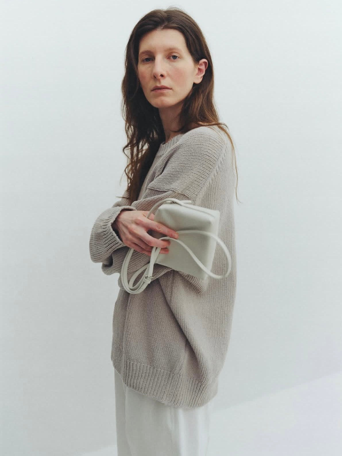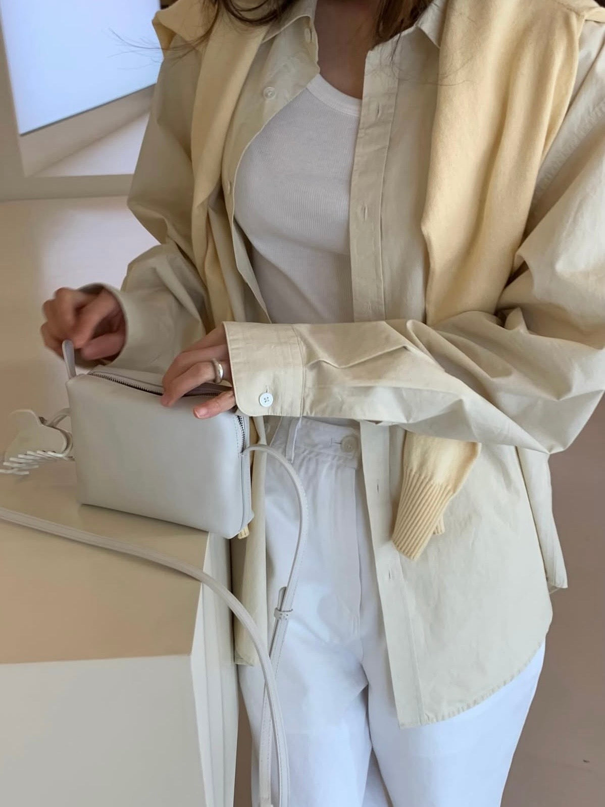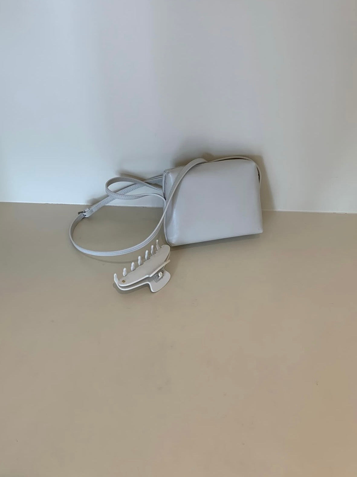 - Compact shoulder bag with a clean rectangular silhouette