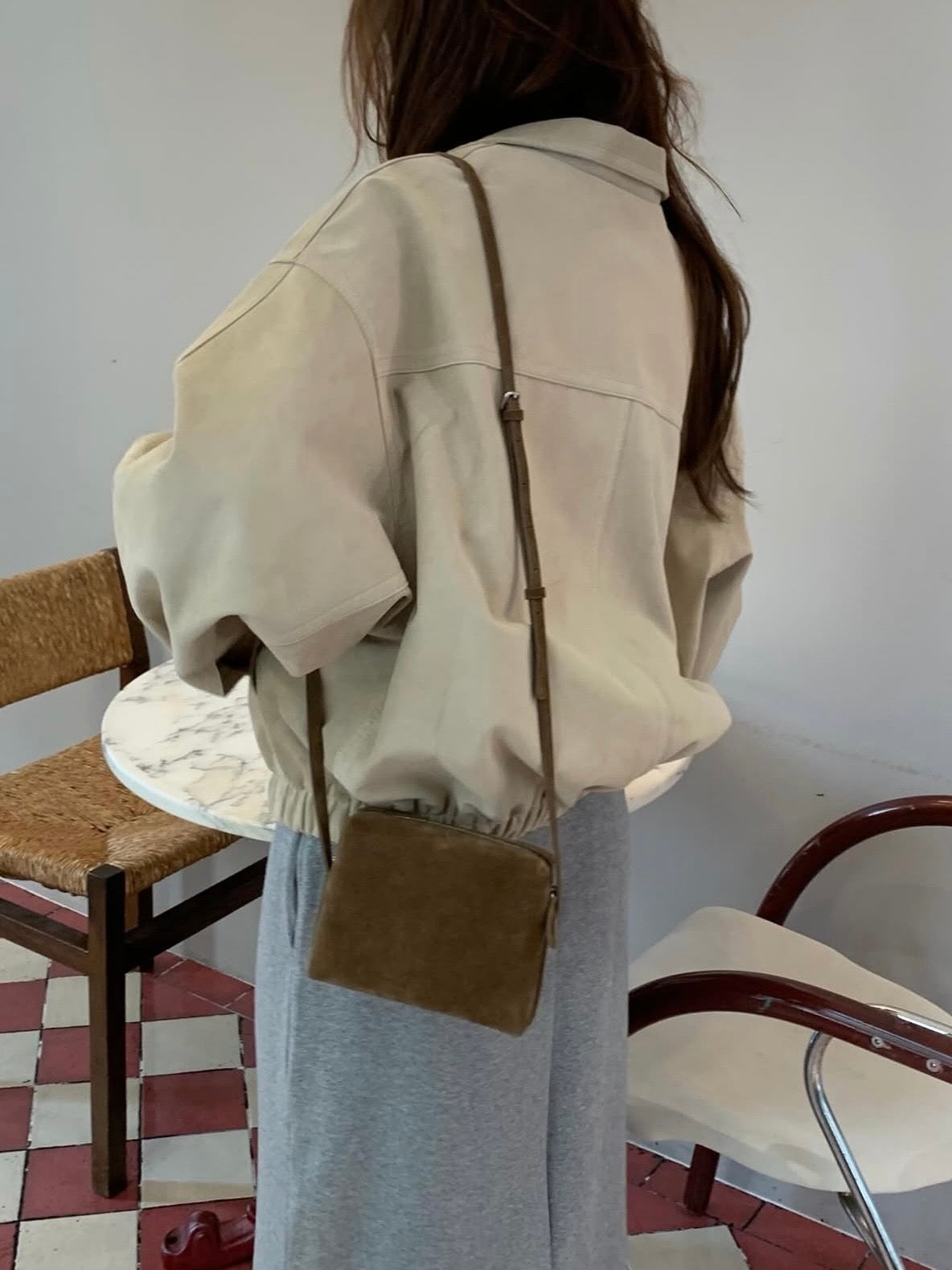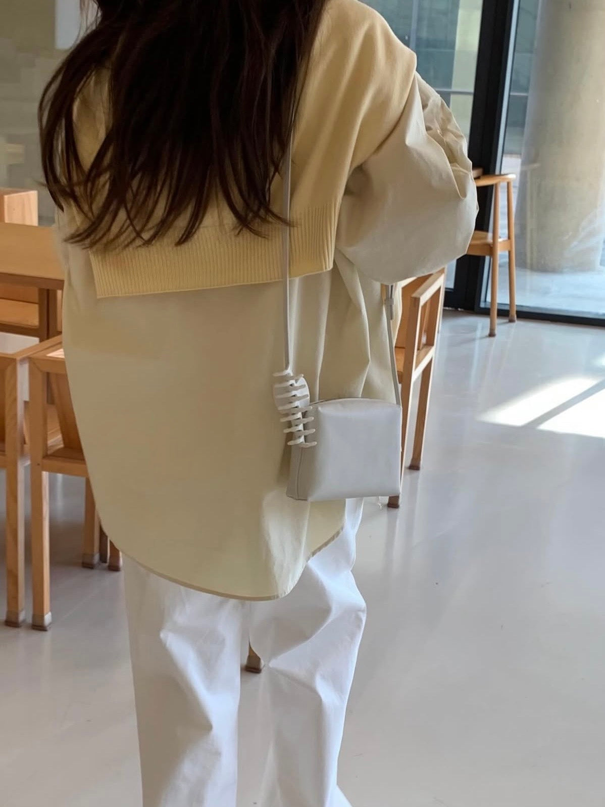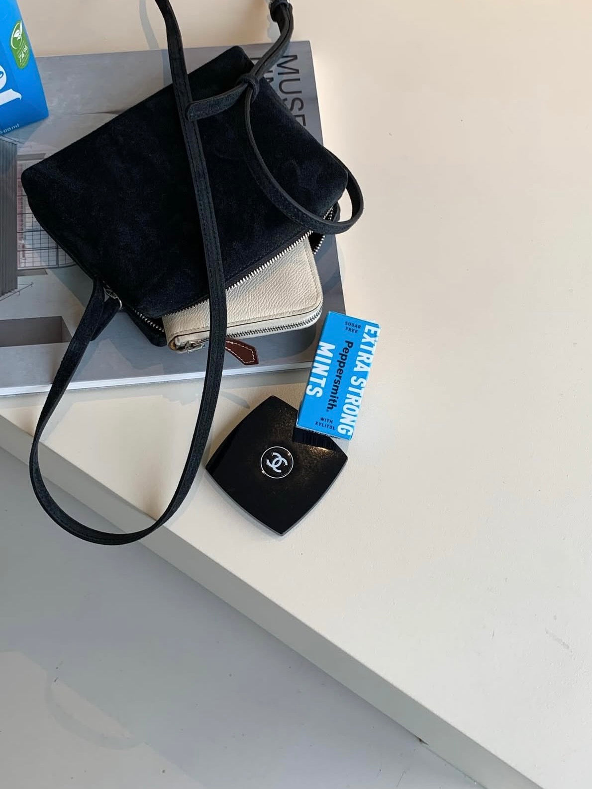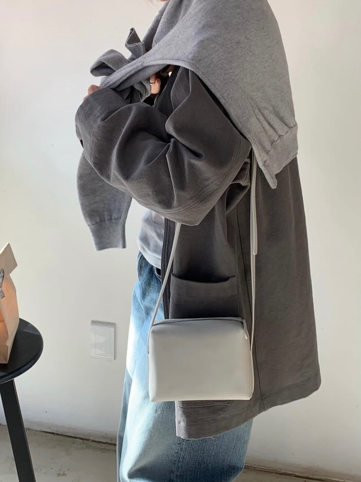 - Compact shoulder bag with a clean rectangular silhouette