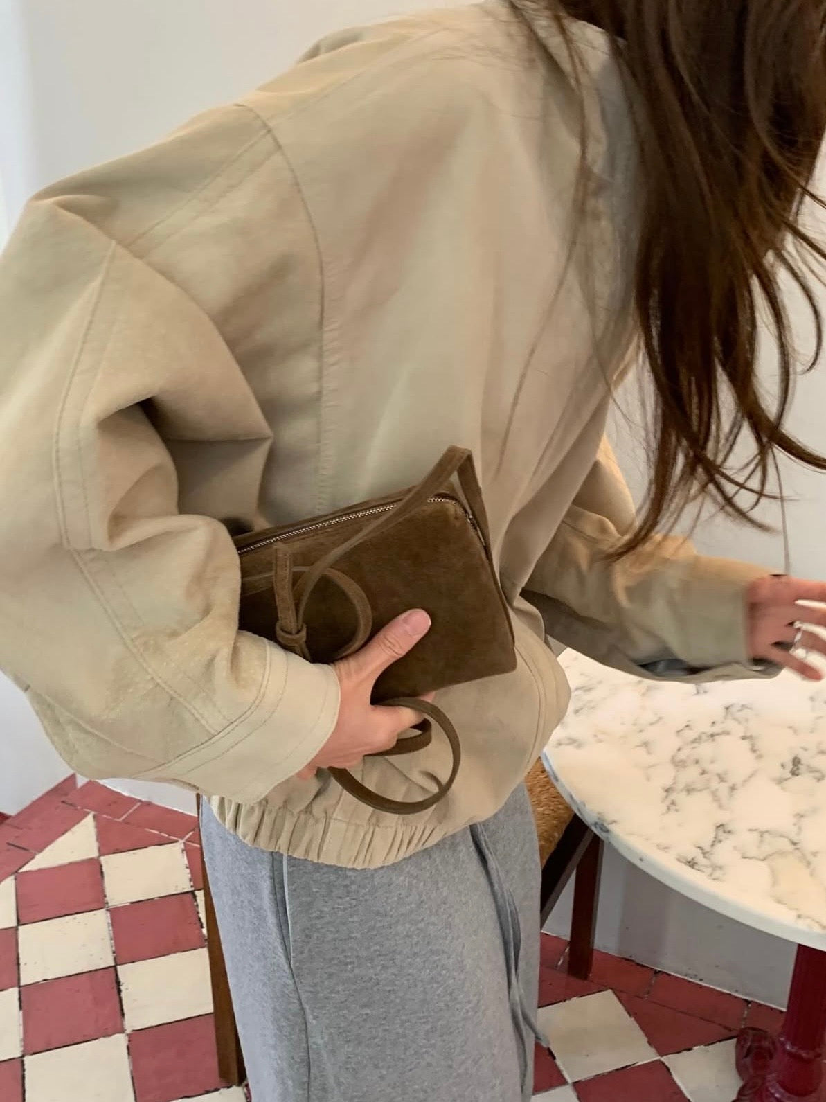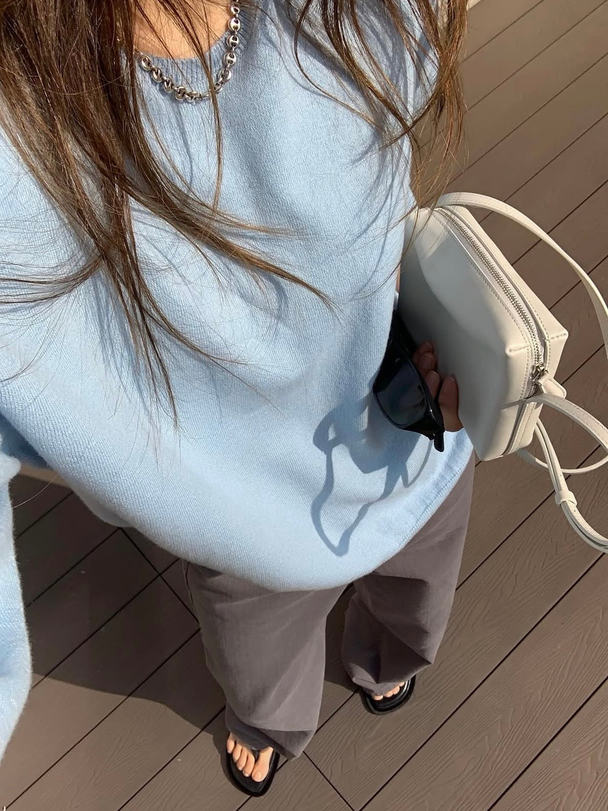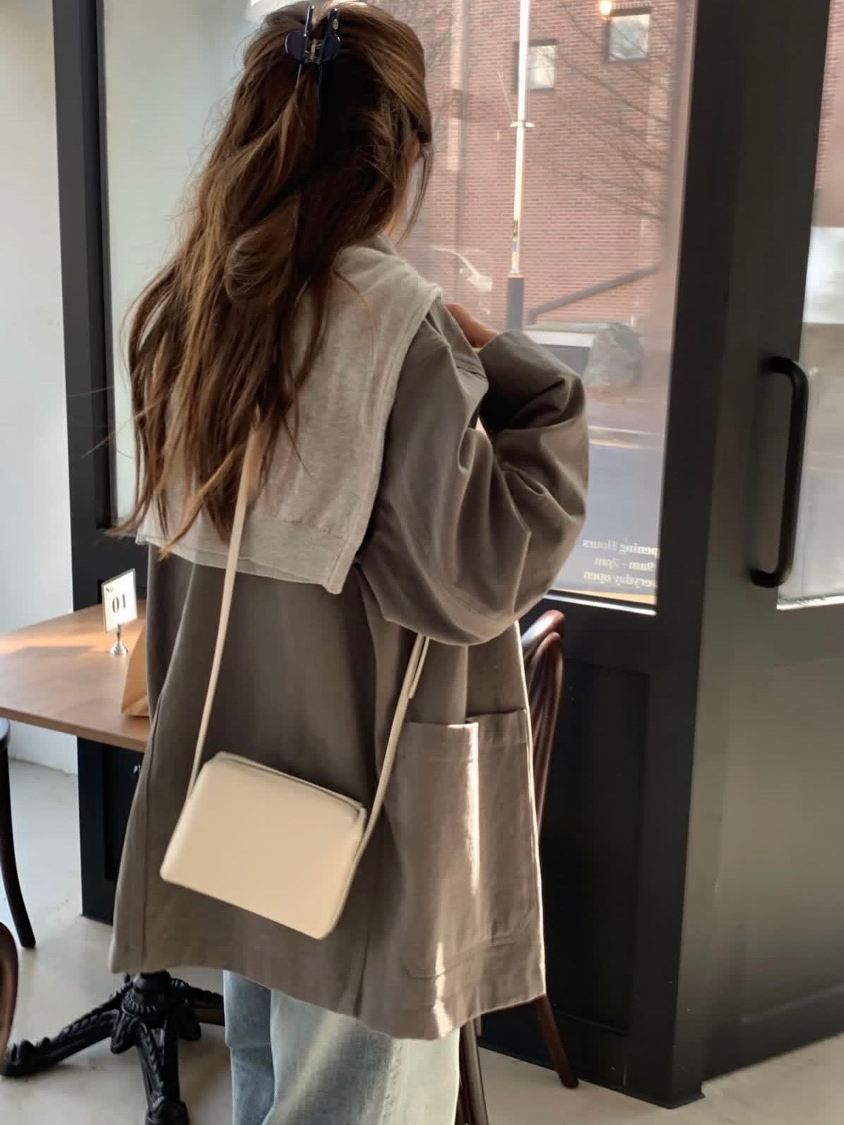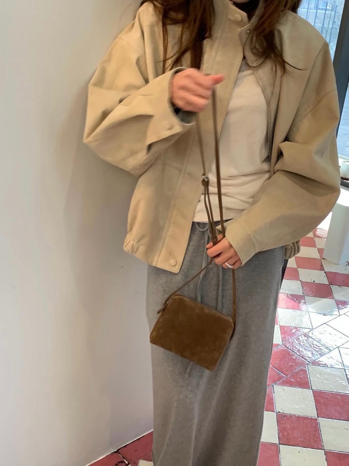 - Compact shoulder bag with a clean rectangular silhouette