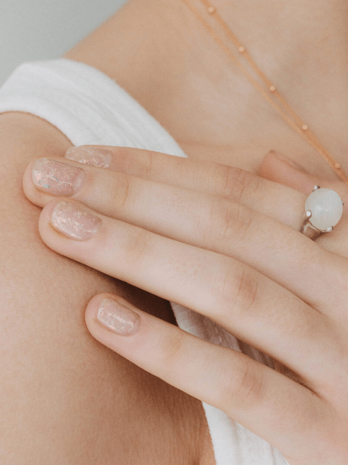 Umi has a milky wave of jam base, rich in subtle champagne gold pearls and subtle soda pearls. Even with just one Umi, the pieces of pearl will fall on your nails. If you apply it on top of your bare nails or base coat, the natural color of your nails will show off the luxuriousness of the champagne gold pearl. It fills your fingernails with charming sparkles, like the sunset sea. If you apply white nails or milky nails as the base, lt's more mysterious because it shows the feeling of soda pearls. Umi changes from the nail to the other charm depending on the base